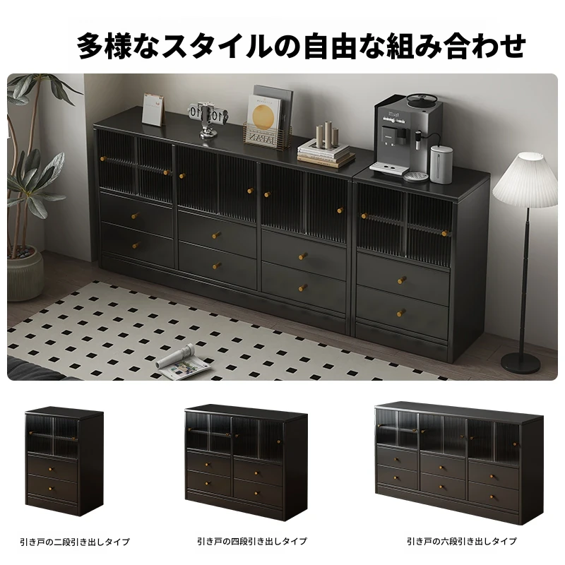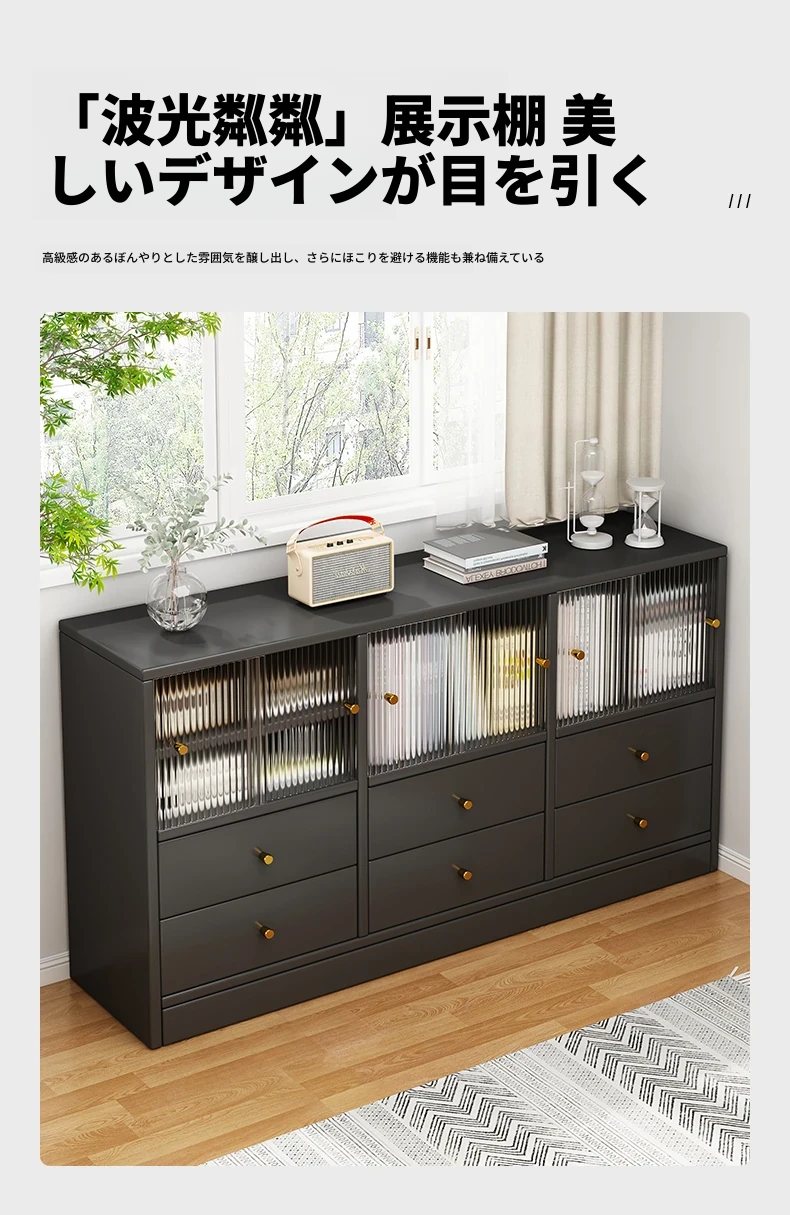 【6引き出し防塵キャビネットドア-15MM厚実木エコボード】隠れたブラック140*30*75CM
