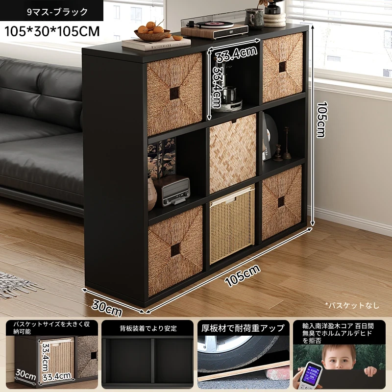 【9マス★格子キャビネット天然木エコボード★耐荷重!】ラグジュアリーブラック90*30*90cm