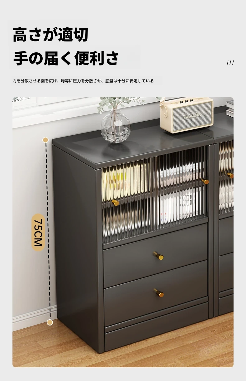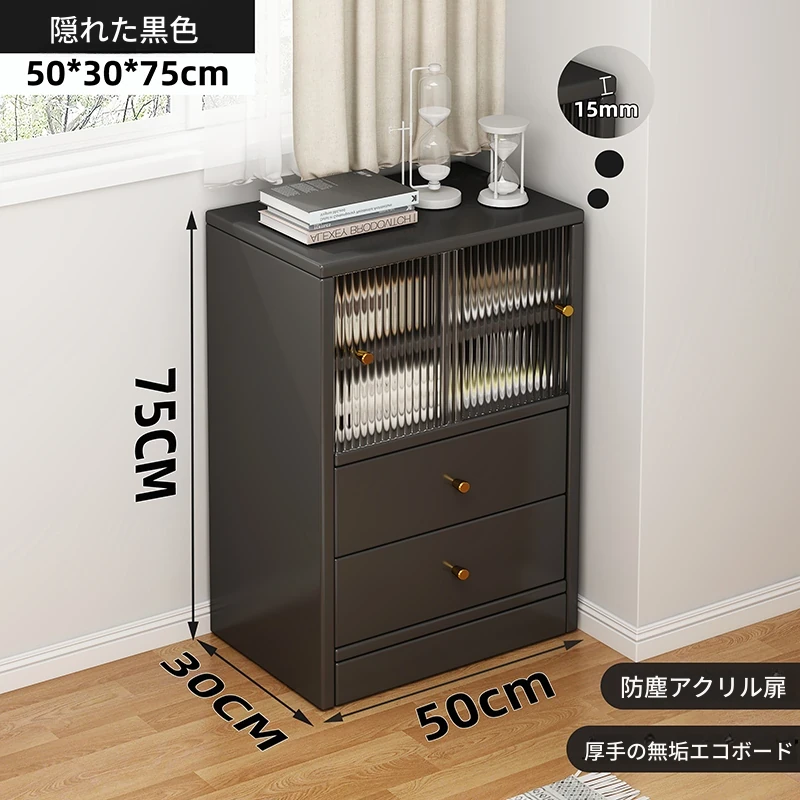 【2引き出し防塵キャビネットドア-15MM厚実木エコボード】隠れたブラック50*30*75CM