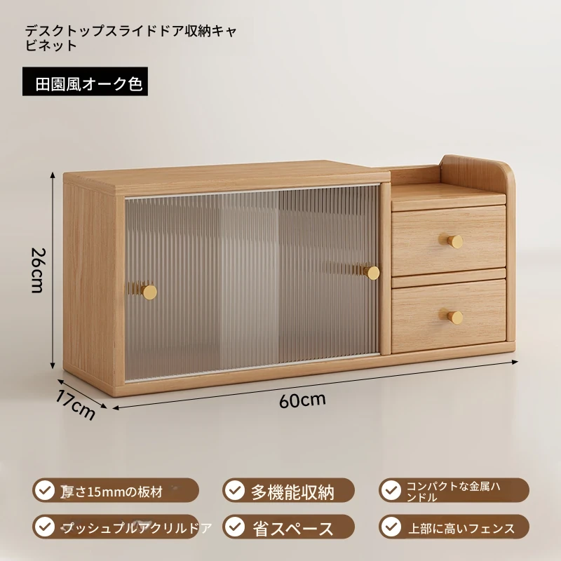 【高透過スライドドア二段扉⭐二層】原木色60*17*26cm-厚さ15mm