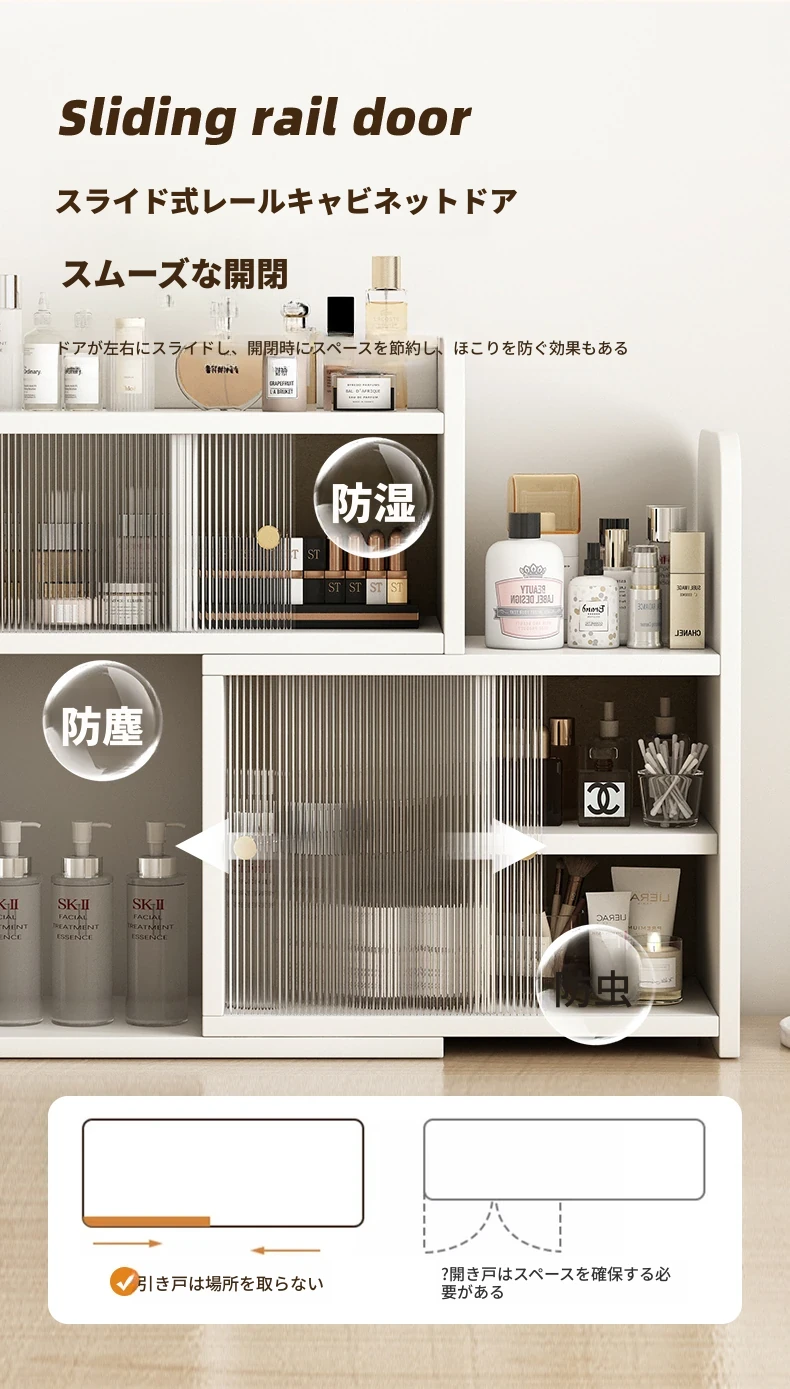 【人気商品三層☆ダブルスライドドア】雲白色48*24*54cm-厚さ15mm
