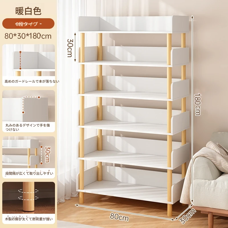 【厳選された厚質の板材⭐六段】暖白色80*30*180cm