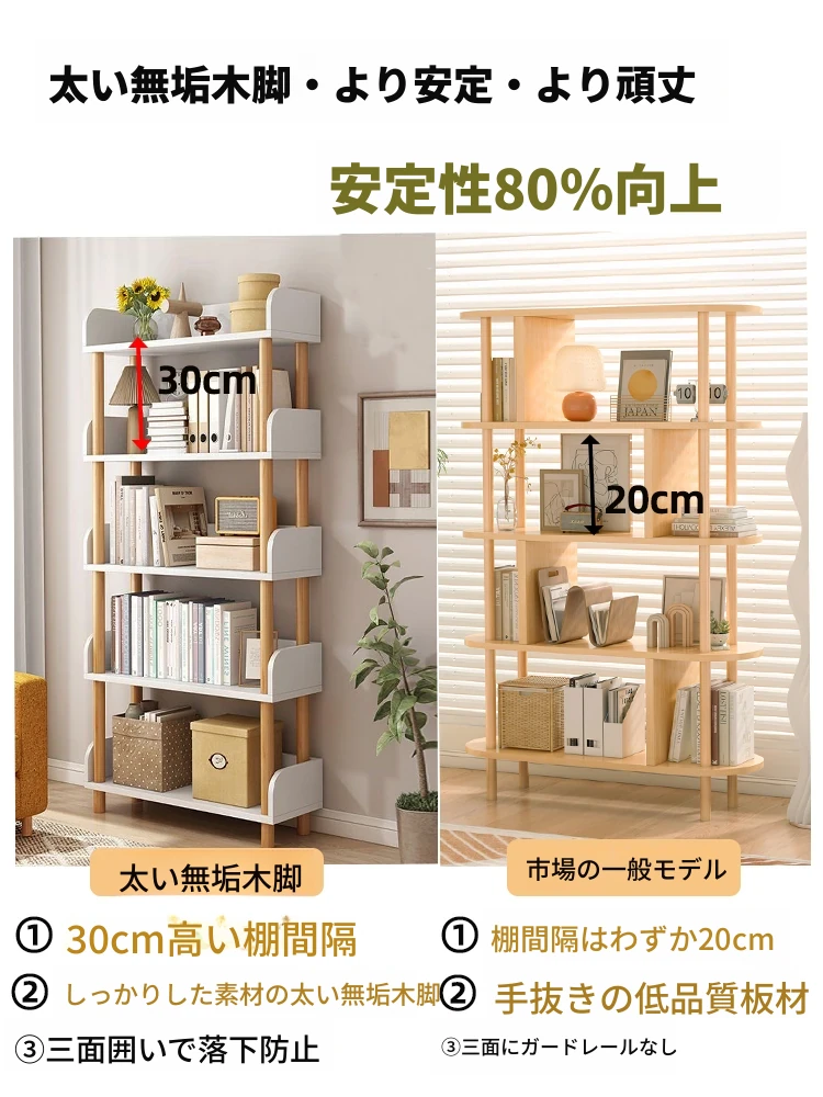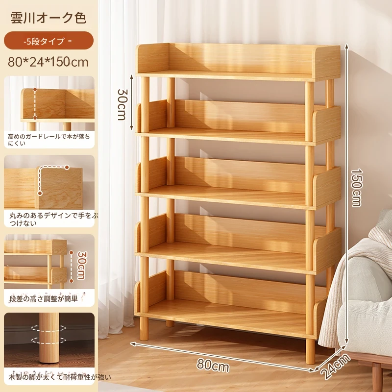 【厳選された厚質の板材⭐六段】オーク色80*30*180cm