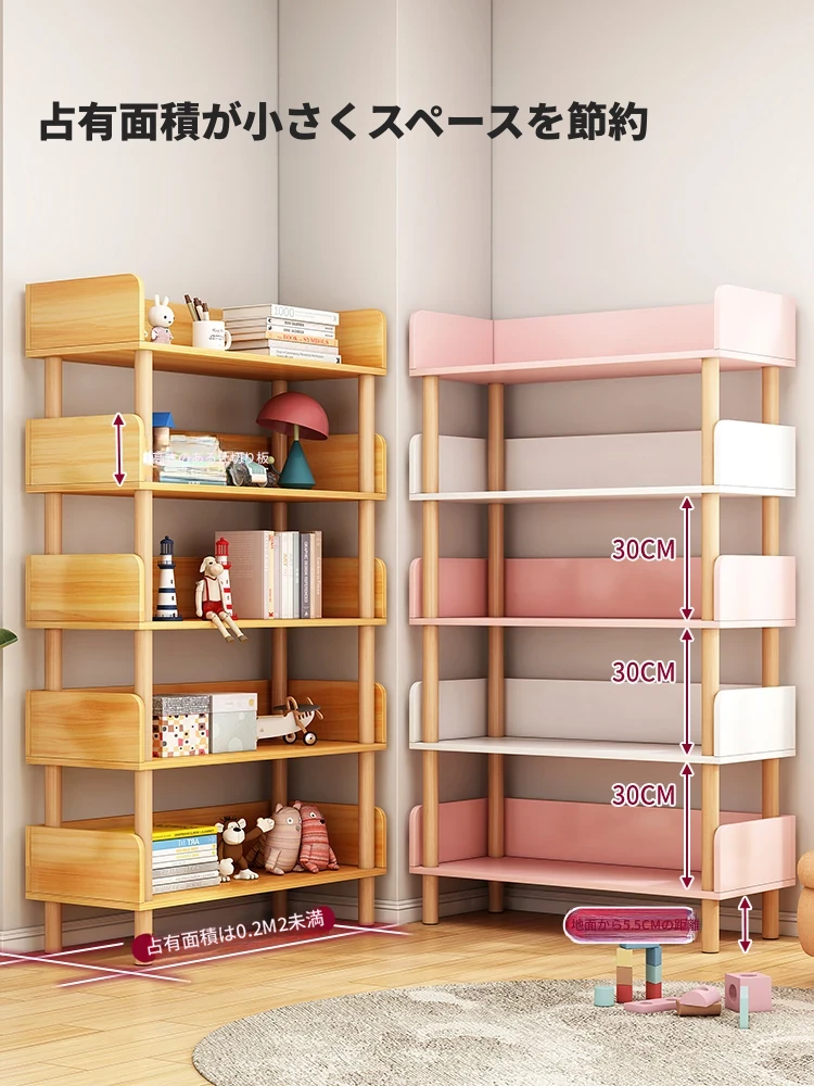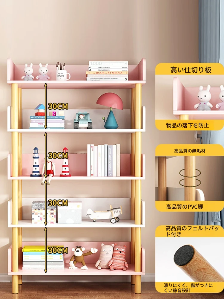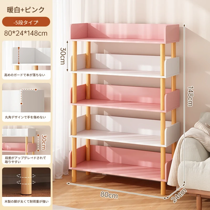 【厳選された厚質の板材⭐五段】ピンク白色80*24*150cm