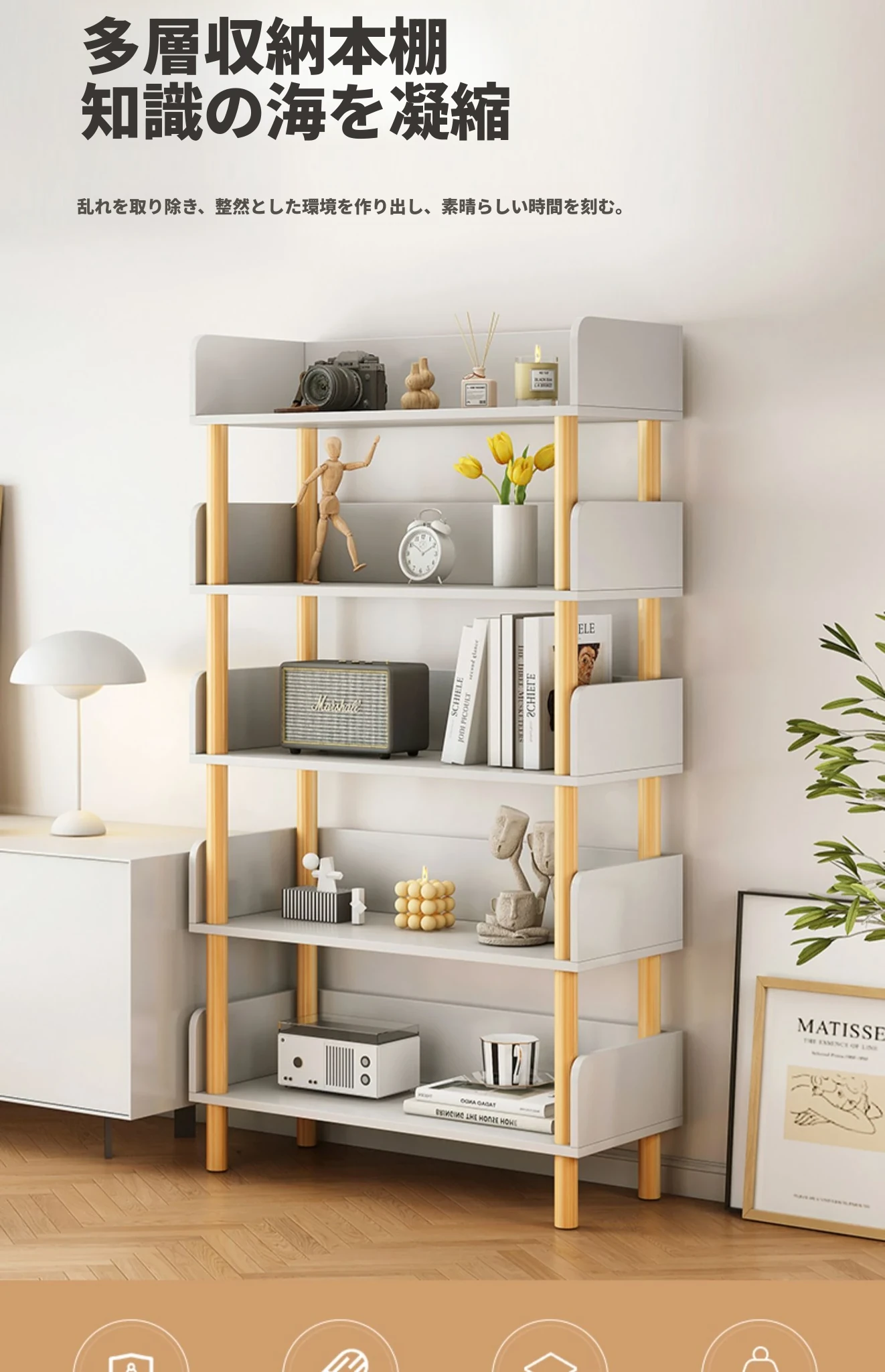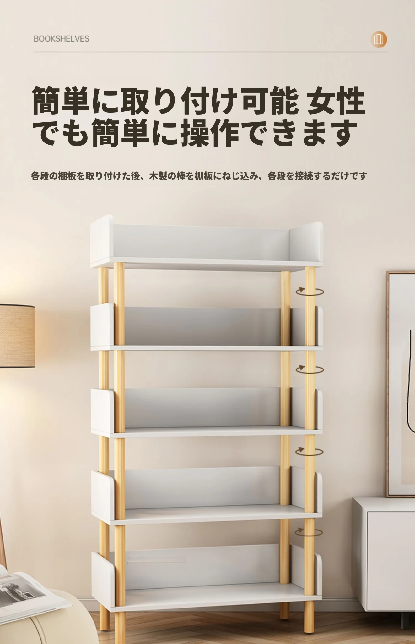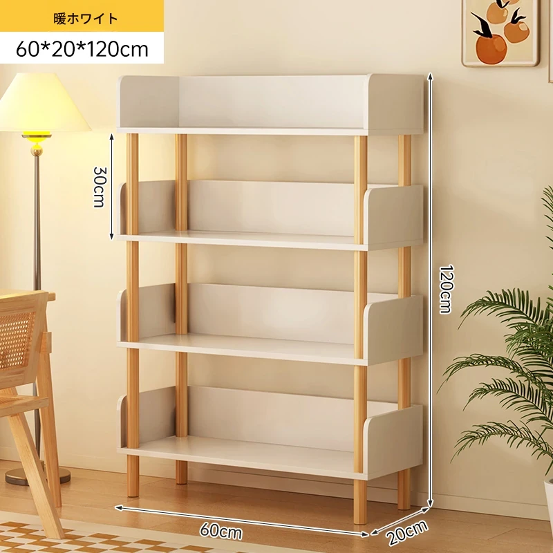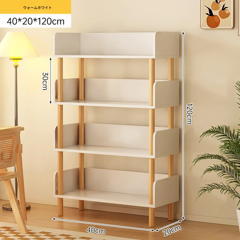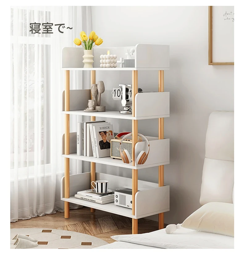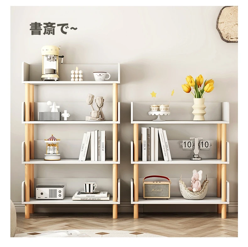スタイリッシュなフロア本棚・収納ラック - リビングや学生寮に最適!壁に寄せてスッキリ収納、使いやすいシンプルデザインで、あなたのスペースを有効活用します。