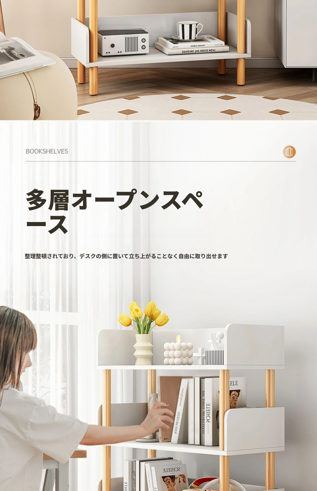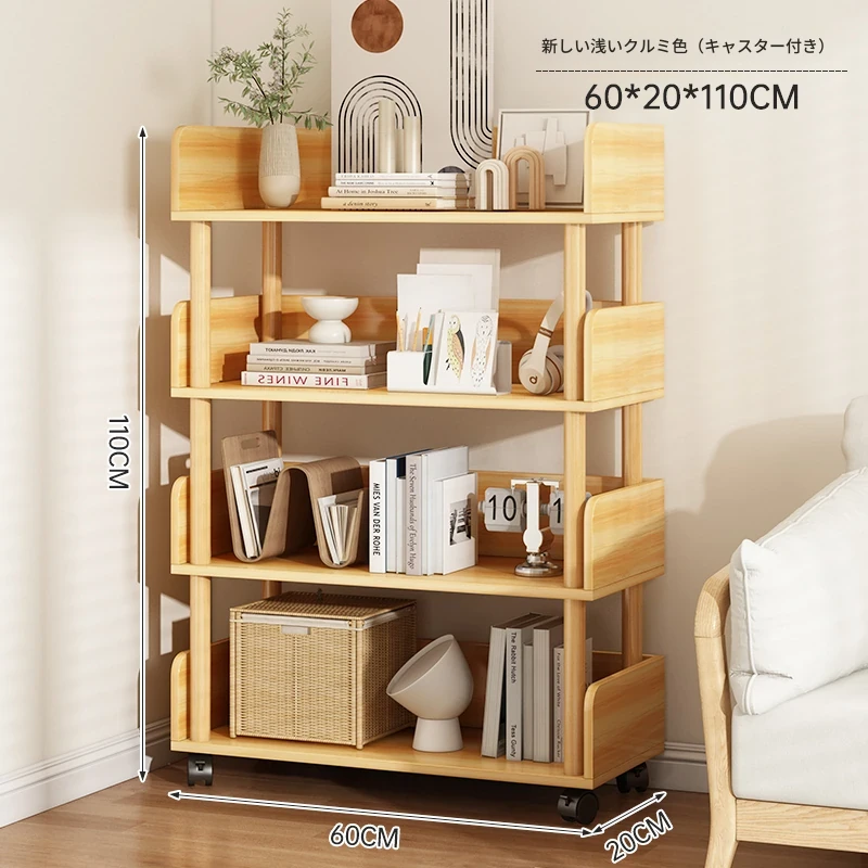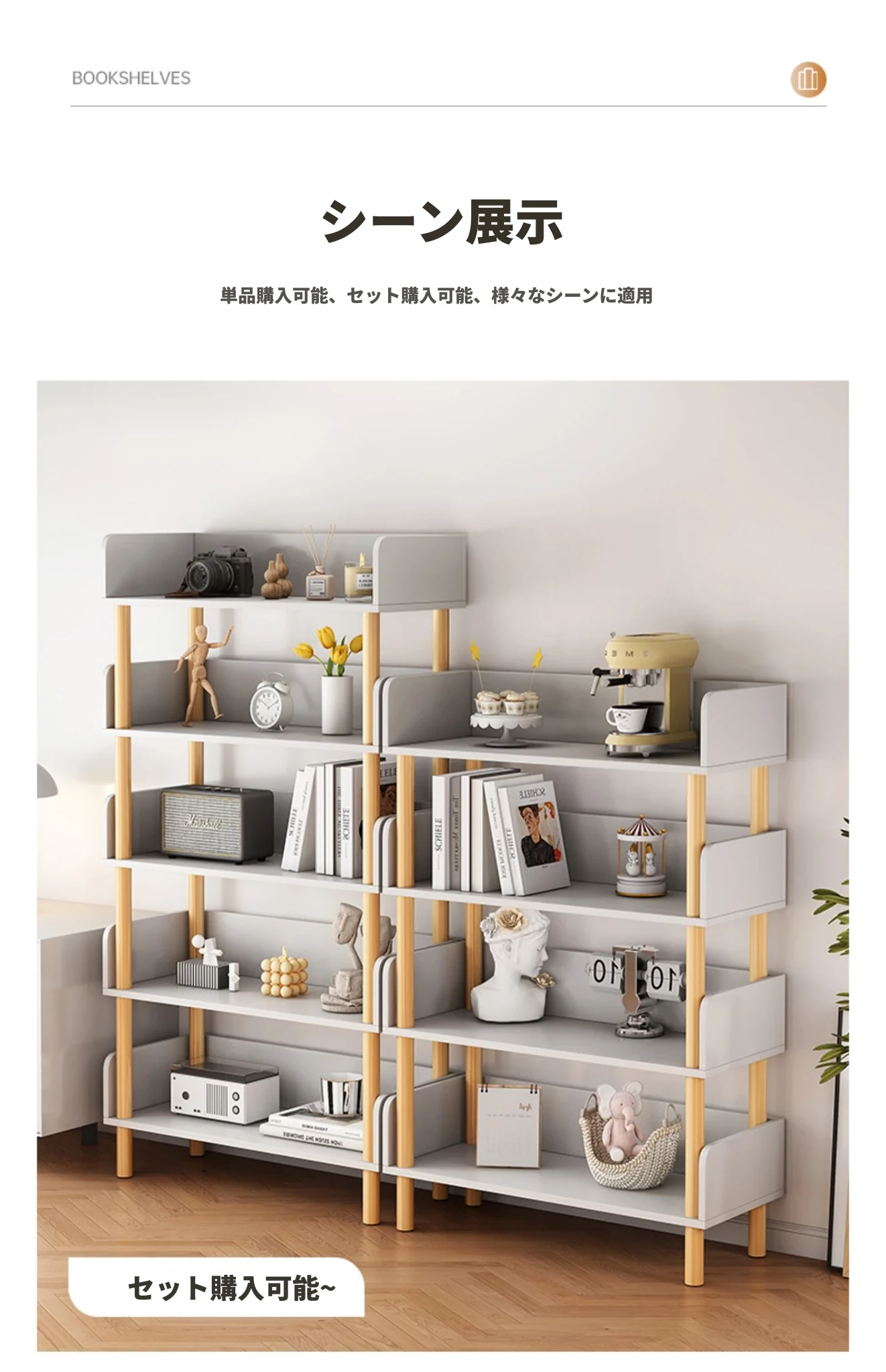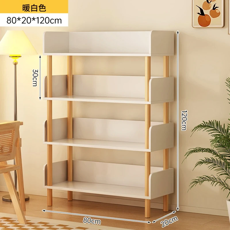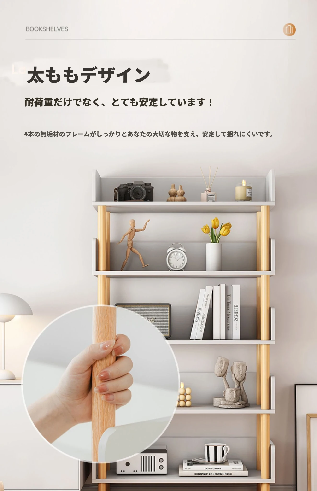 スタイリッシュなフロア本棚・収納ラック - リビングや学生寮に最適!壁に寄せてスッキリ収納、使いやすいシンプルデザインで、あなたのスペースを有効活用します。