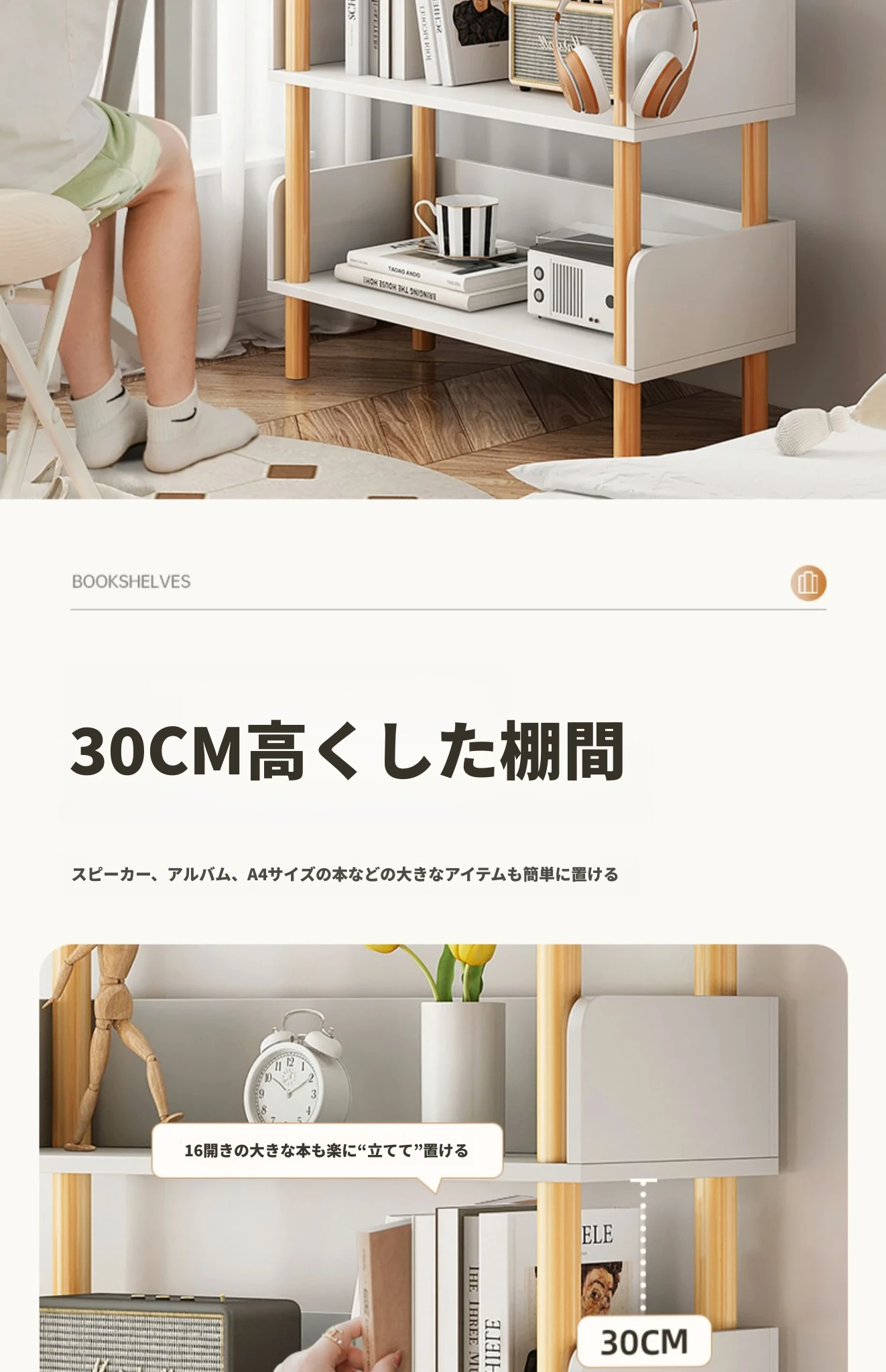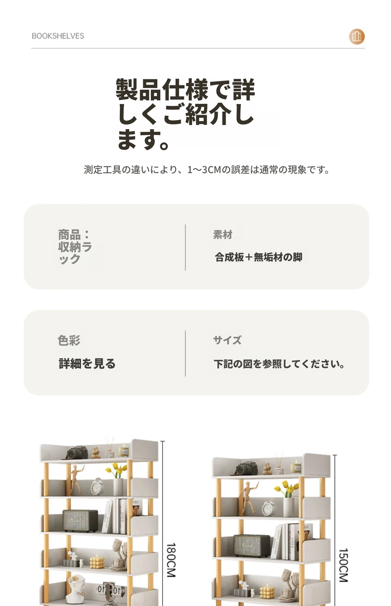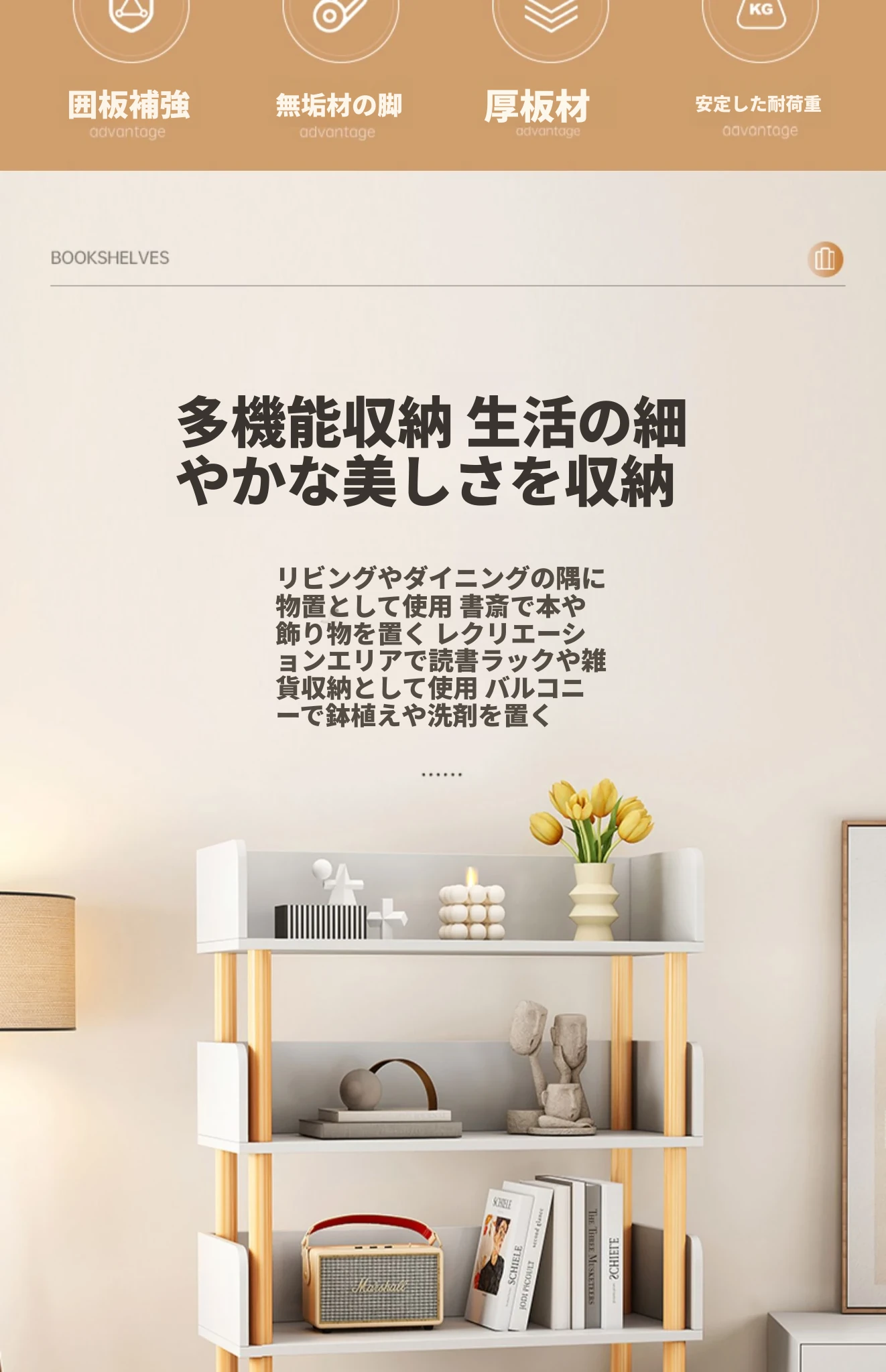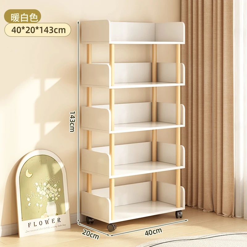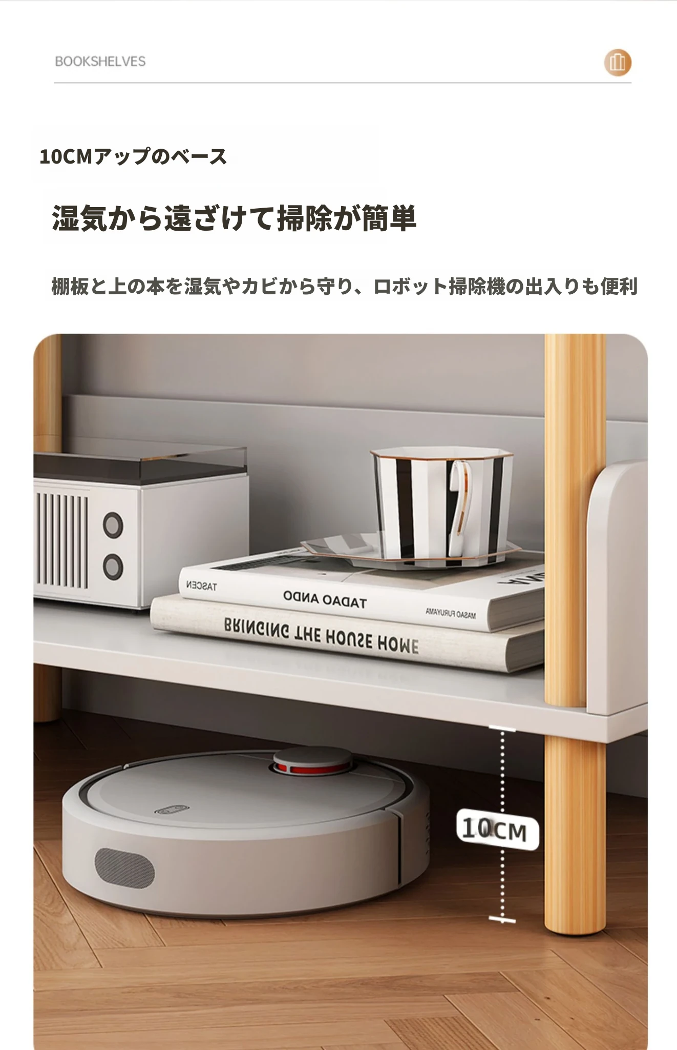 スタイリッシュなフロア本棚・収納ラック - リビングや学生寮に最適!壁に寄せてスッキリ収納、使いやすいシンプルデザインで、あなたのスペースを有効活用します。