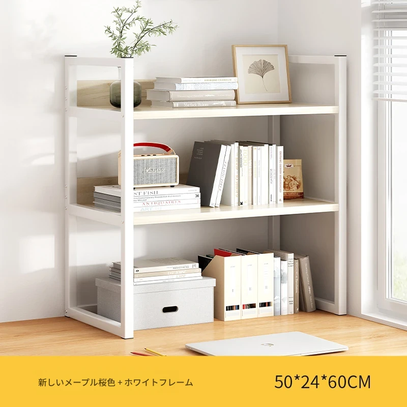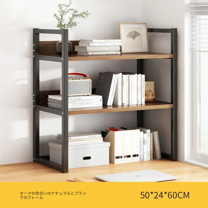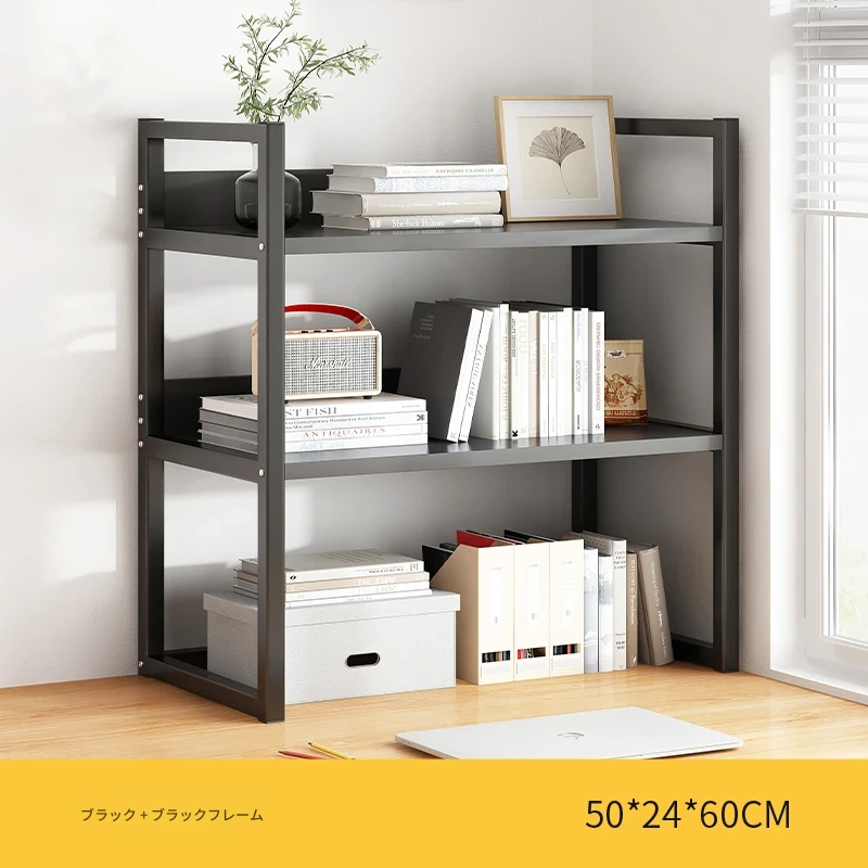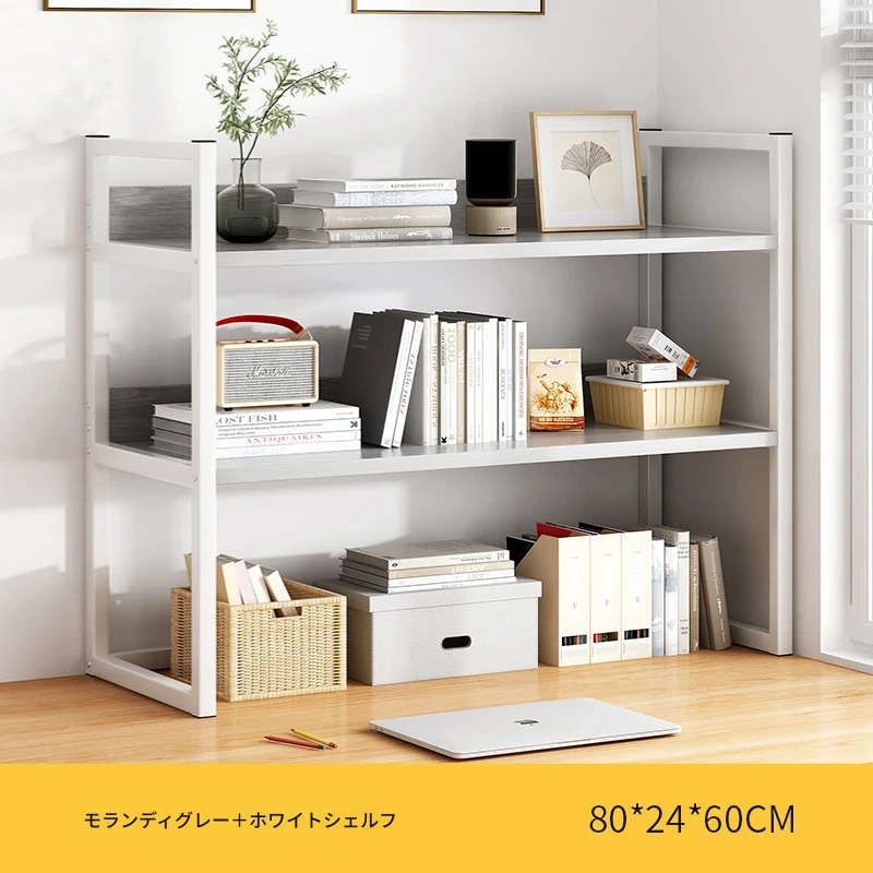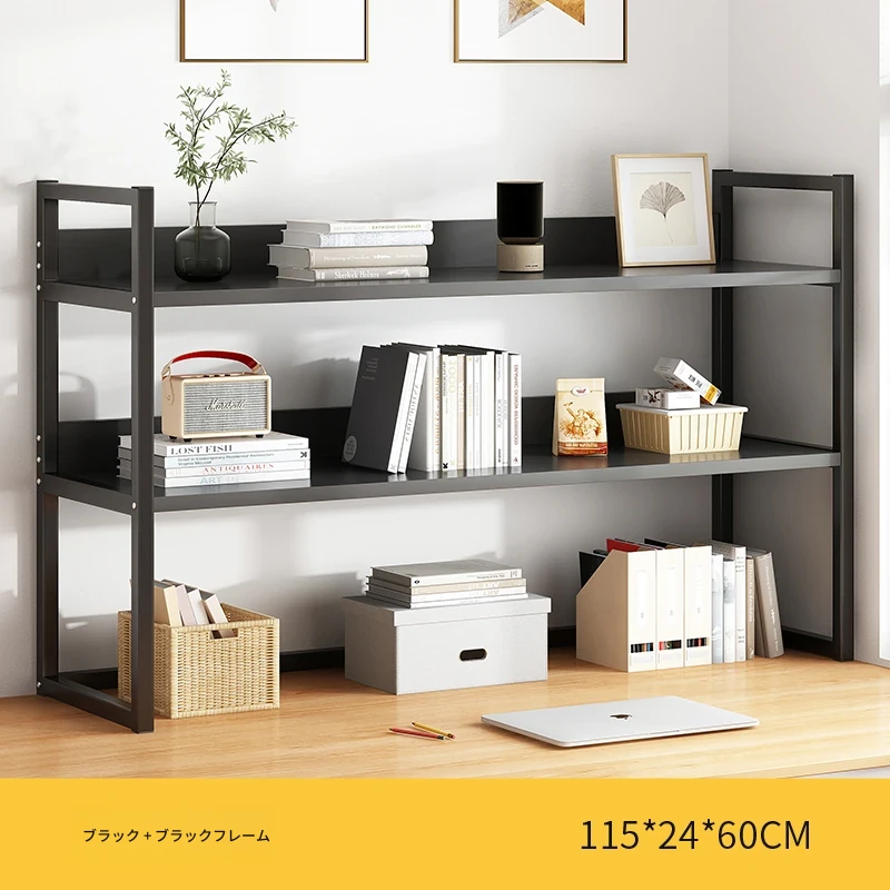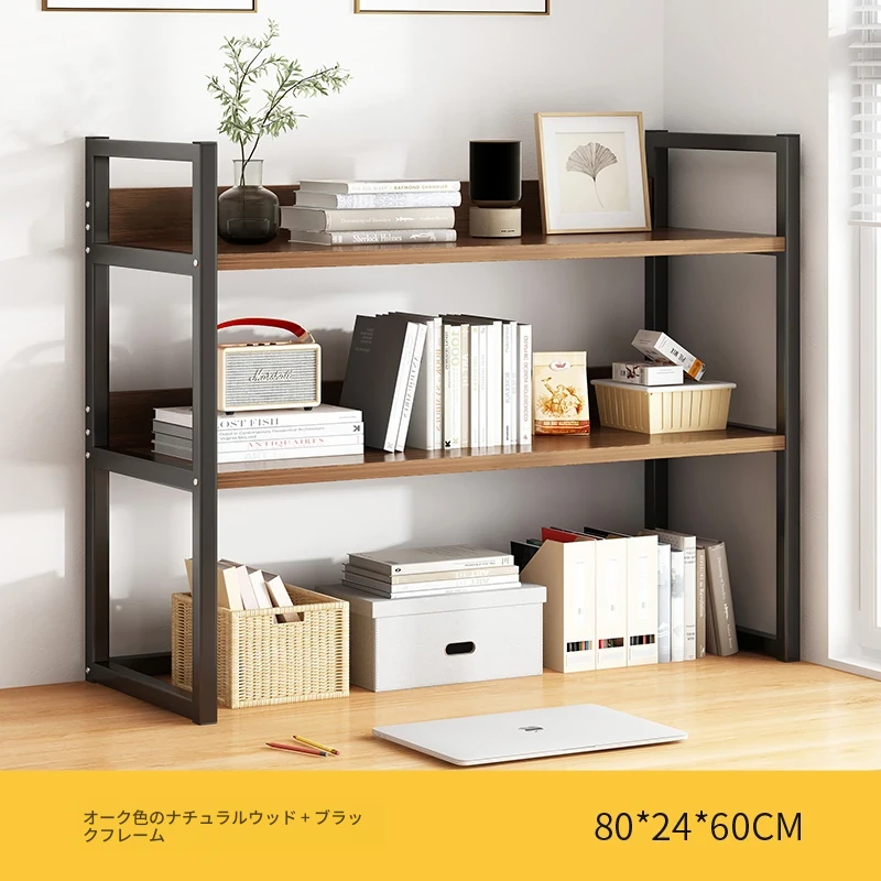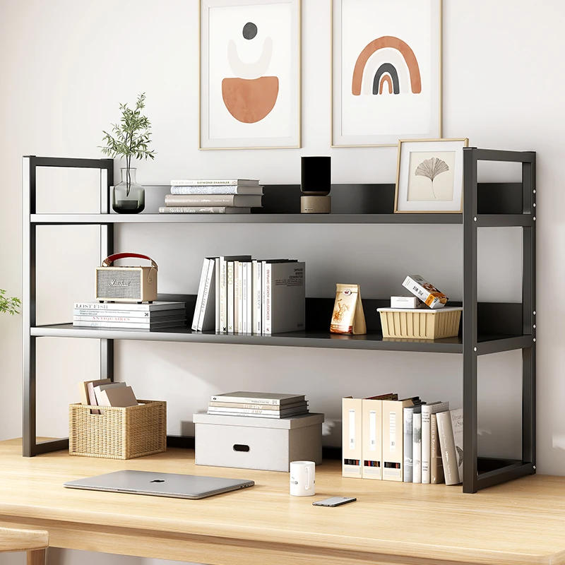 デスク上整理ラック - アイアン製オフィス収納シェルフ、シンプルでスタイリッシュな書籍ラック。学生寮にも最適なコンパクトな本収納で、デスク周りをスッキリ整頓!