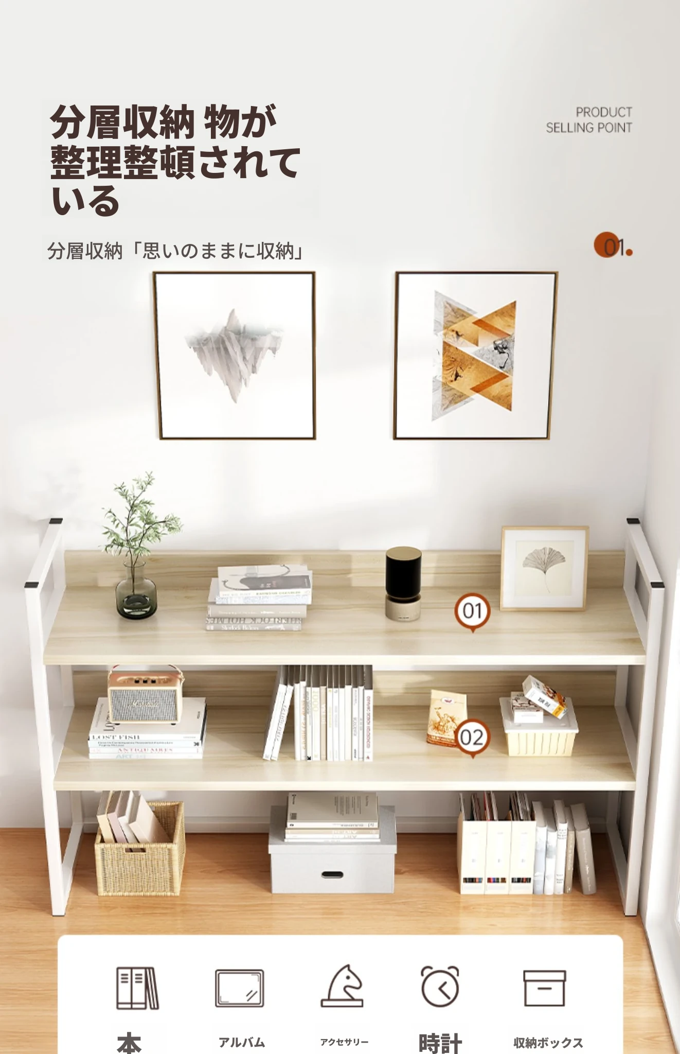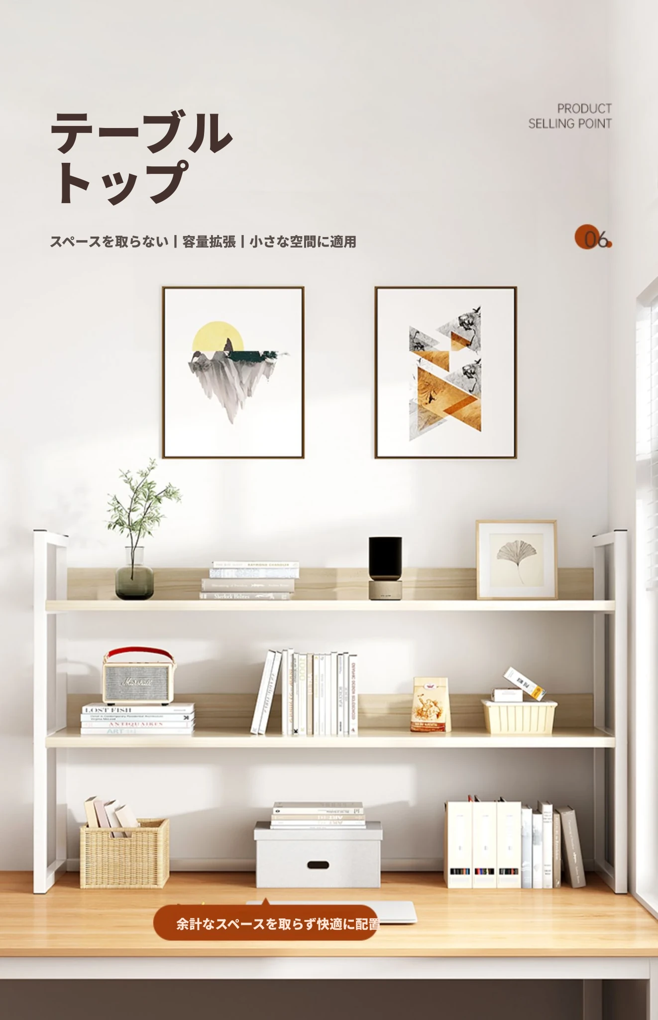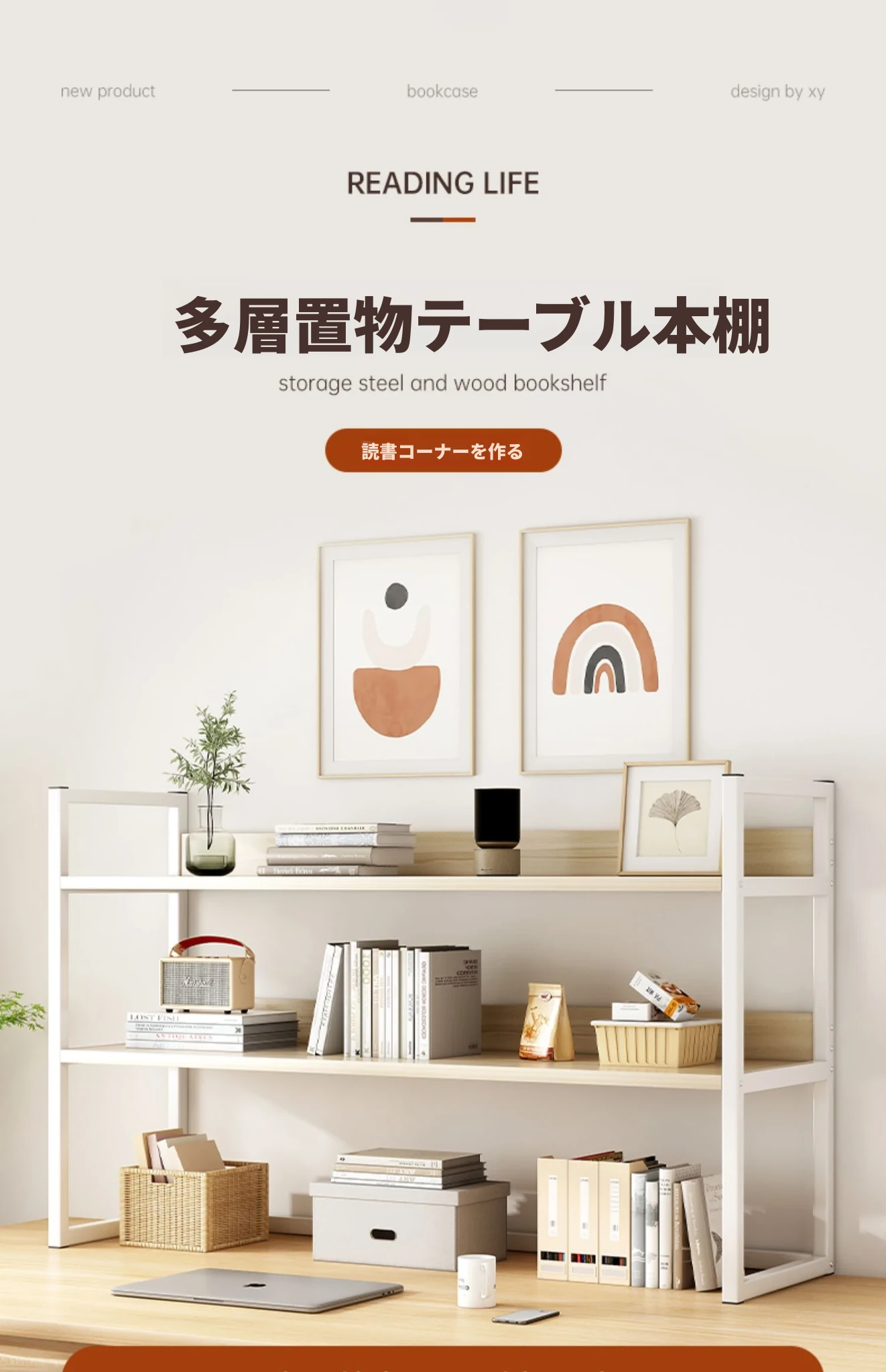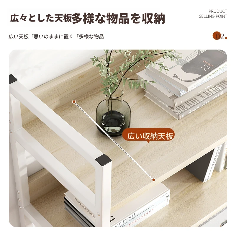 デスク上整理ラック - アイアン製オフィス収納シェルフ、シンプルでスタイリッシュな書籍ラック。学生寮にも最適なコンパクトな本収納で、デスク周りをスッキリ整頓!