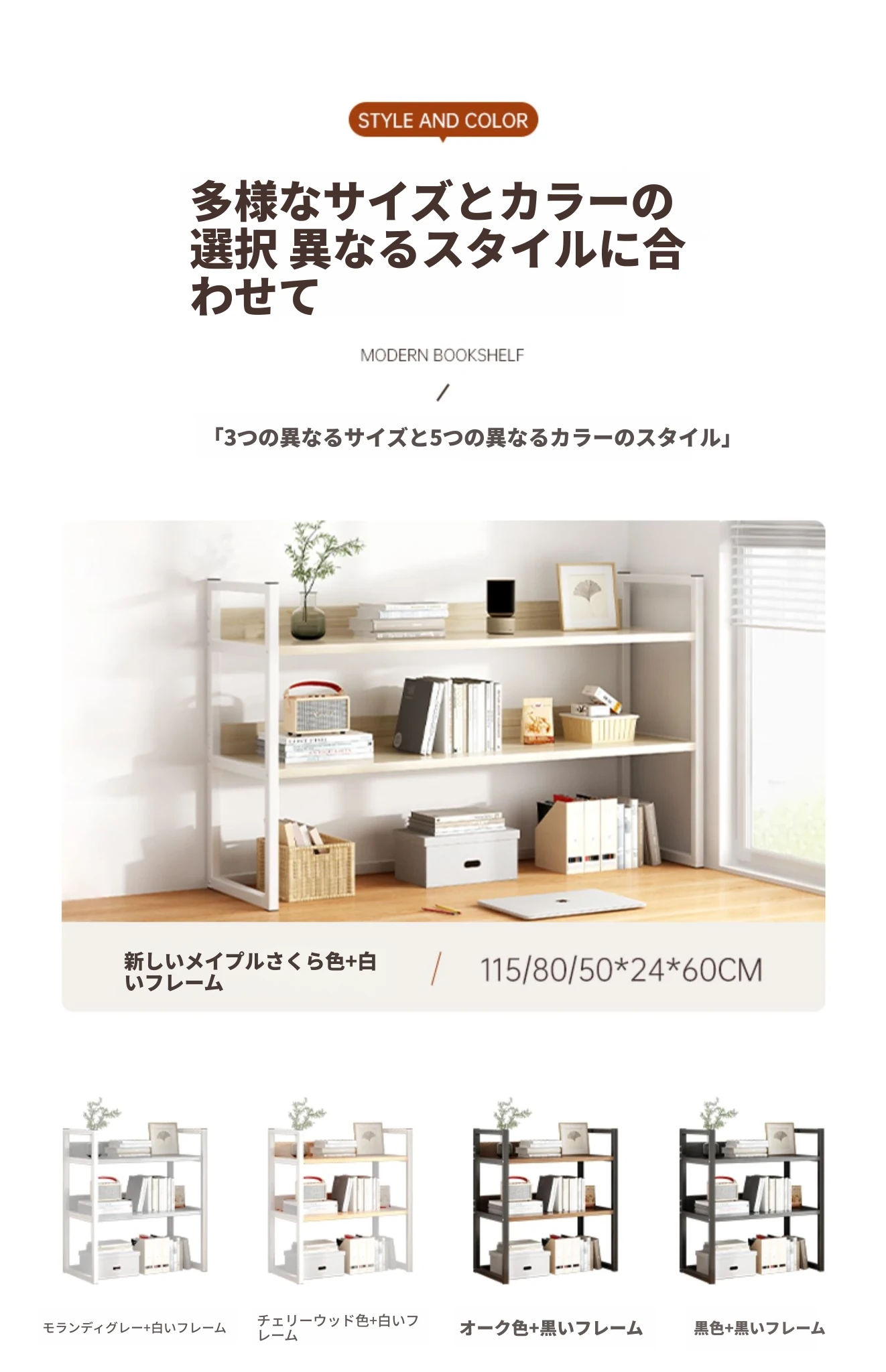 オーク色+黒フレーム50*24*60CM【厚板】
