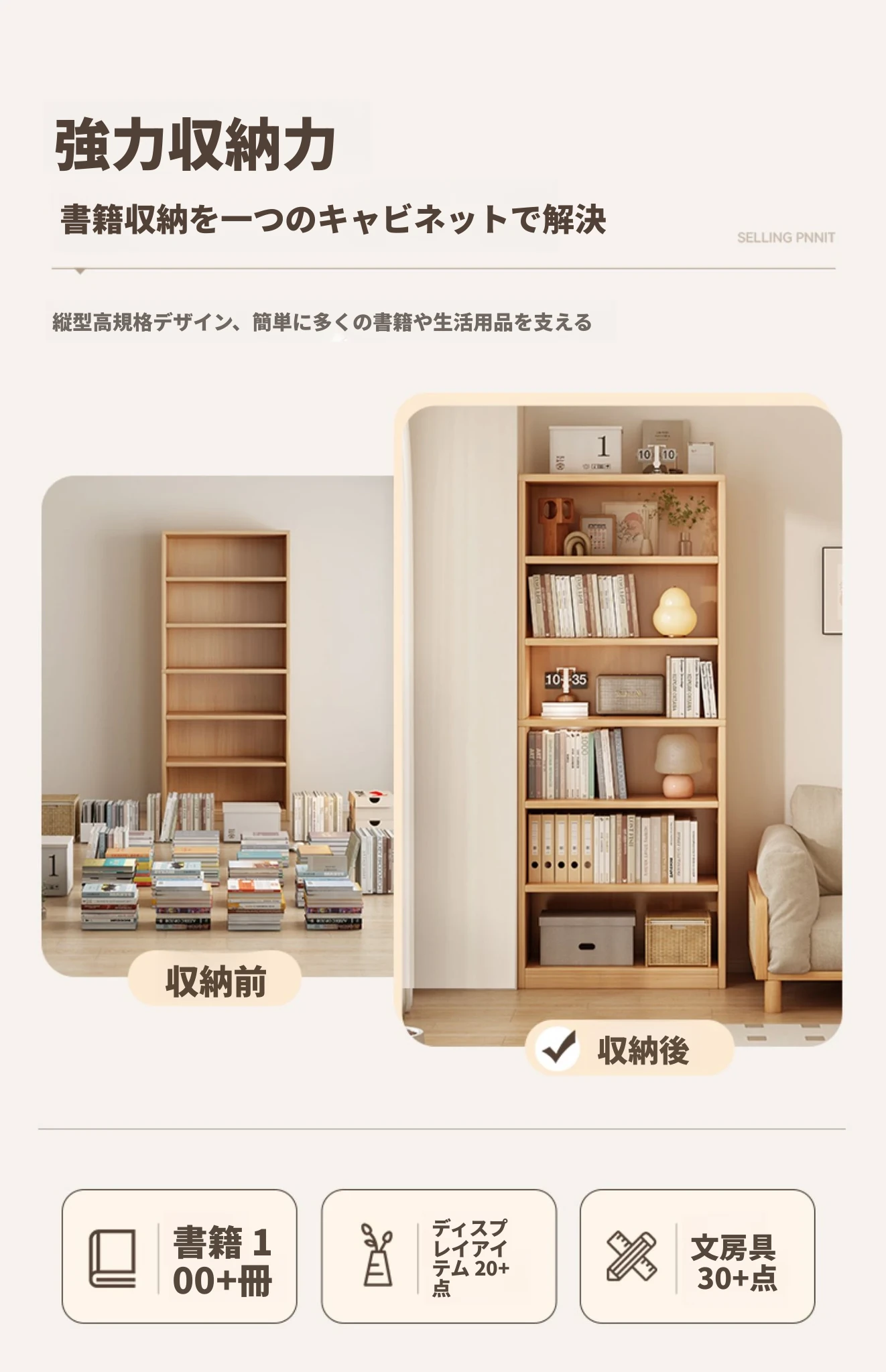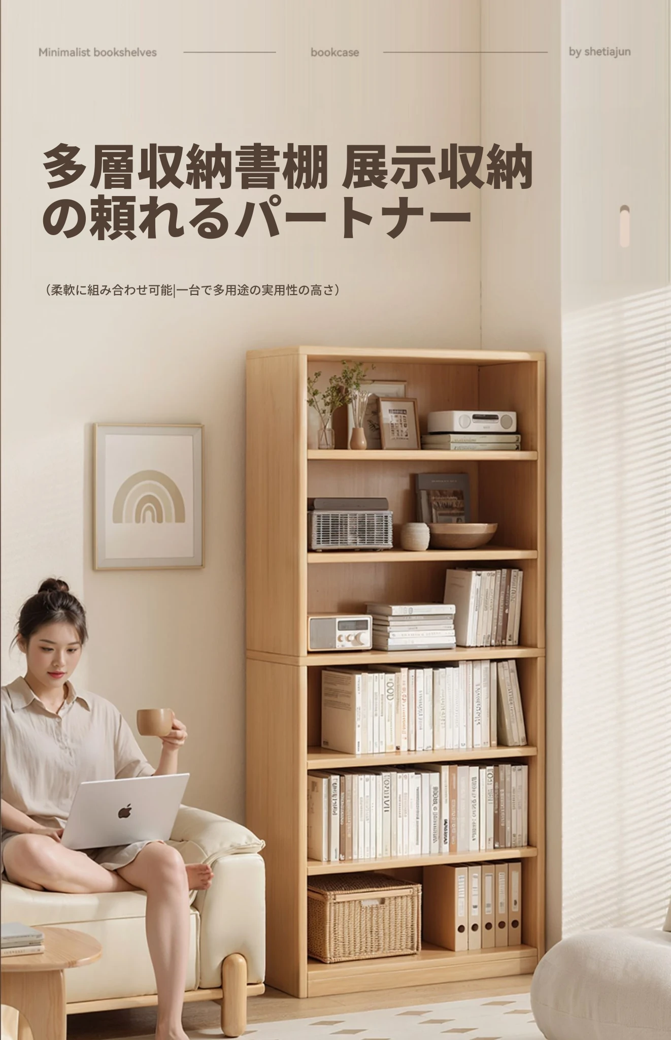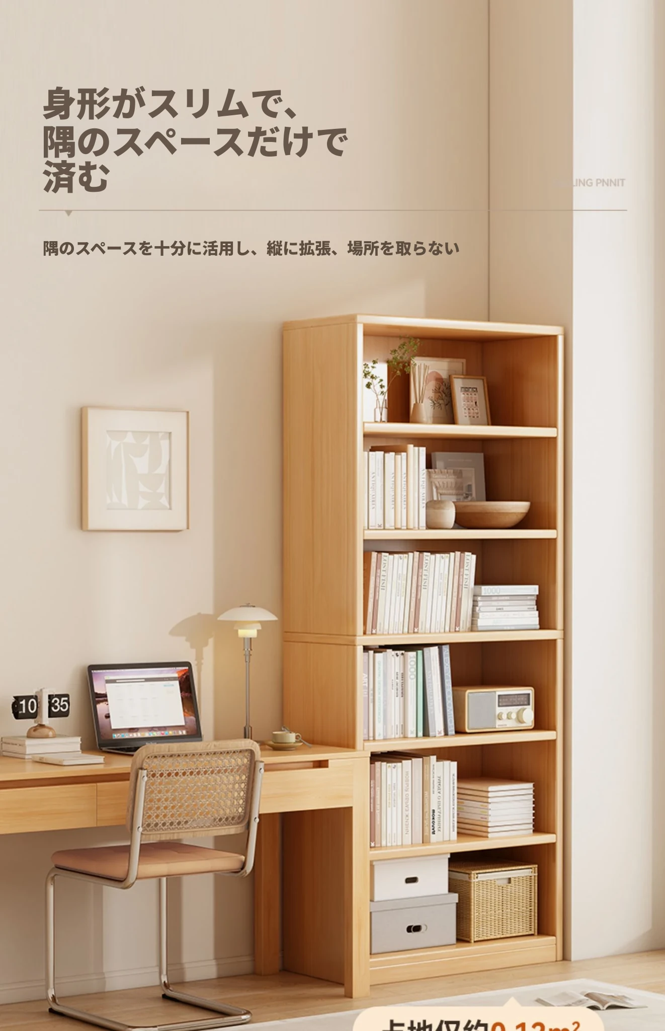 図書館スタイルのフロア置き棚 - 壁にぴったりフィットする全身収納・ディスプレイキャビネット!家庭や学生に最適な書籍収納ラックで、整理整頓もおしゃれに。