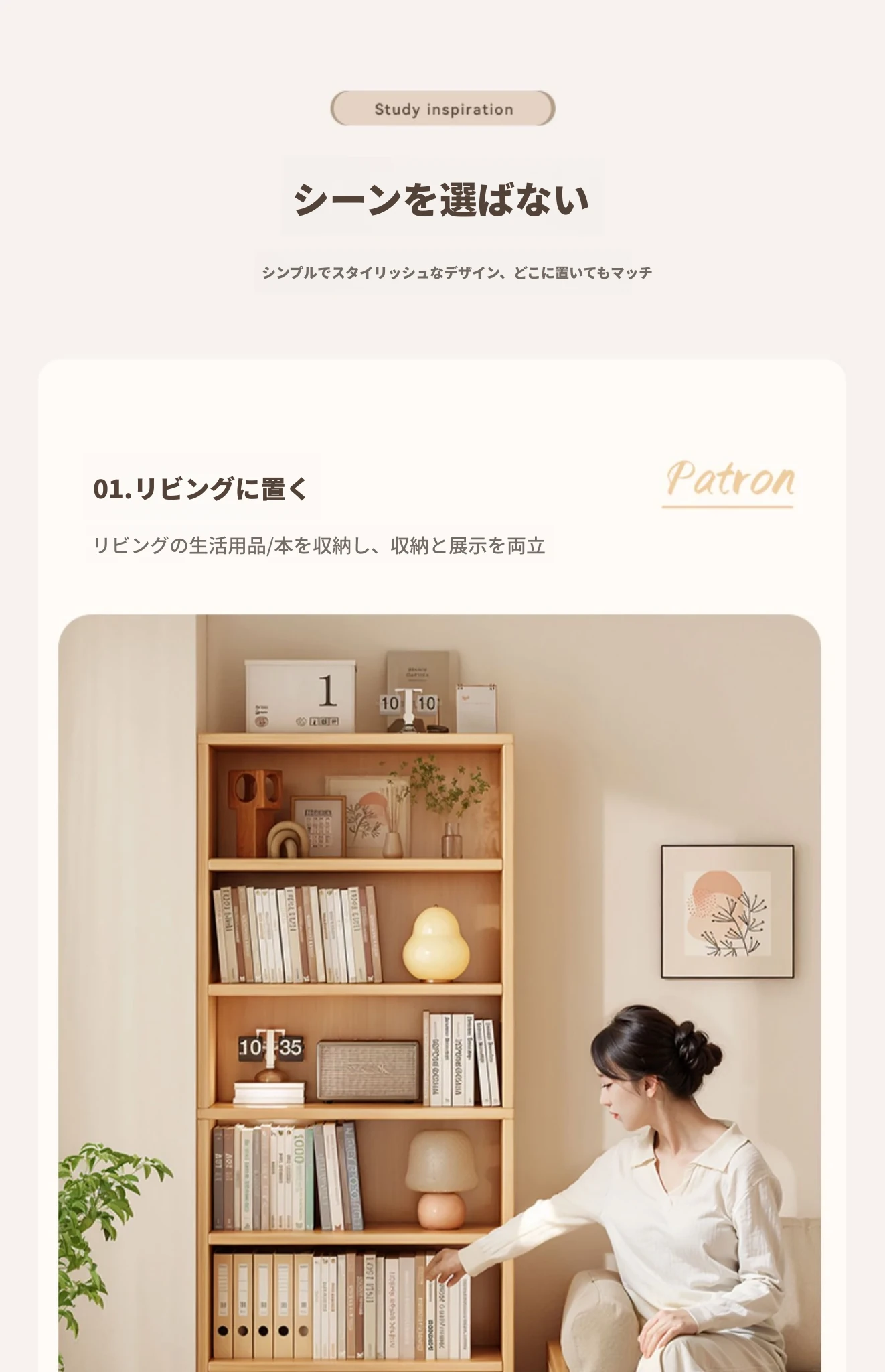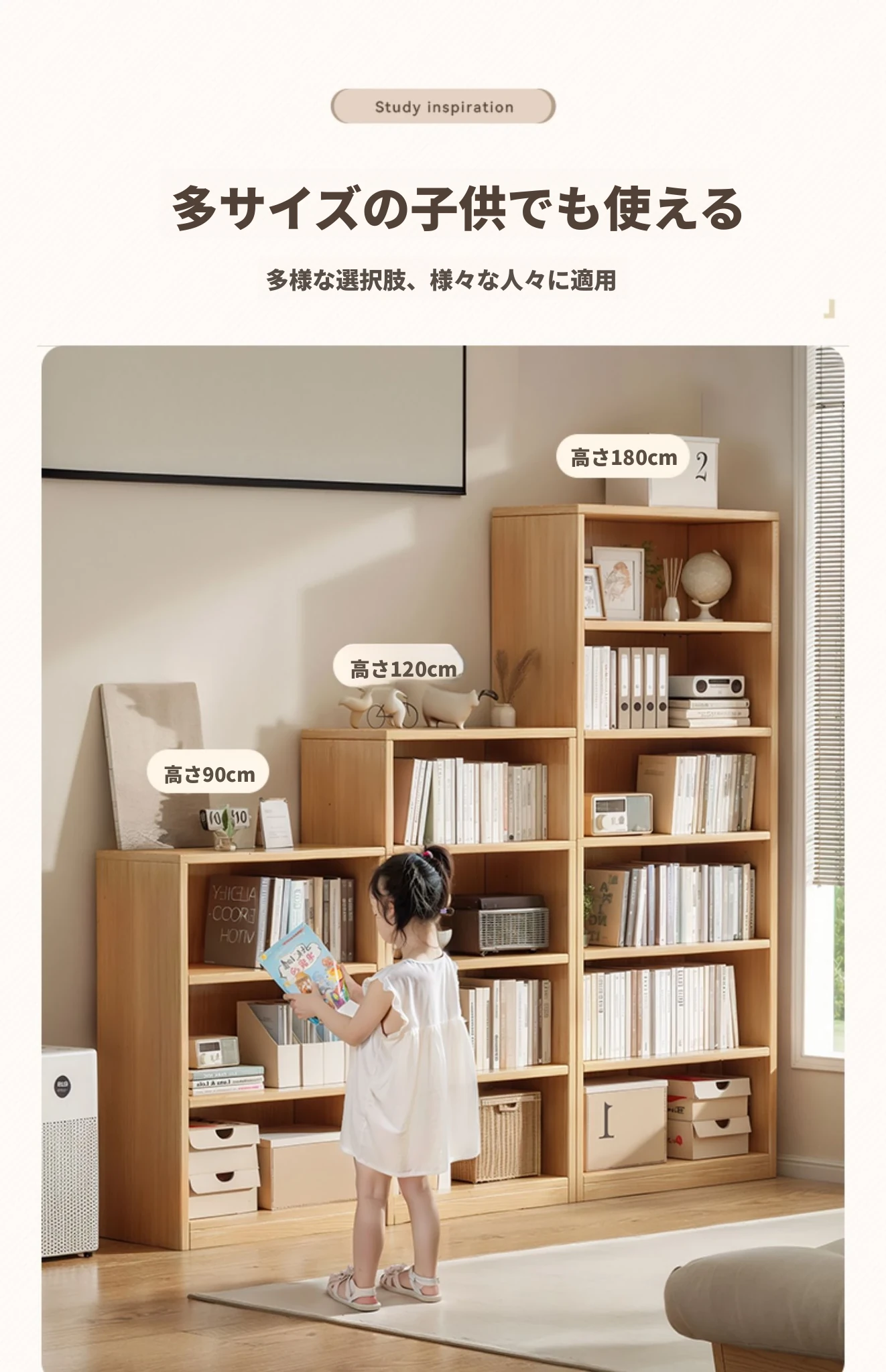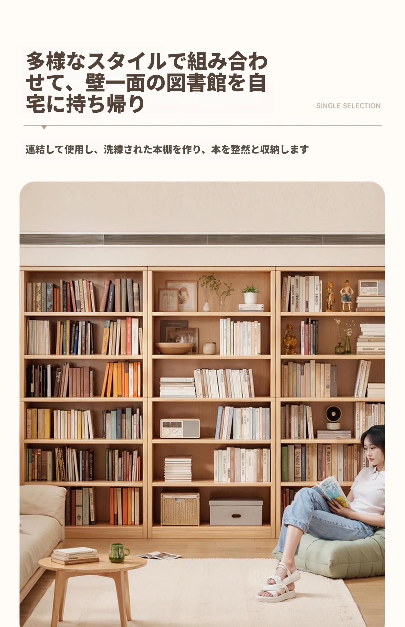 図書館スタイルのフロア置き棚 - 壁にぴったりフィットする全身収納・ディスプレイキャビネット!家庭や学生に最適な書籍収納ラックで、整理整頓もおしゃれに。