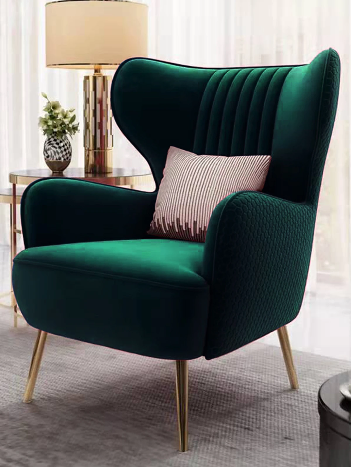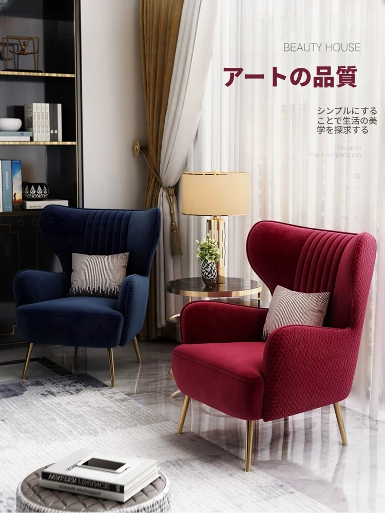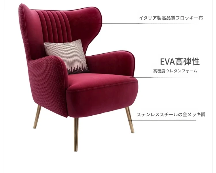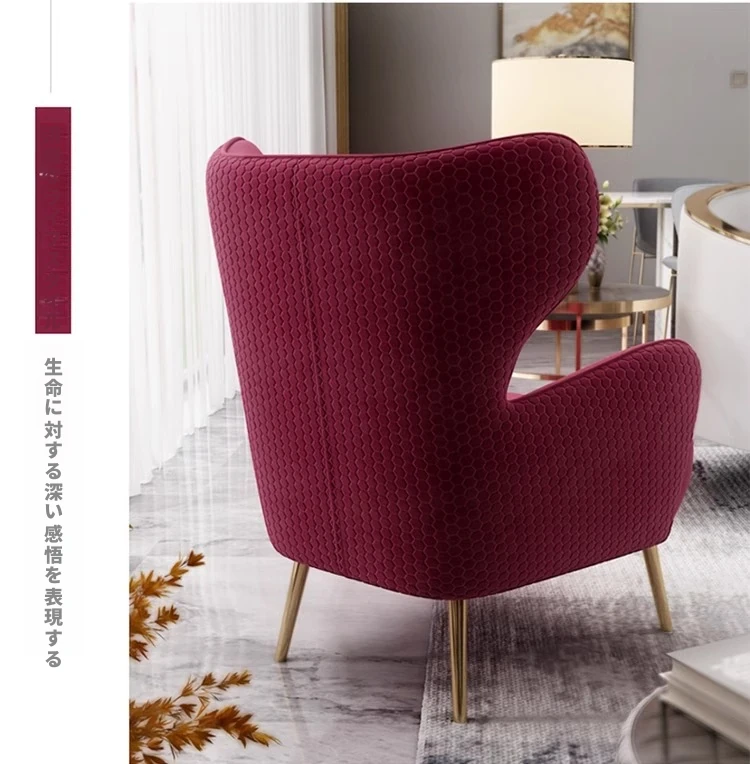 軽やかな贅沢感のある一人掛けソファチェア - バルコニーやリビングにぴったり!リラックスできるデザイン、ホテルや美容院にも最適な高背のトラチェアで、快適なひとときをお楽しみください。