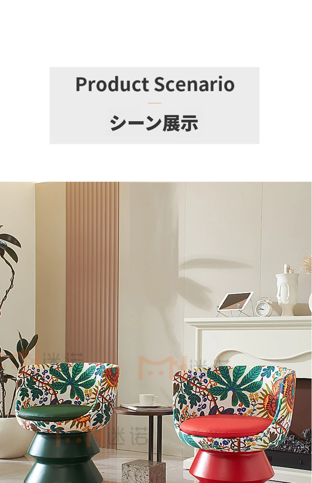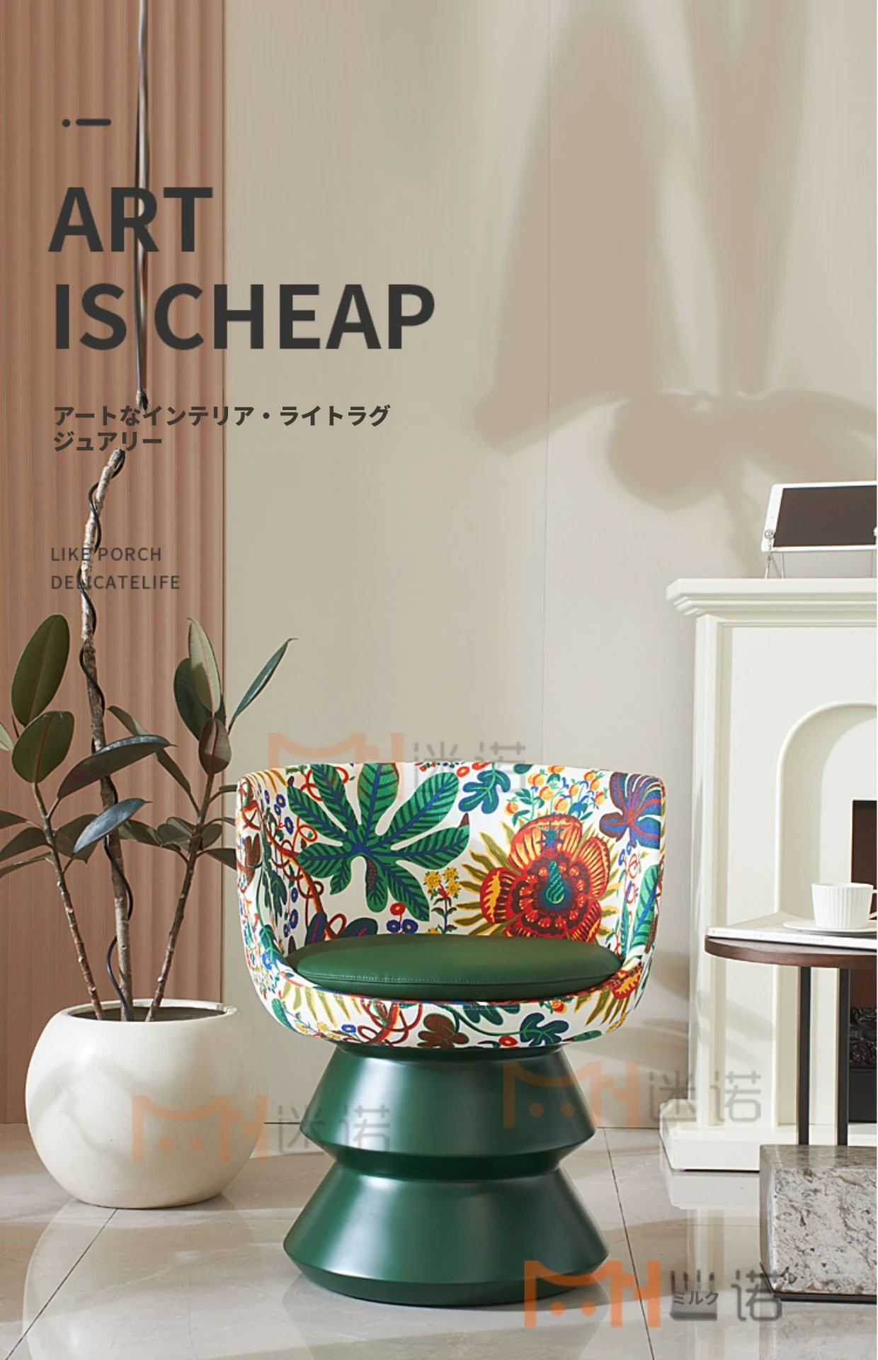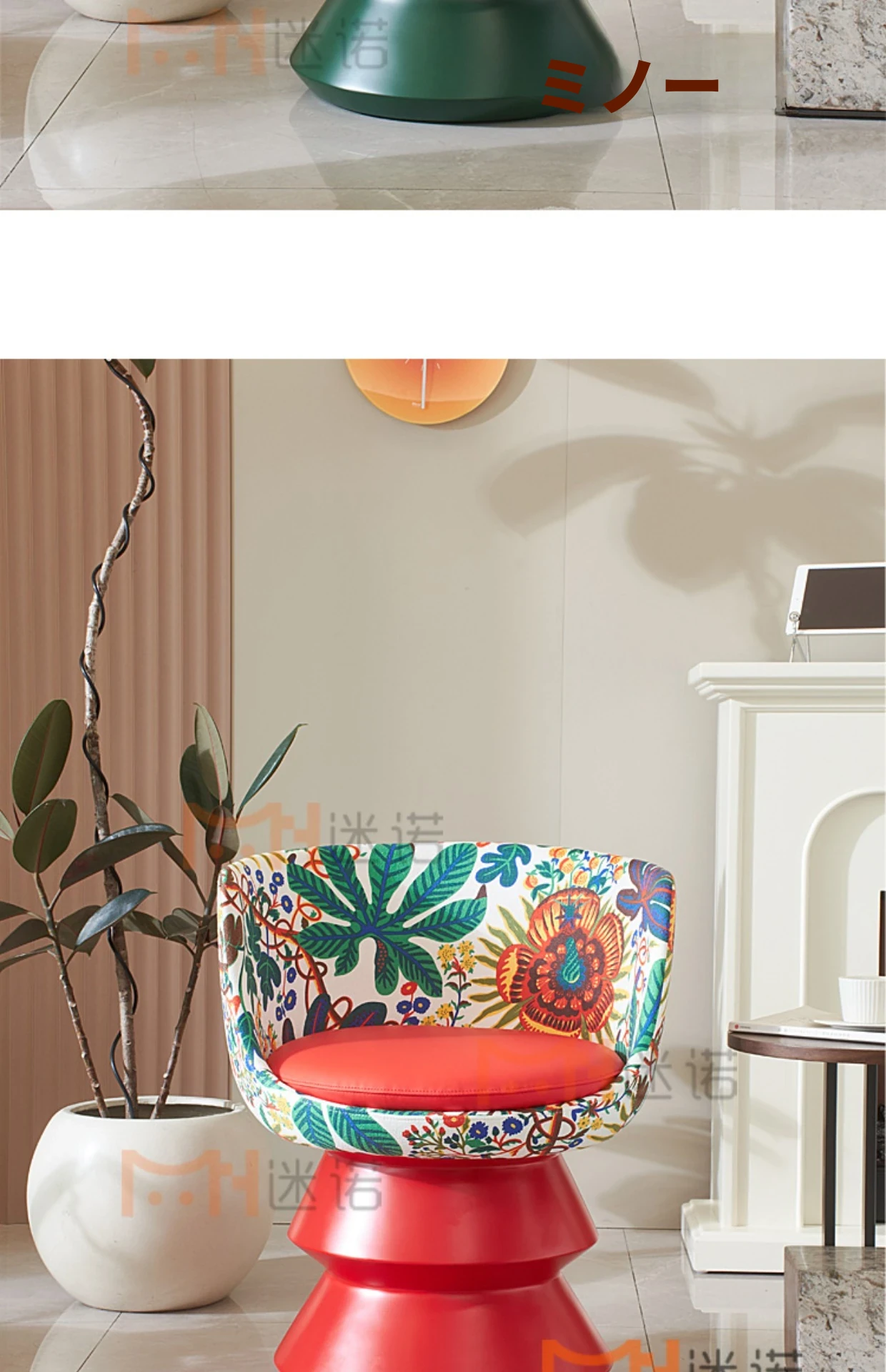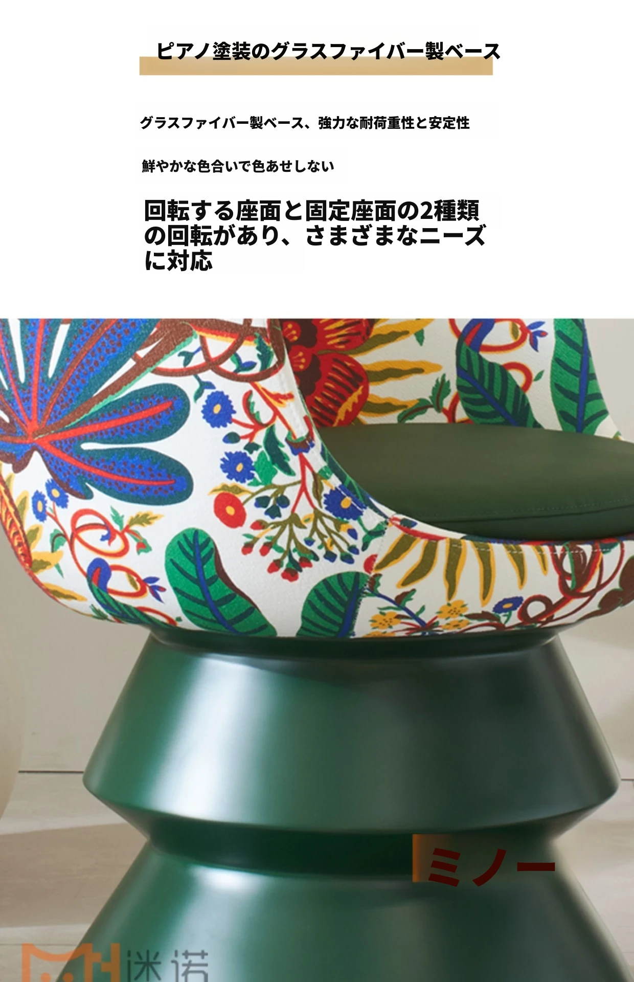 プリントファブリック+緑色のグラスファイバー台座