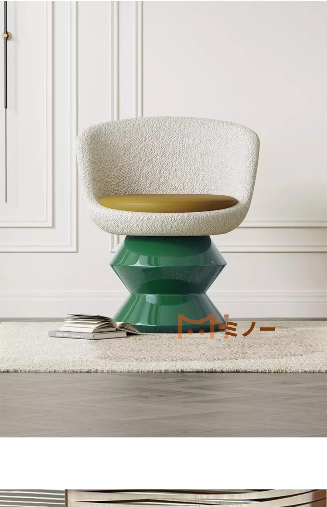 軽やかで上品なデザインのイタリアンスタイル、シンプルな回転式リビングソファチェア。おしゃれな洽談やくつろぎのひとときを演出する、人気のクリエイティブな一人掛け椅子。