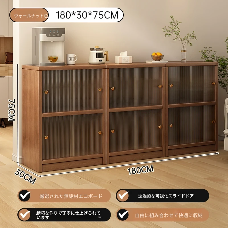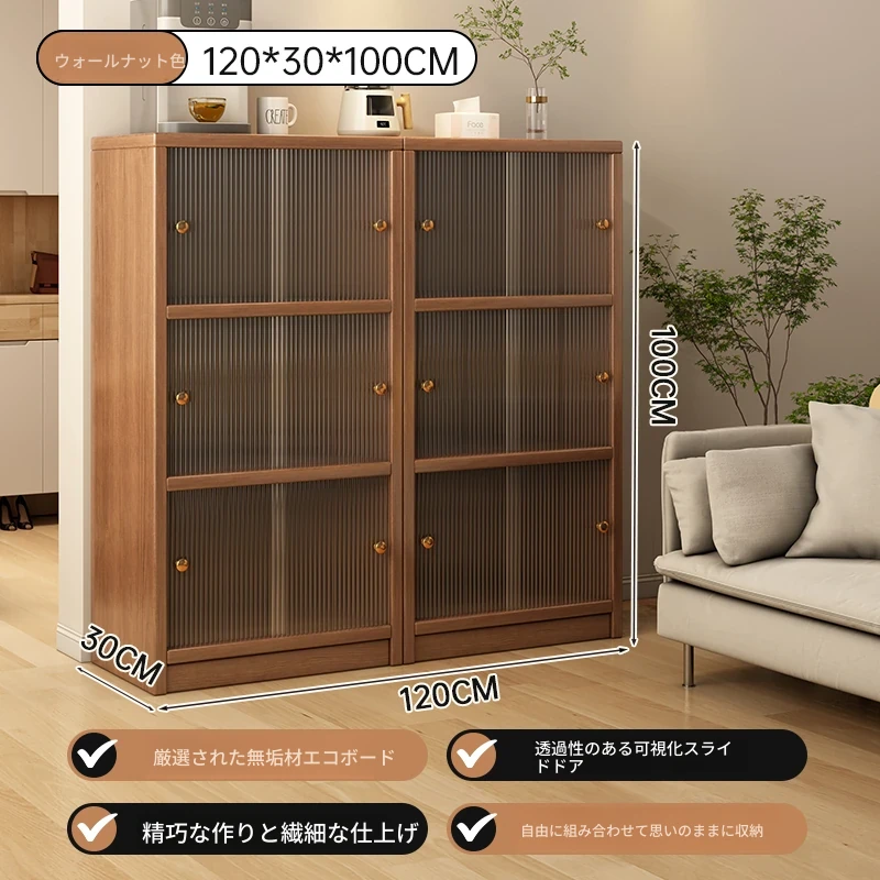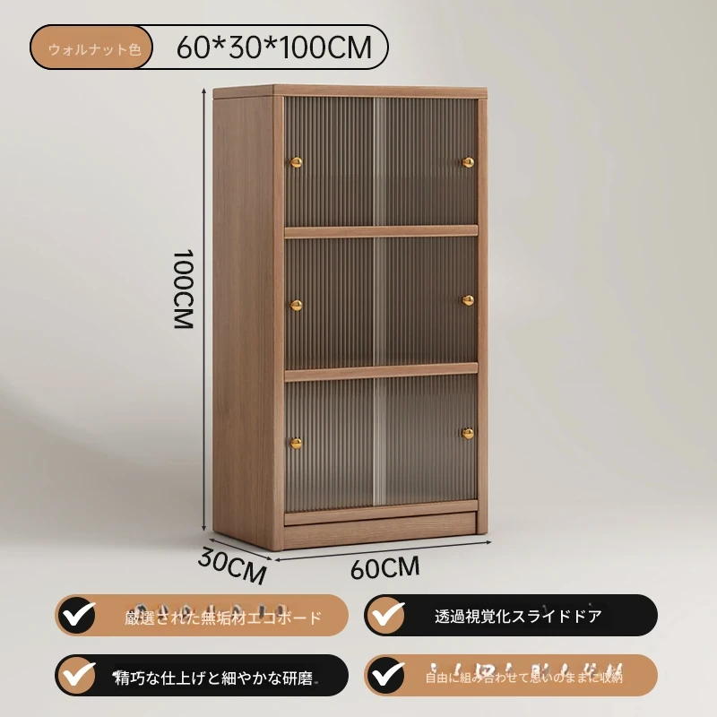 【スライドドア三段☆厳選無垢エコボード】ウォールナット色60*30*100cm