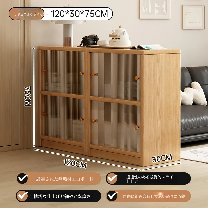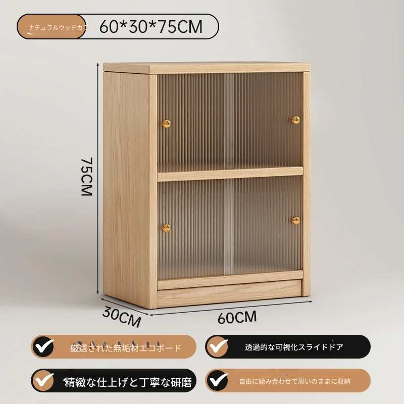 【スライドドア二段☆厳選無垢エコボード】ナチュラル色60*30*75cm