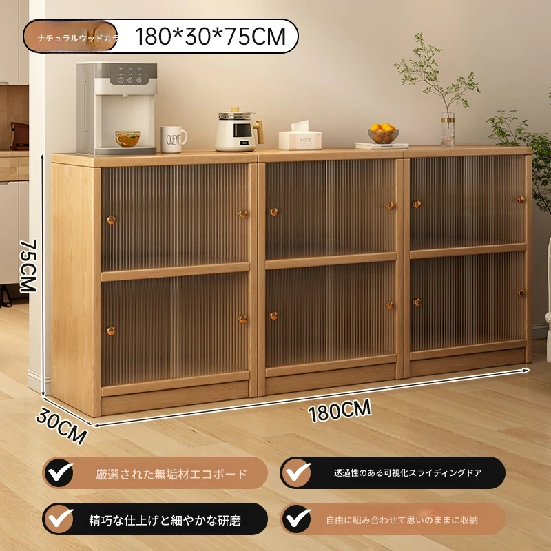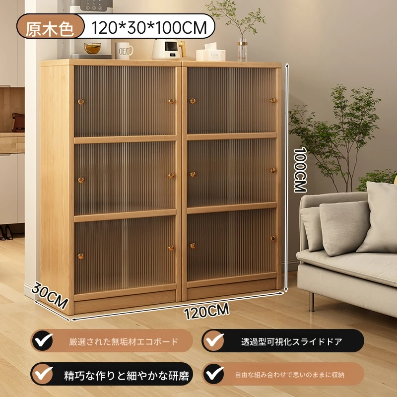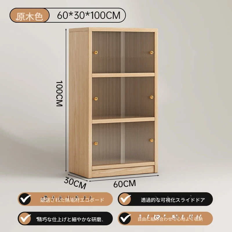 【スライドドア三段☆厳選無垢エコボード】ナチュラル色60*30*100cm
