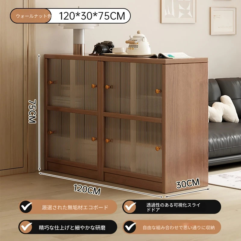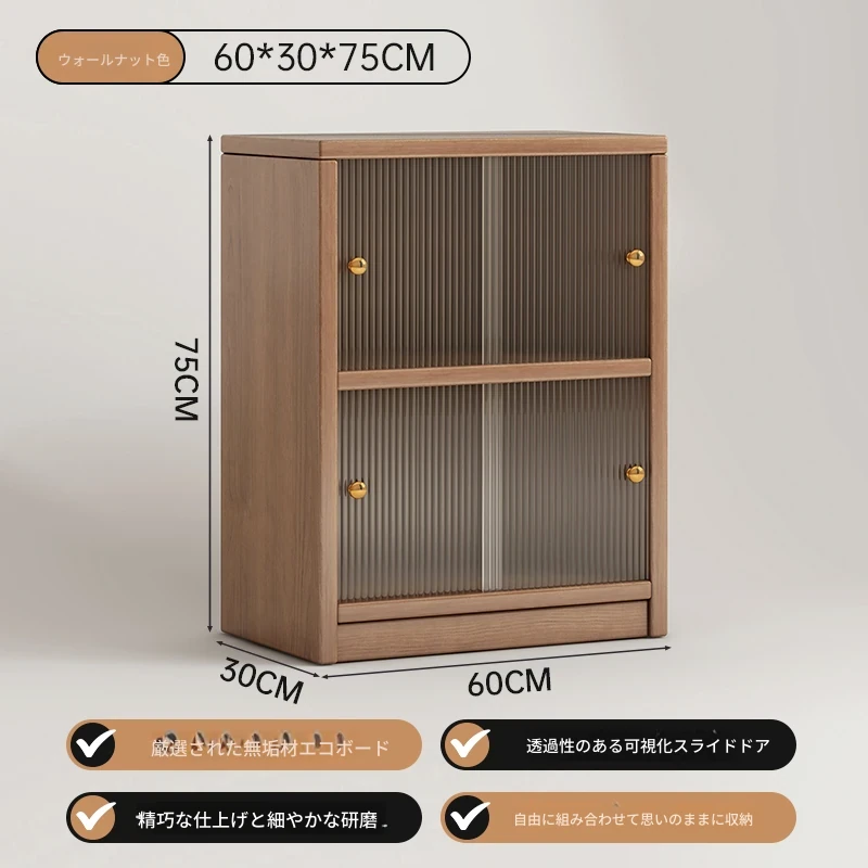 【スライドドア二段☆厳選無垢エコボード】ウォールナット色60*30*75cm