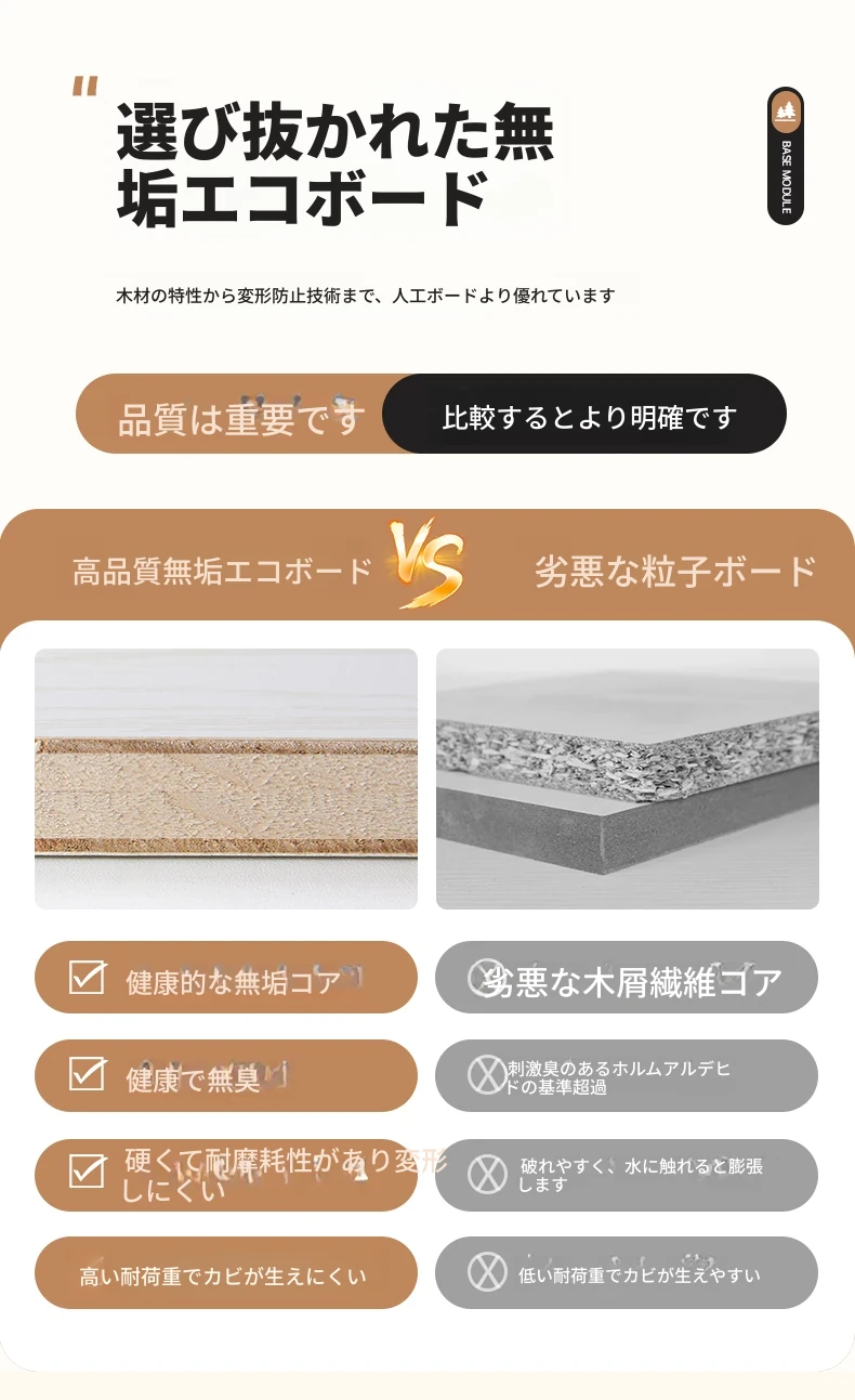 【組み合わせ二段☆厚無垢エコボード】ナチュラル色180*30*75cm