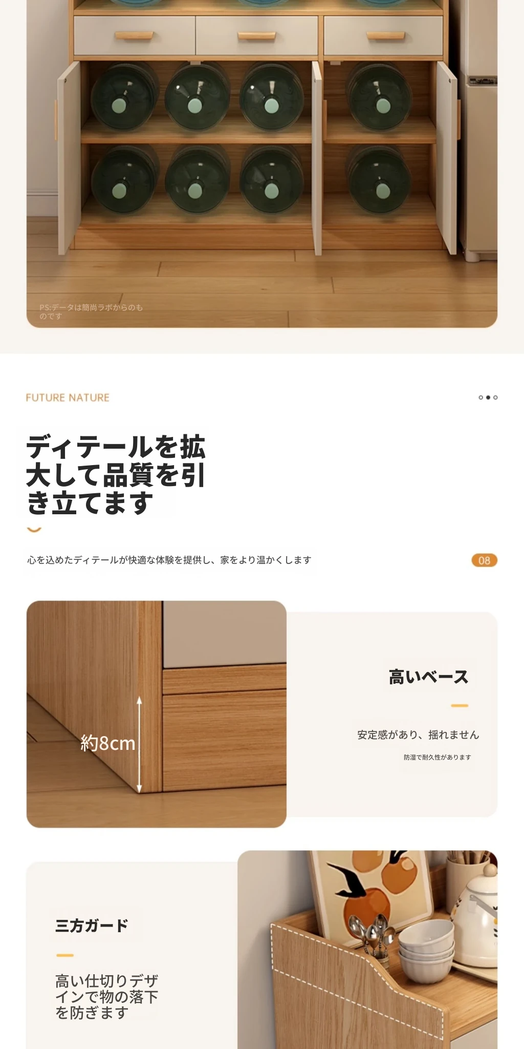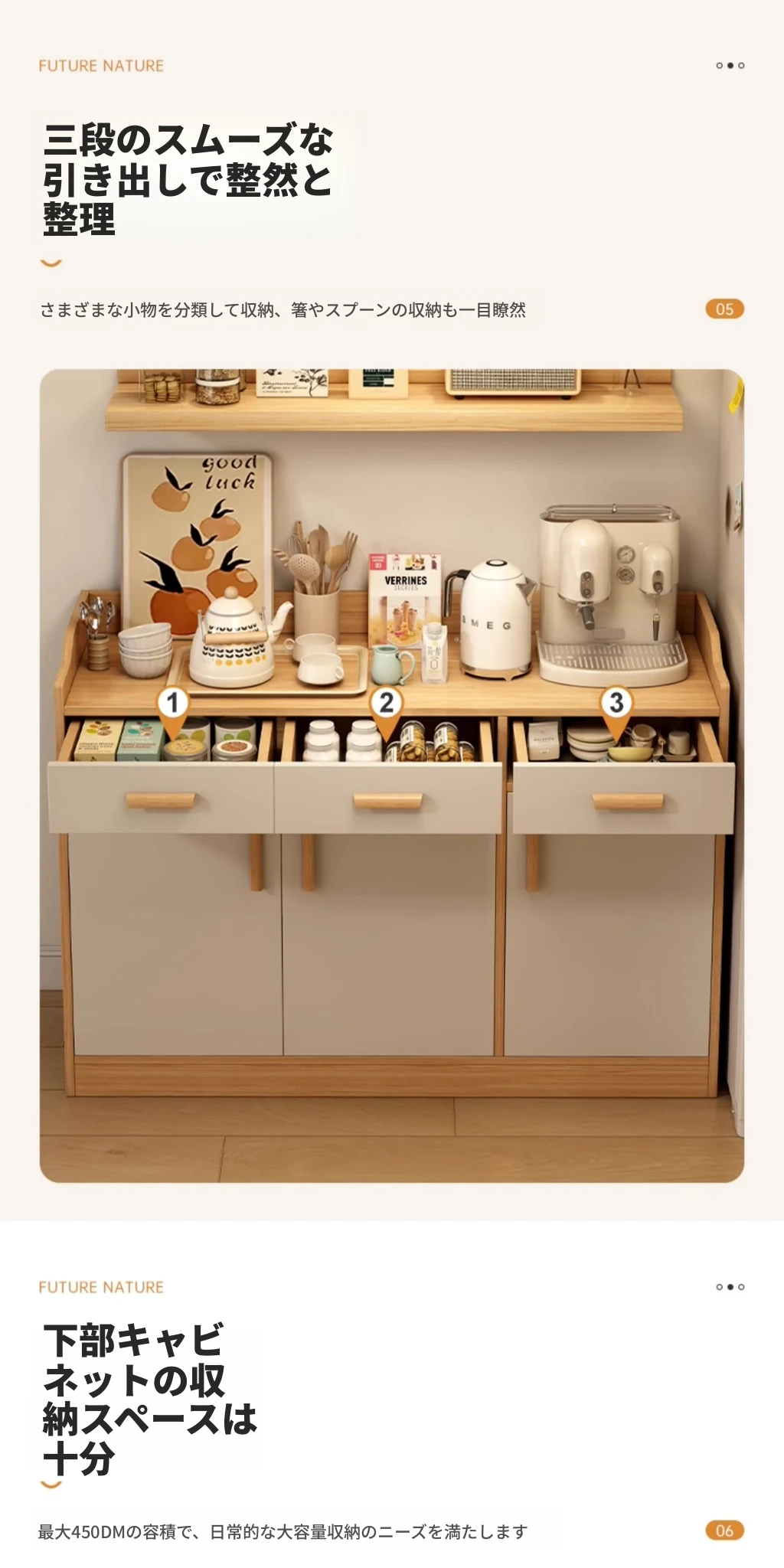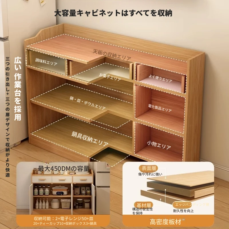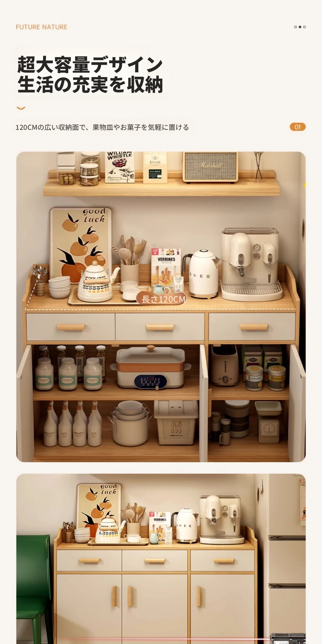 リビングにぴったり!おしゃれな茶水キャビネット - 家庭用収納、キッチンやダイニングエリアに最適な壁掛け一体型収納キャビネット。スッキリ整理整頓で、毎日の生活をもっと便利に!