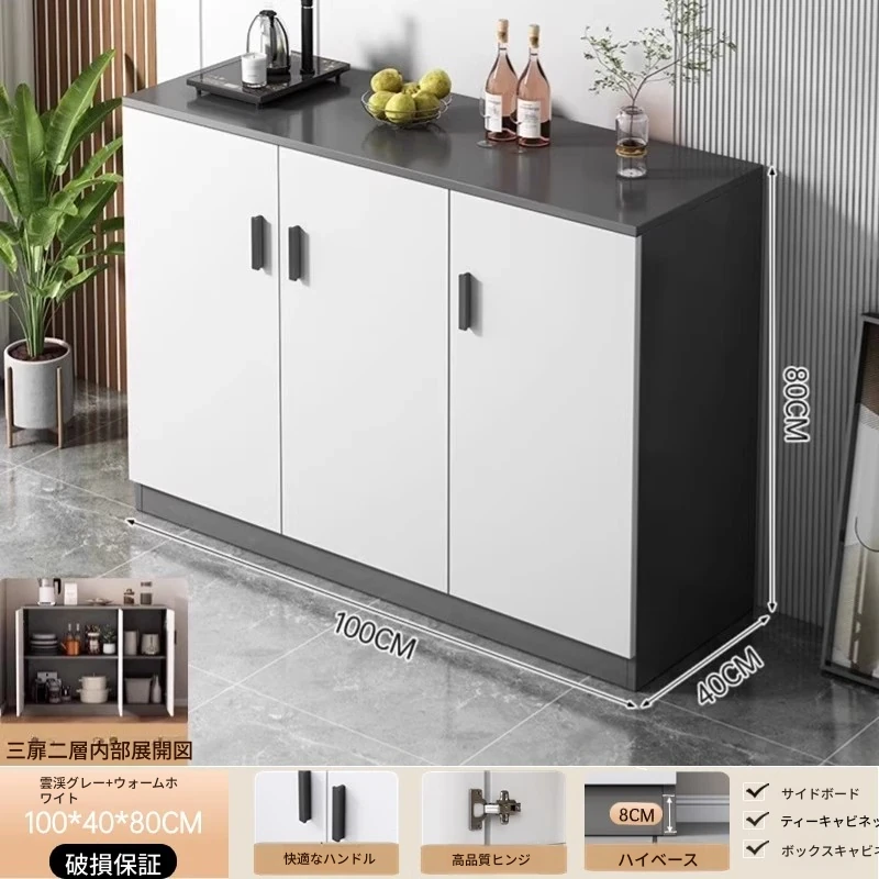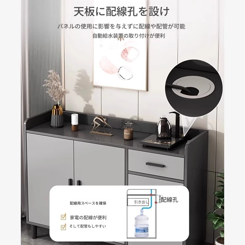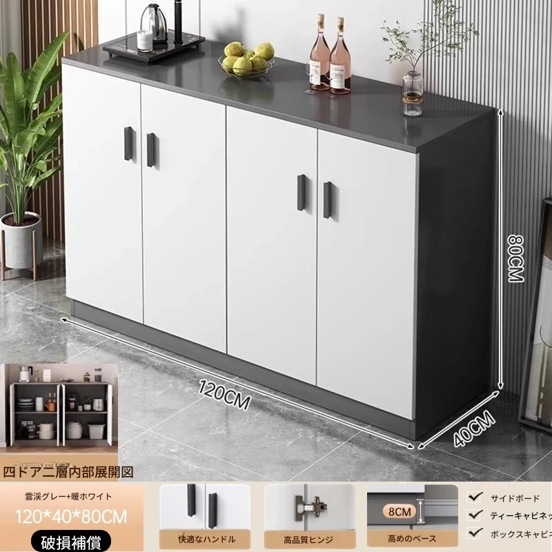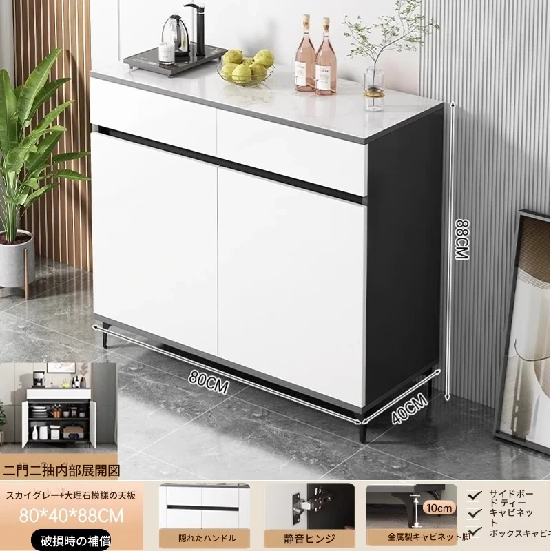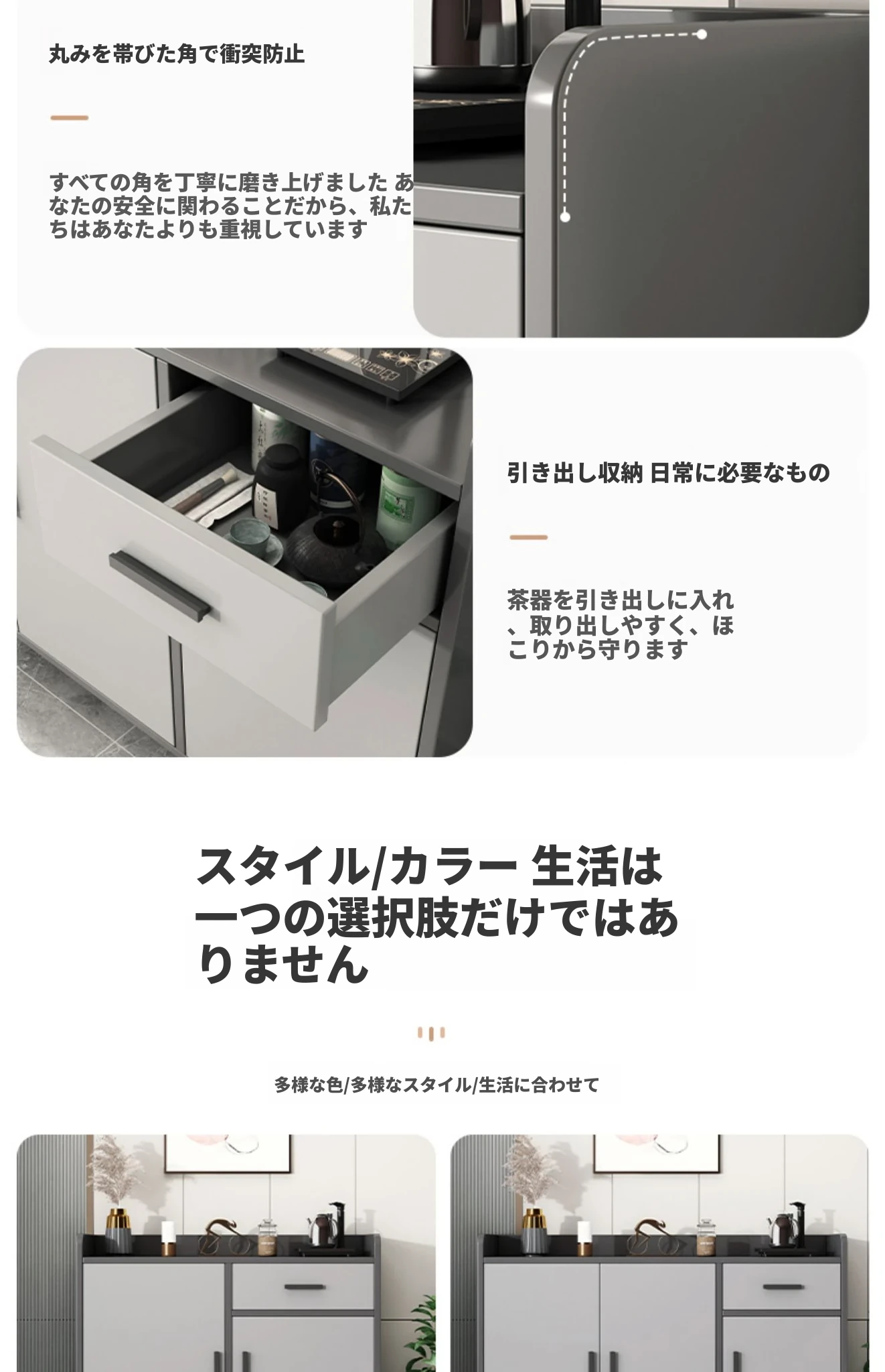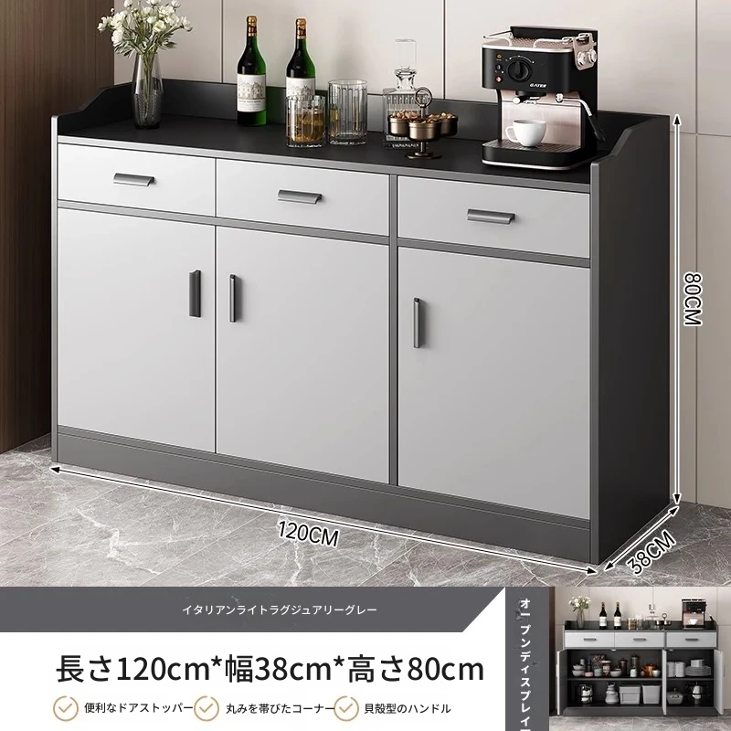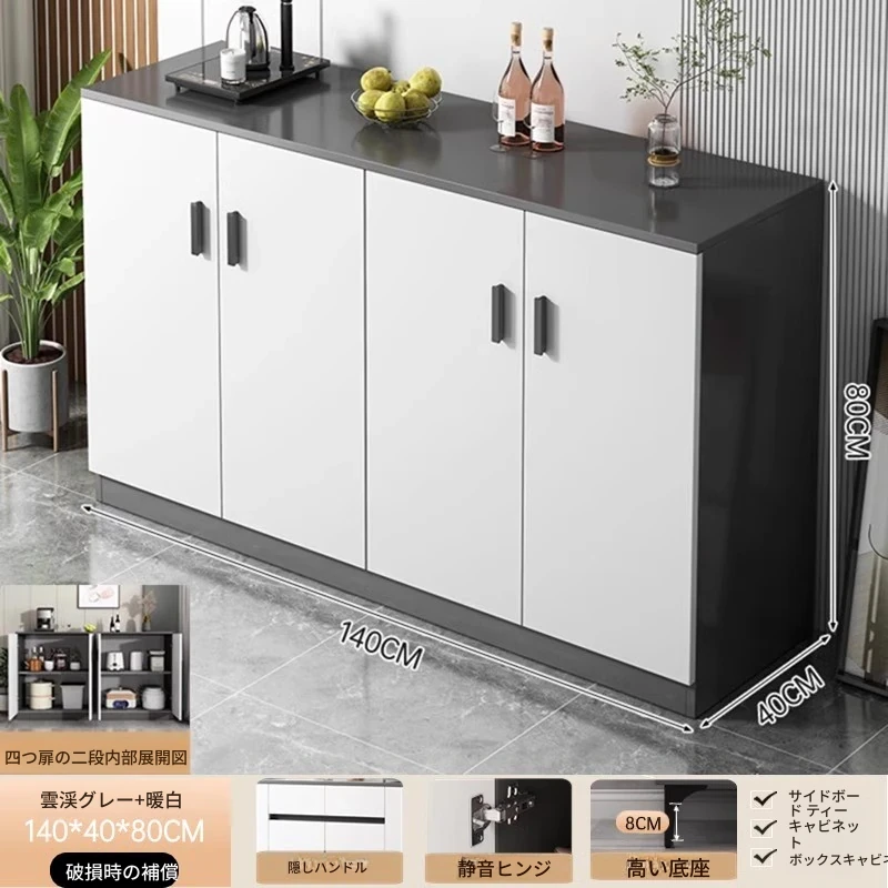 壁付け一体型収納キャビネット - 家庭用キッチンに最適なティーキャビネット!リビングルームにもぴったりな収納力抜群のサイドボードで、すっきりとした空間を演出します。