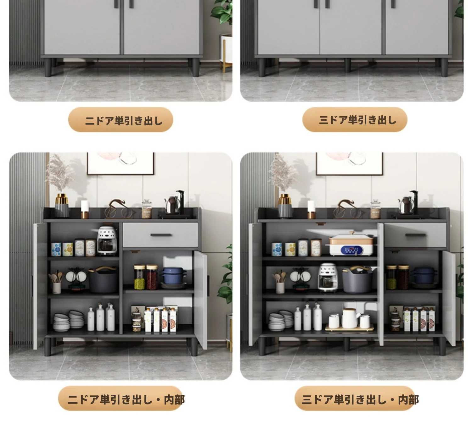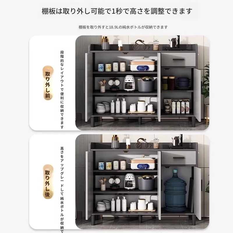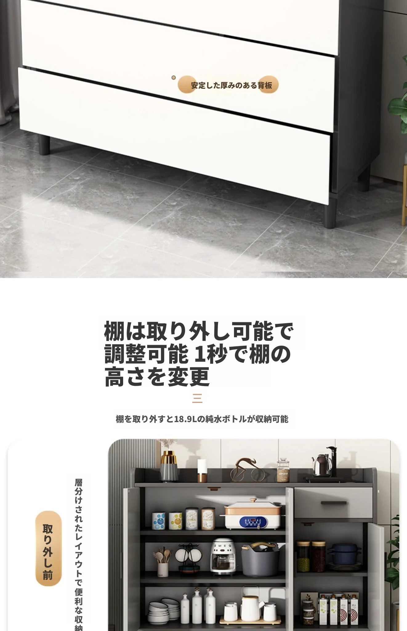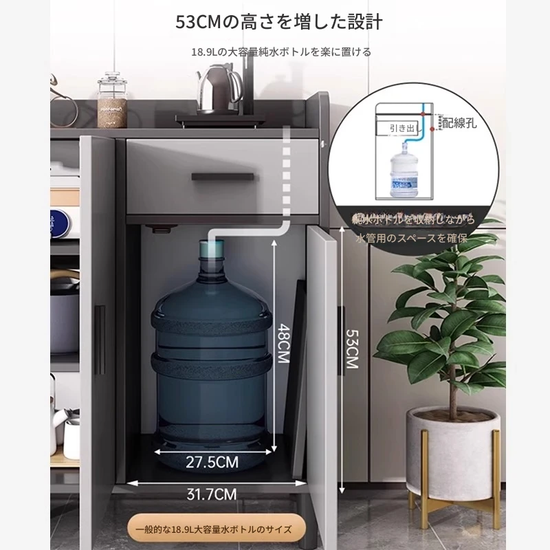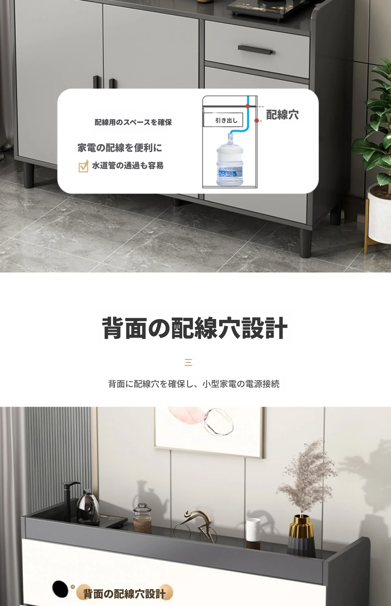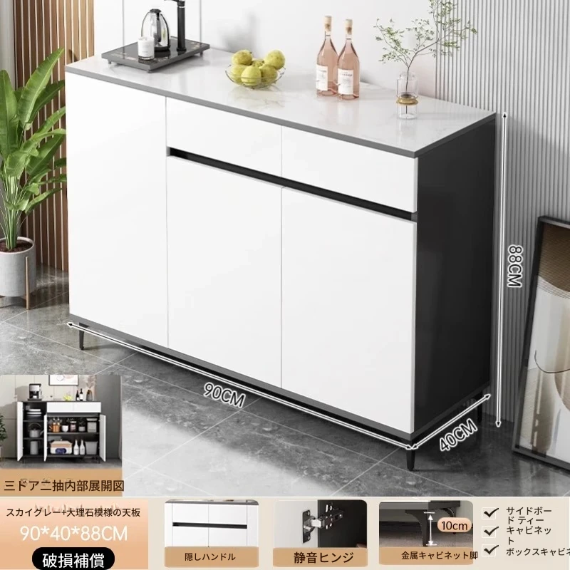 壁付け一体型収納キャビネット - 家庭用キッチンに最適なティーキャビネット!リビングルームにもぴったりな収納力抜群のサイドボードで、すっきりとした空間を演出します。