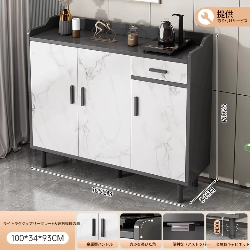 軽奢灰【大理石模様の扉】100*34*93CM 金属ハンドル+黒い金属脚