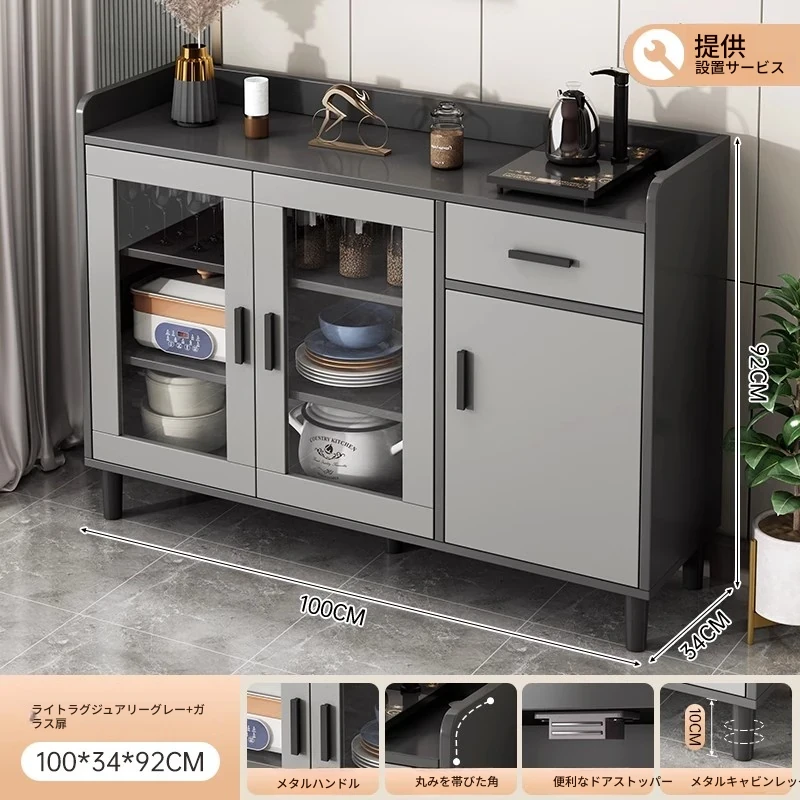❤インストールサービスを提供❤軽奢灰【可視扉】100*34*92CM 金属ハンドル+黒い金属脚