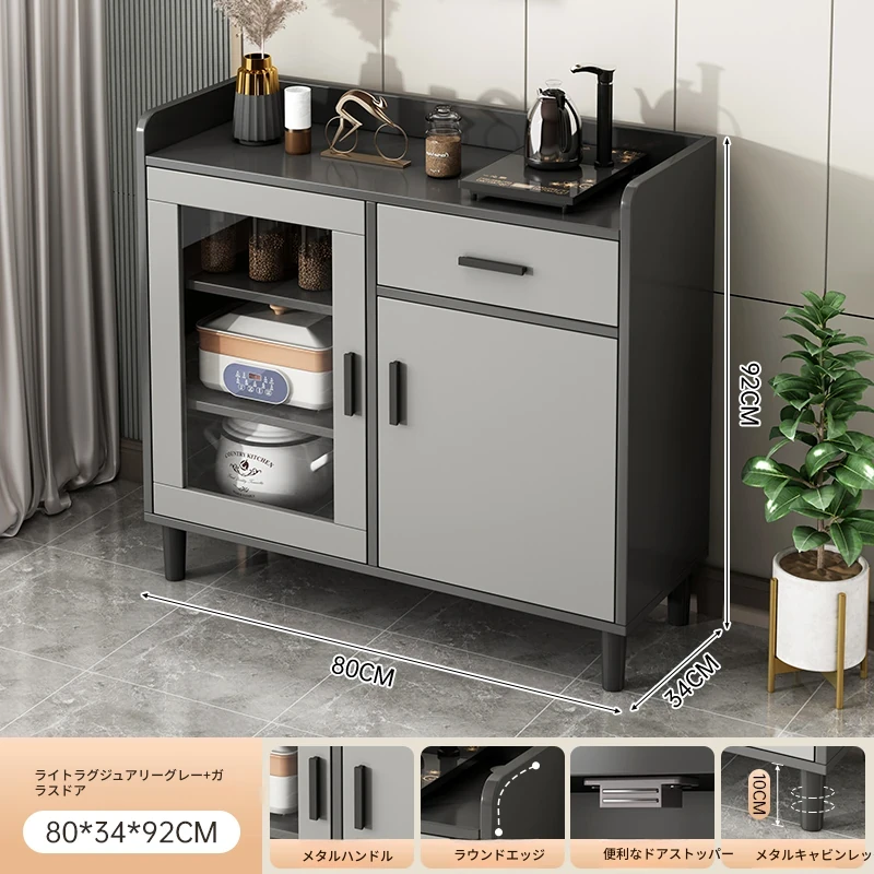 軽奢灰【可視扉】80*34*92CM 金属ハンドル+黒い金属脚