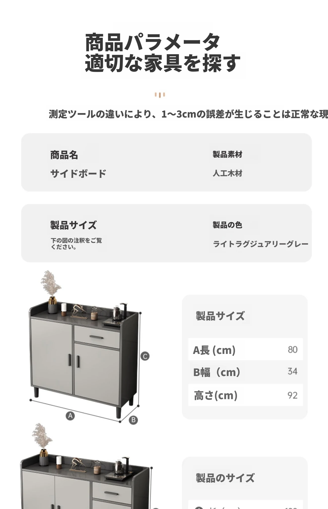 軽奢灰【大理石模様の扉★奥行き拡張】80*40*93CM 金属ハンドル+黒い金属脚