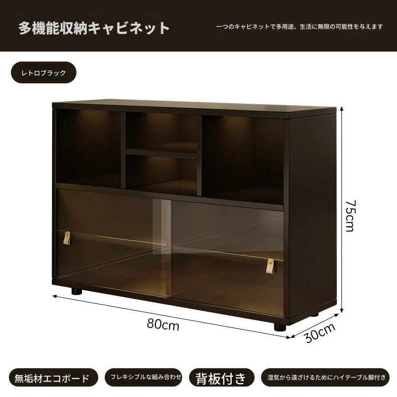 【80cmプッシュプルドア】ウォールナット色⭐80*30*75CM