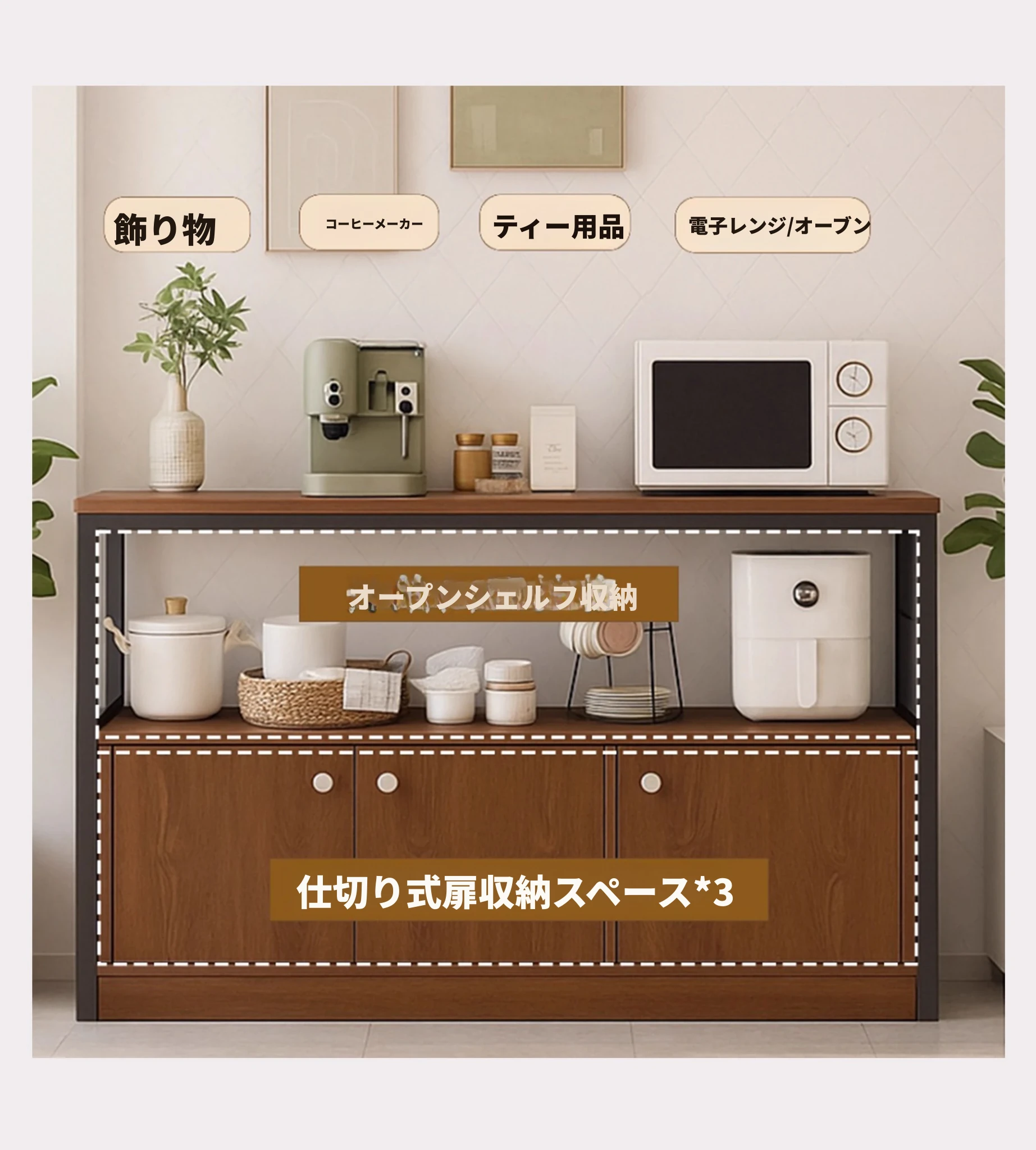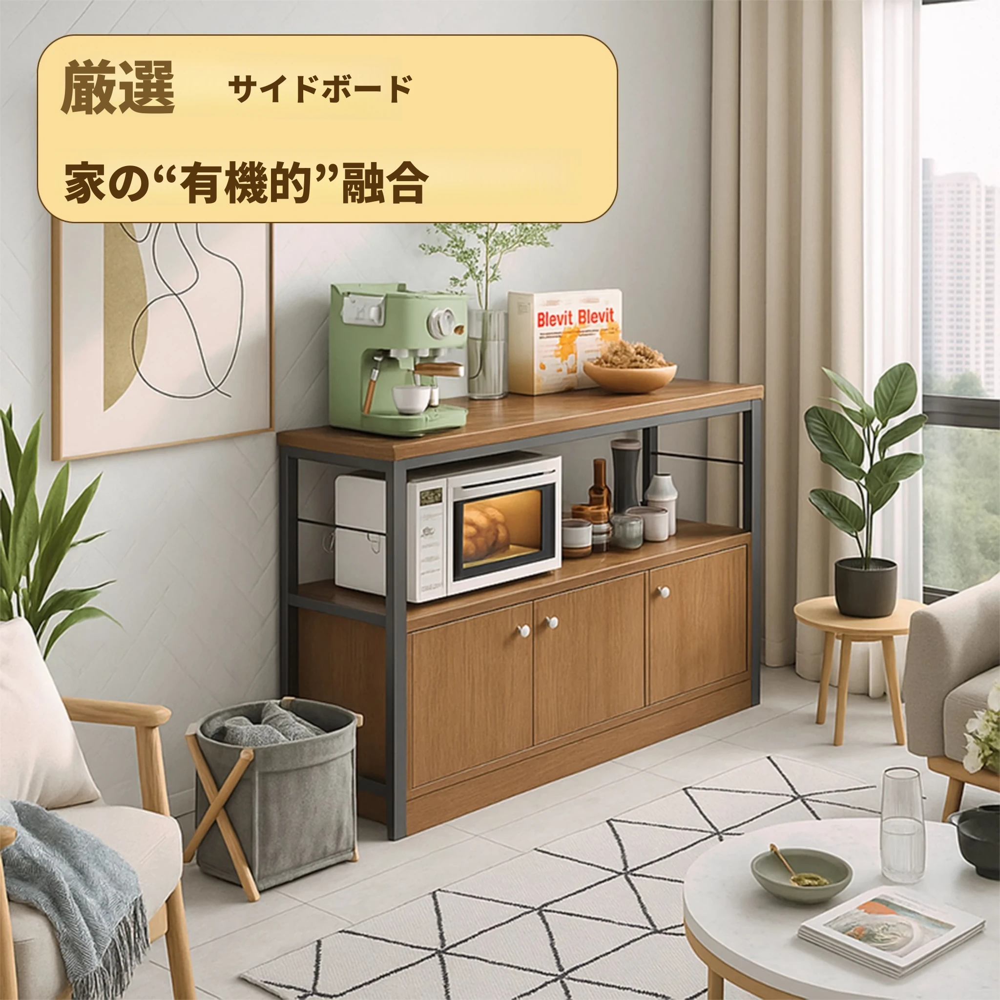 壁にぴったりフィット!スタイリッシュなリビング用サイドボード - コンパクトで収納力抜群のティー&コーヒーキャビネット。雑多なアイテムもすっきり整理できる、オシャレな収納家具です。