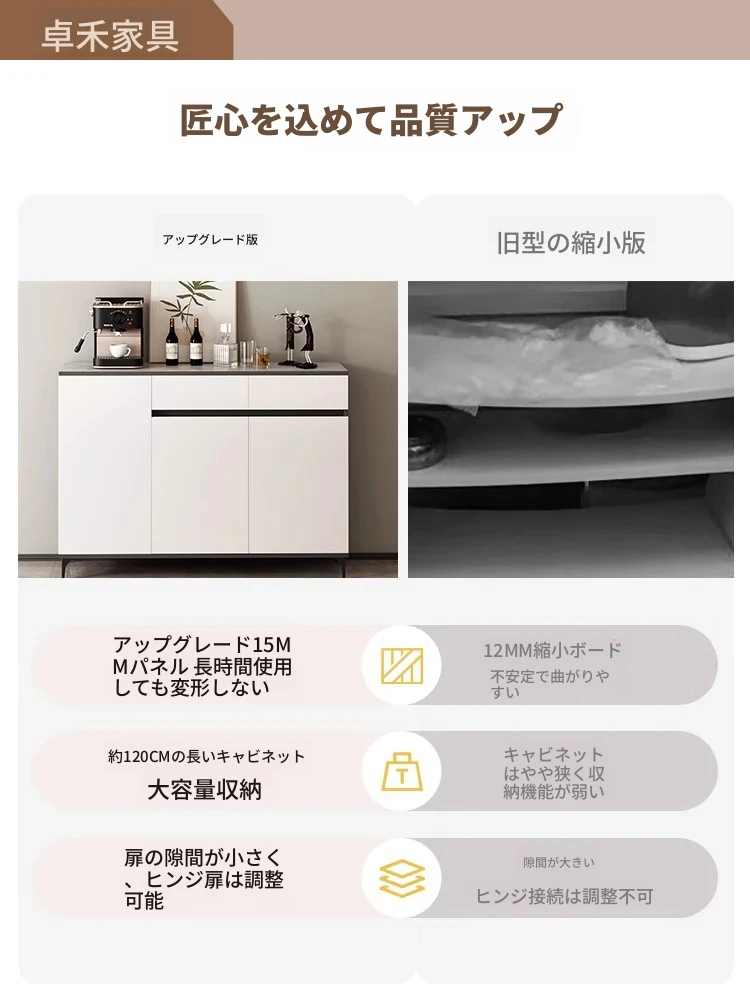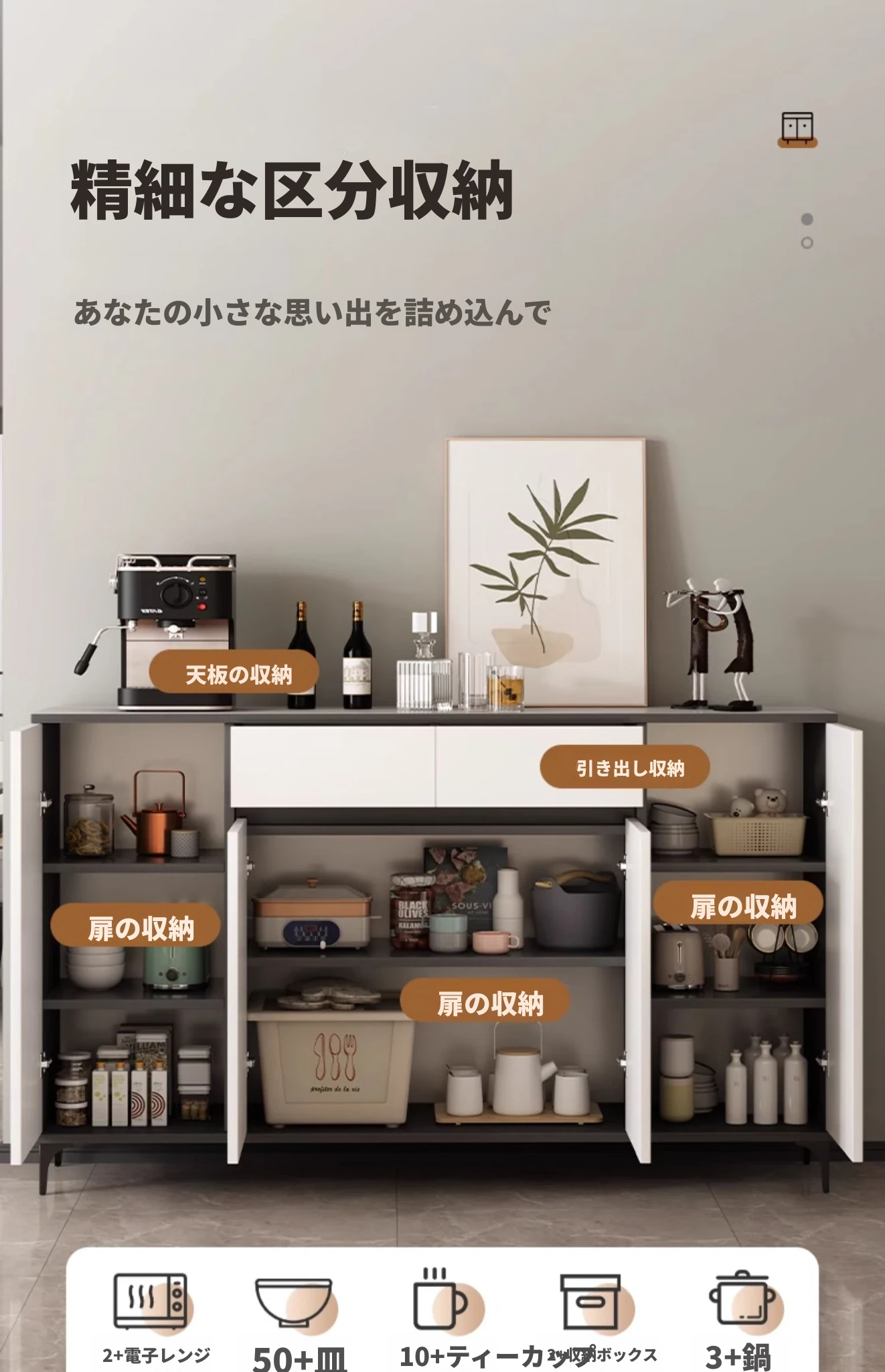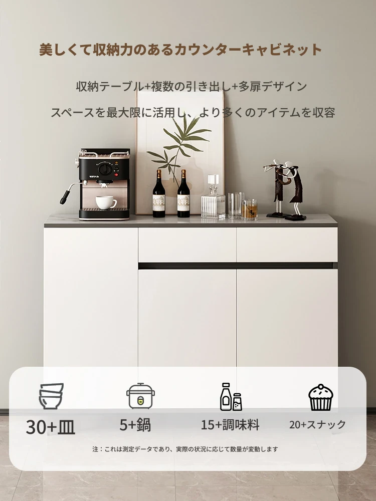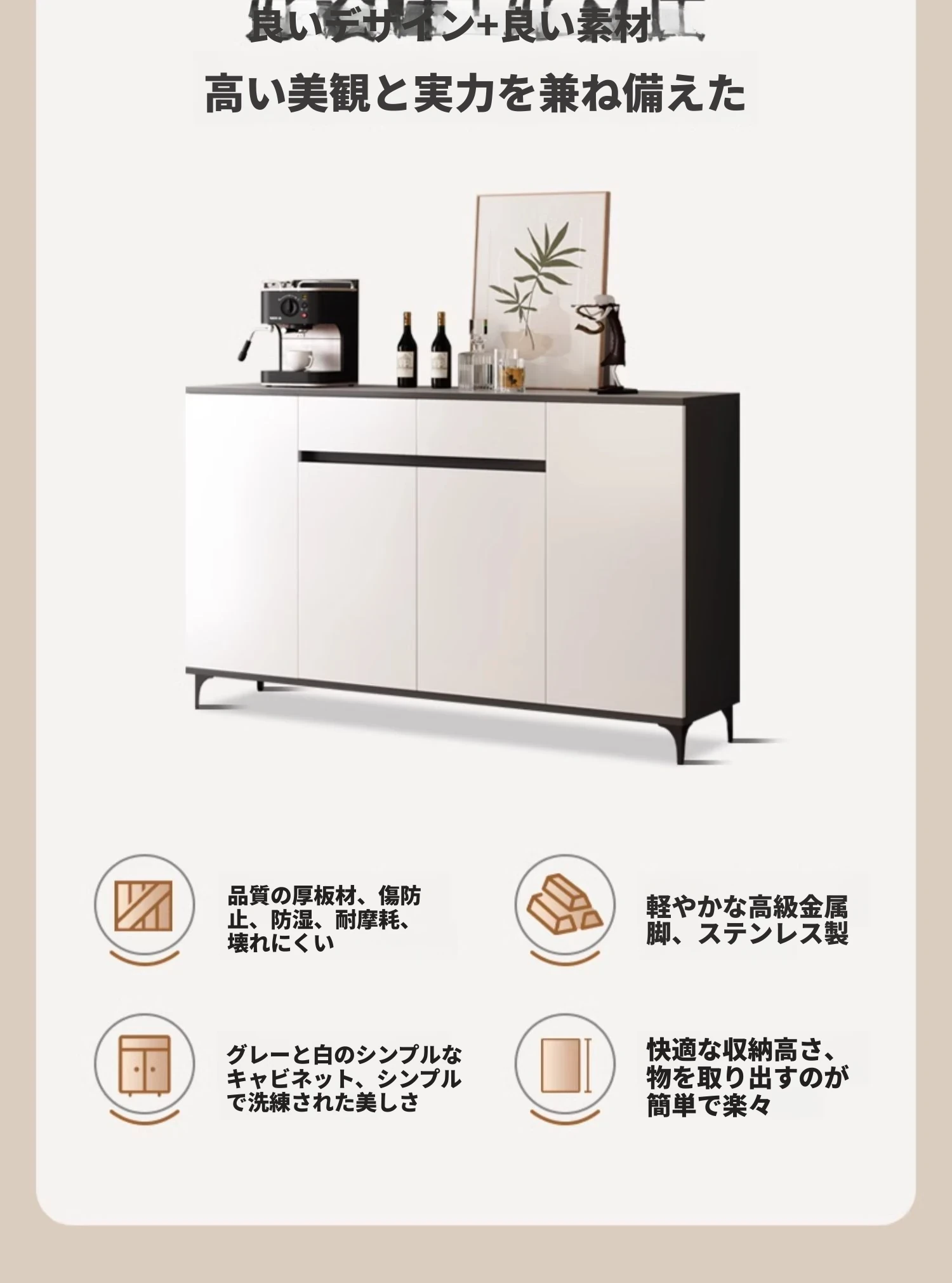 壁にぴったりフィットする茶水・酒収納キャビネット!リビングに最適なスタイリッシュなデザインで、コーヒーメーカーやお酒をすっきり整理。おしゃれな空間を演出し、便利さもアップ!