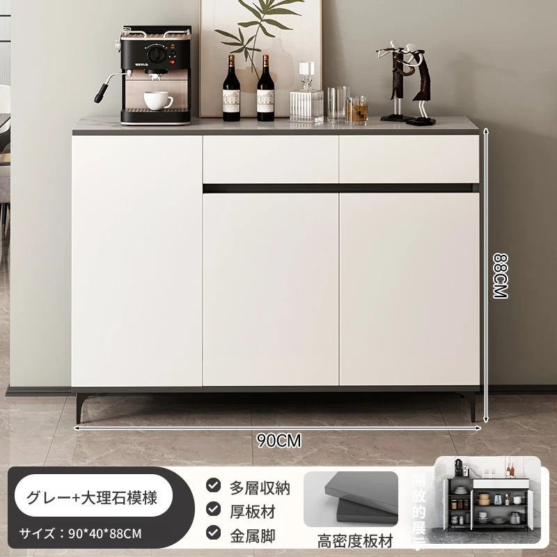 アップグレード版【HDF板材❤️三門二段引出し】スカイグレー90*40*88cm