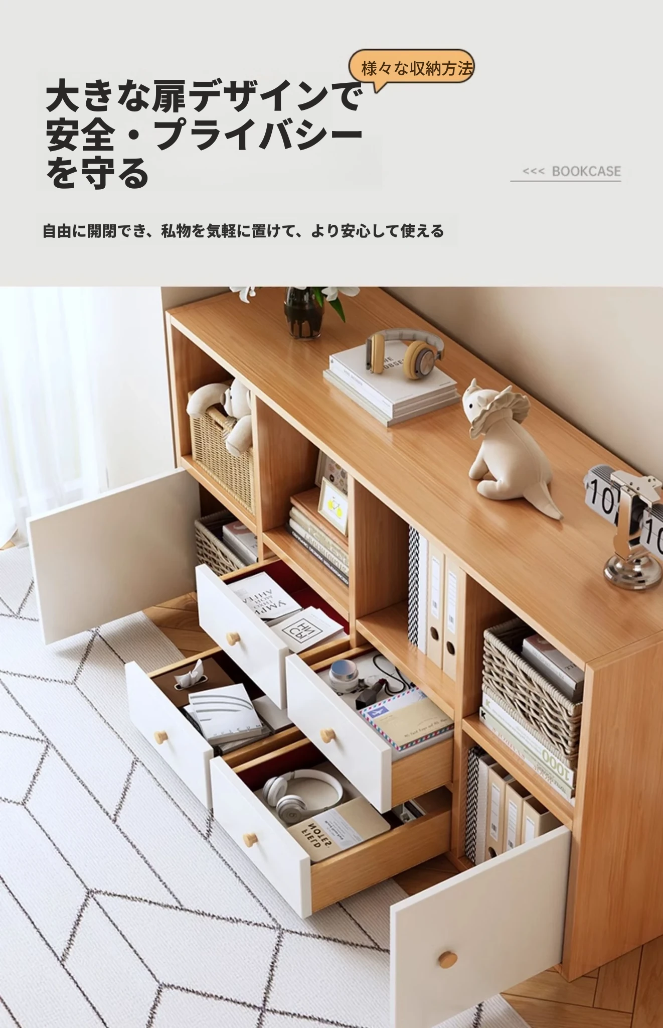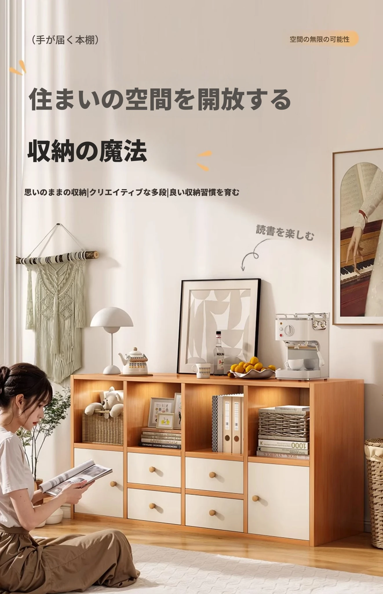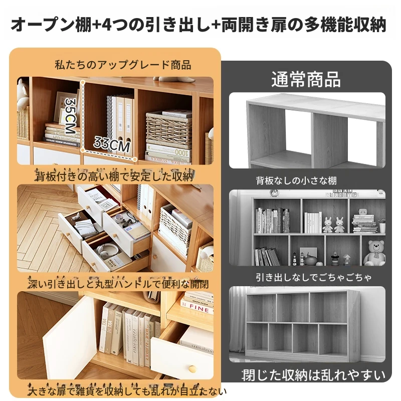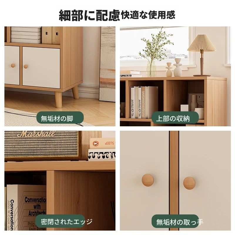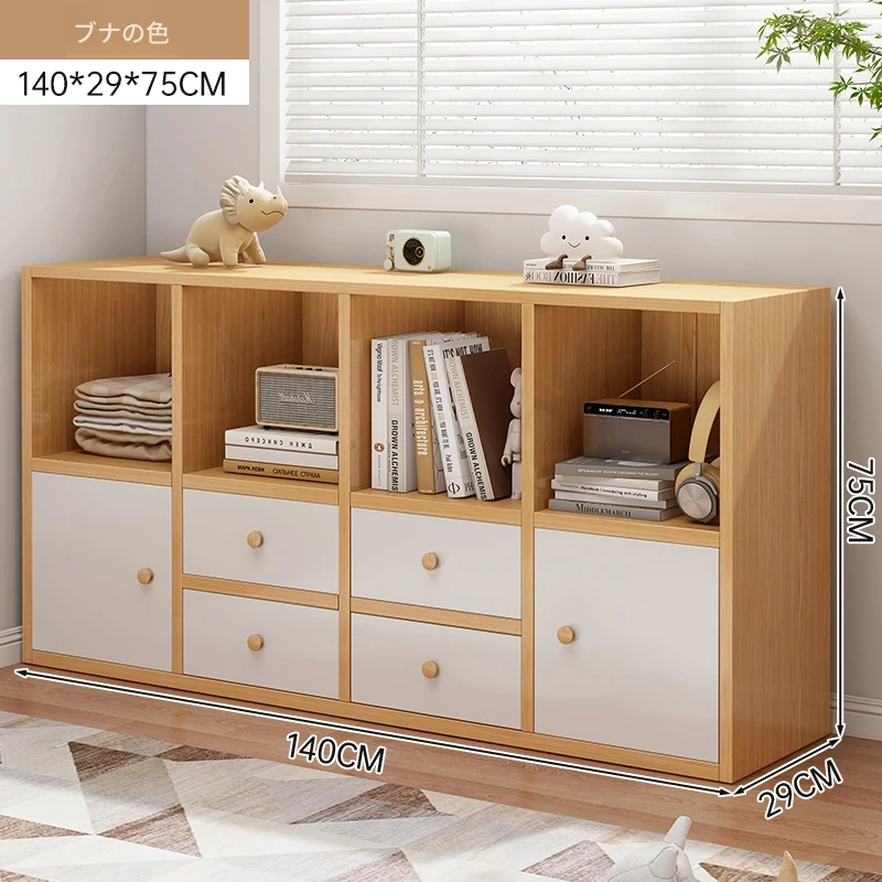 【二扉四引き出しタイプ⭐高密度板】ナチュラルウッド色140*29*75CM