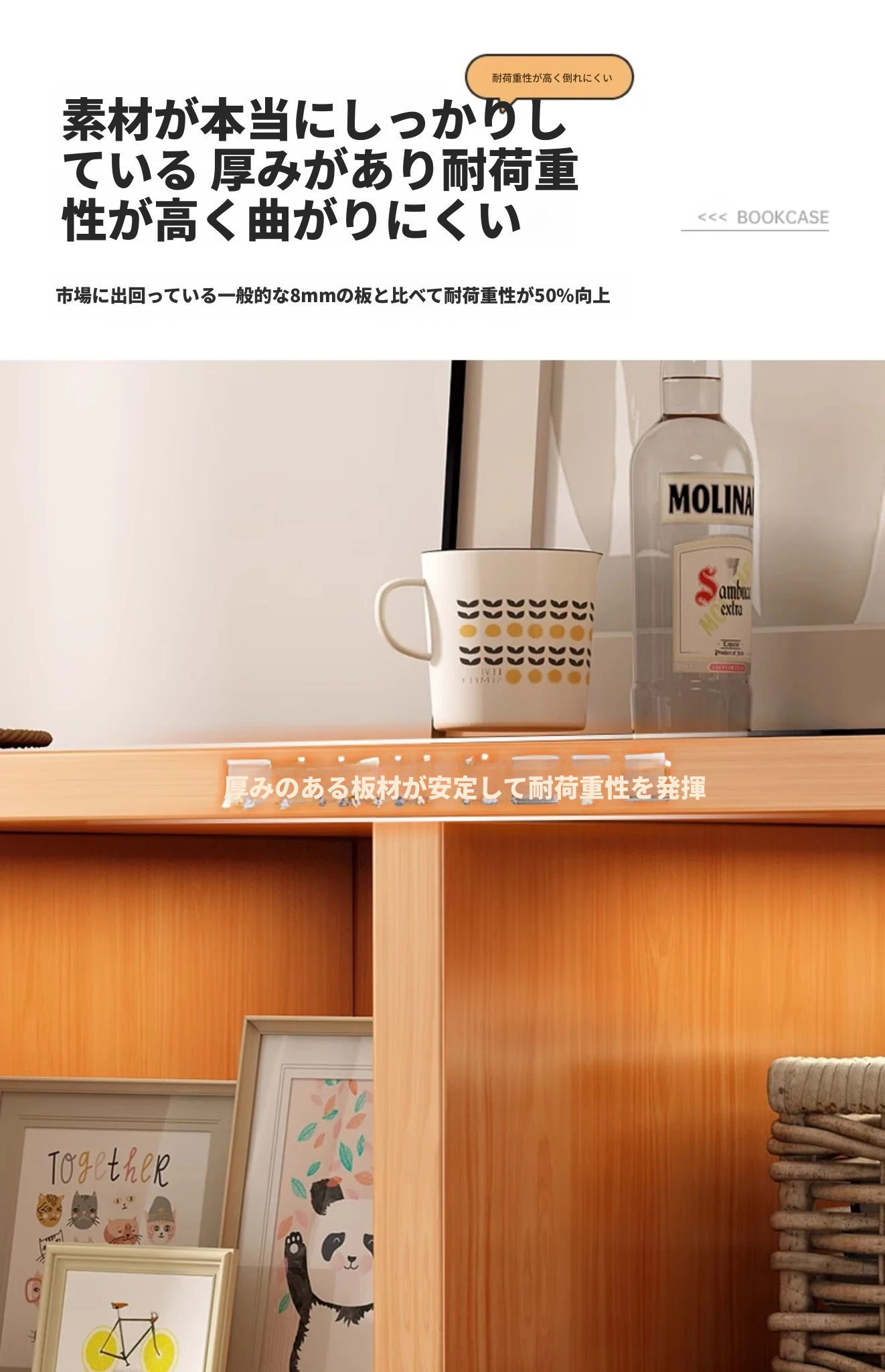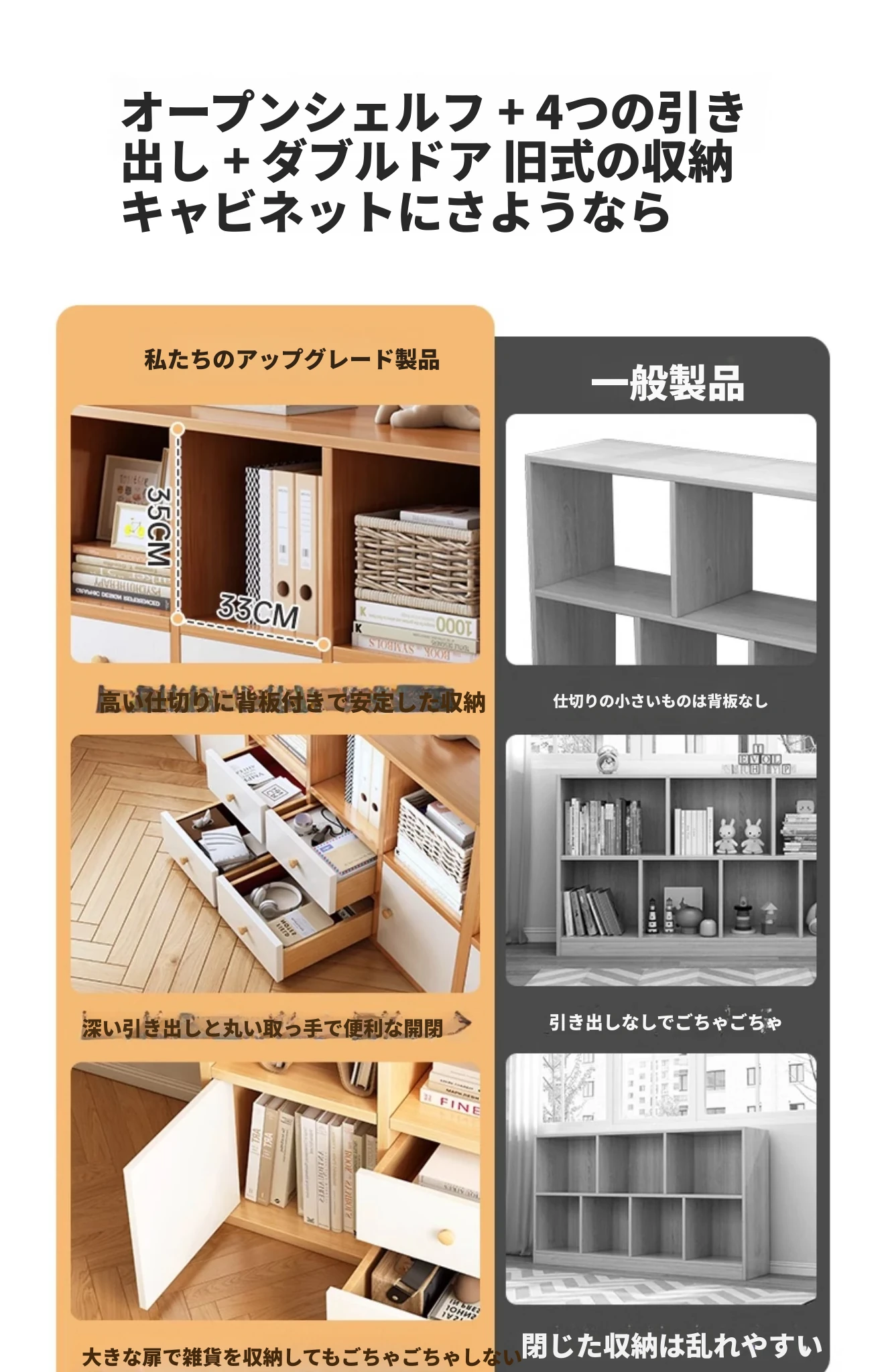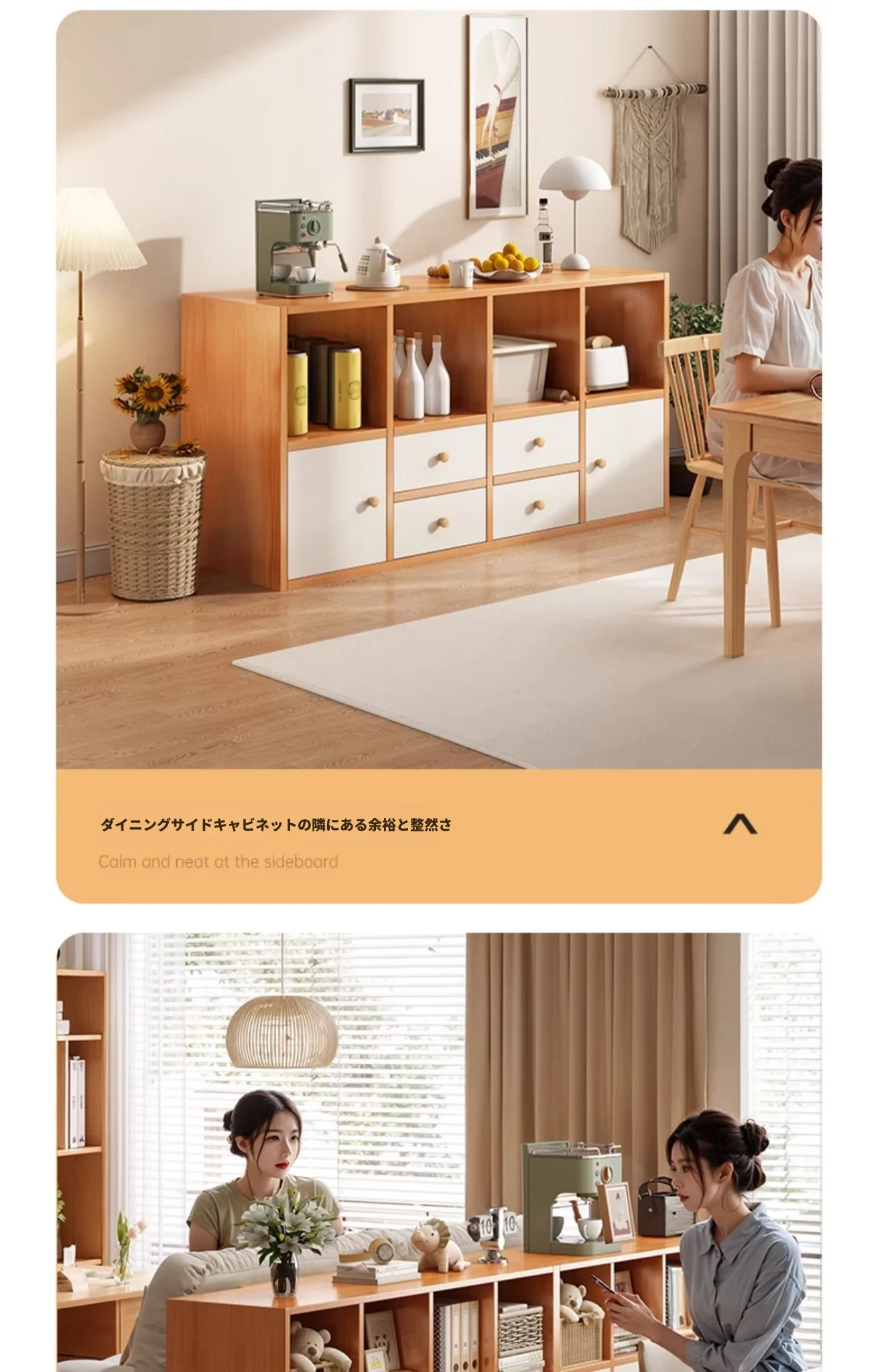【二扉四引き出しタイプ⭐高密度板】ナチュラルウッド色140*29*75CM