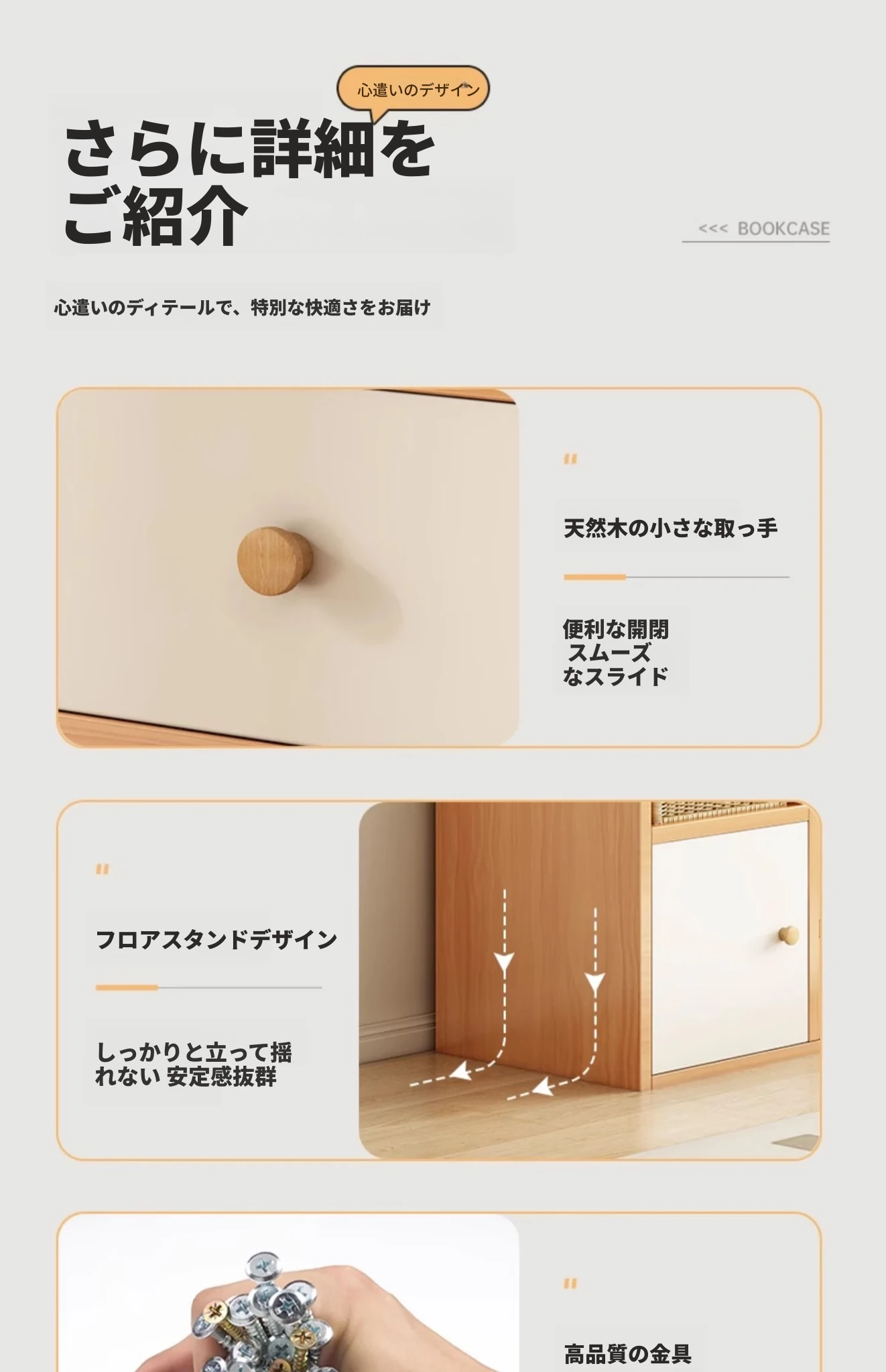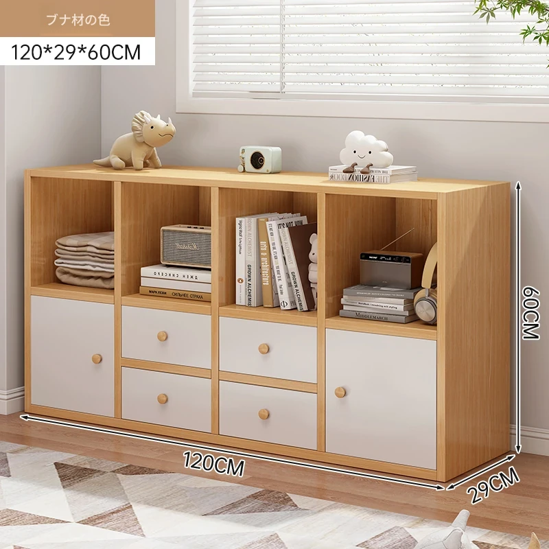 【二扉四引き出しタイプ⭐高密度板】ナチュラルウッド色120*29*60CM