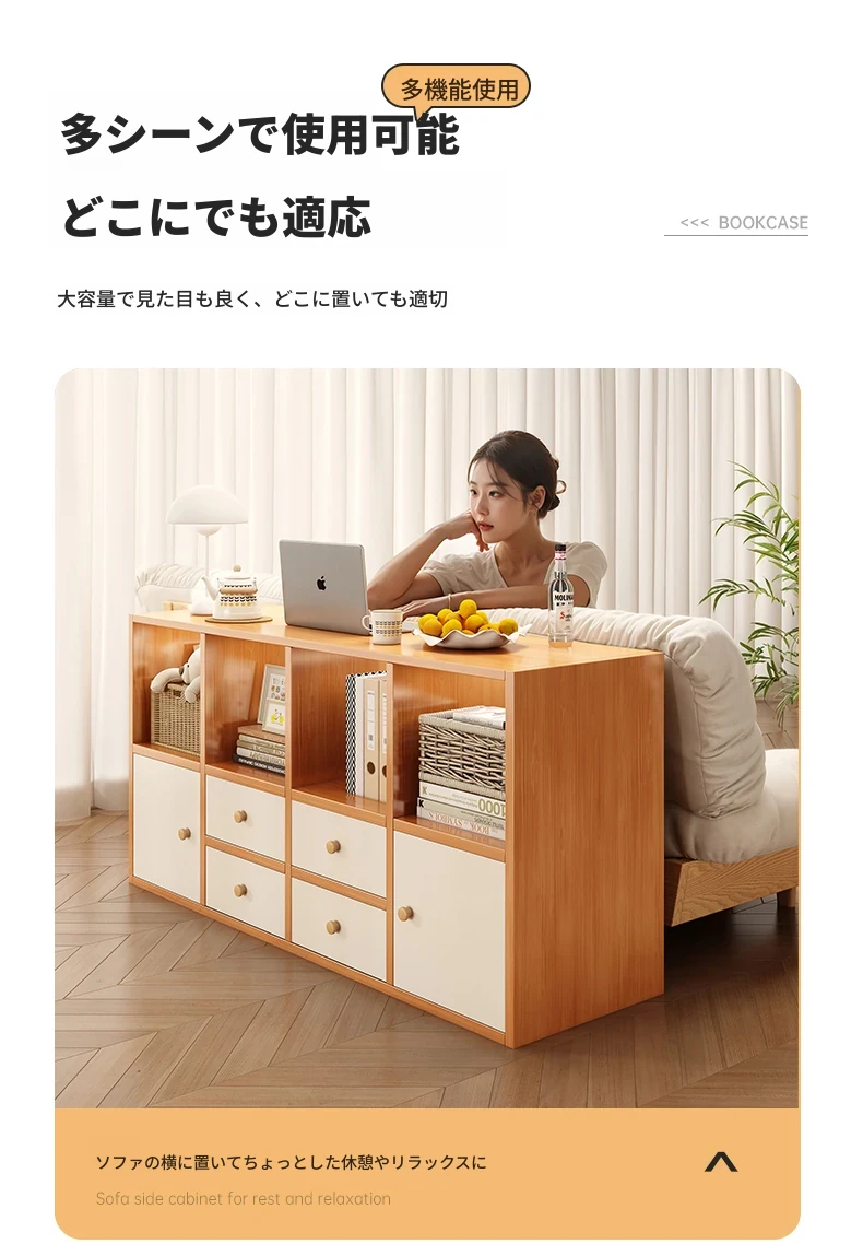 おしゃれなチェック柄のソファサイドキャビネット!収納力抜群の家用ディスプレイキャビネットで、リビングの間仕切りにも最適。8つの収納スペースで学生の本もすっきり整理できる、機能的でスタイリッシュなアイテムです!