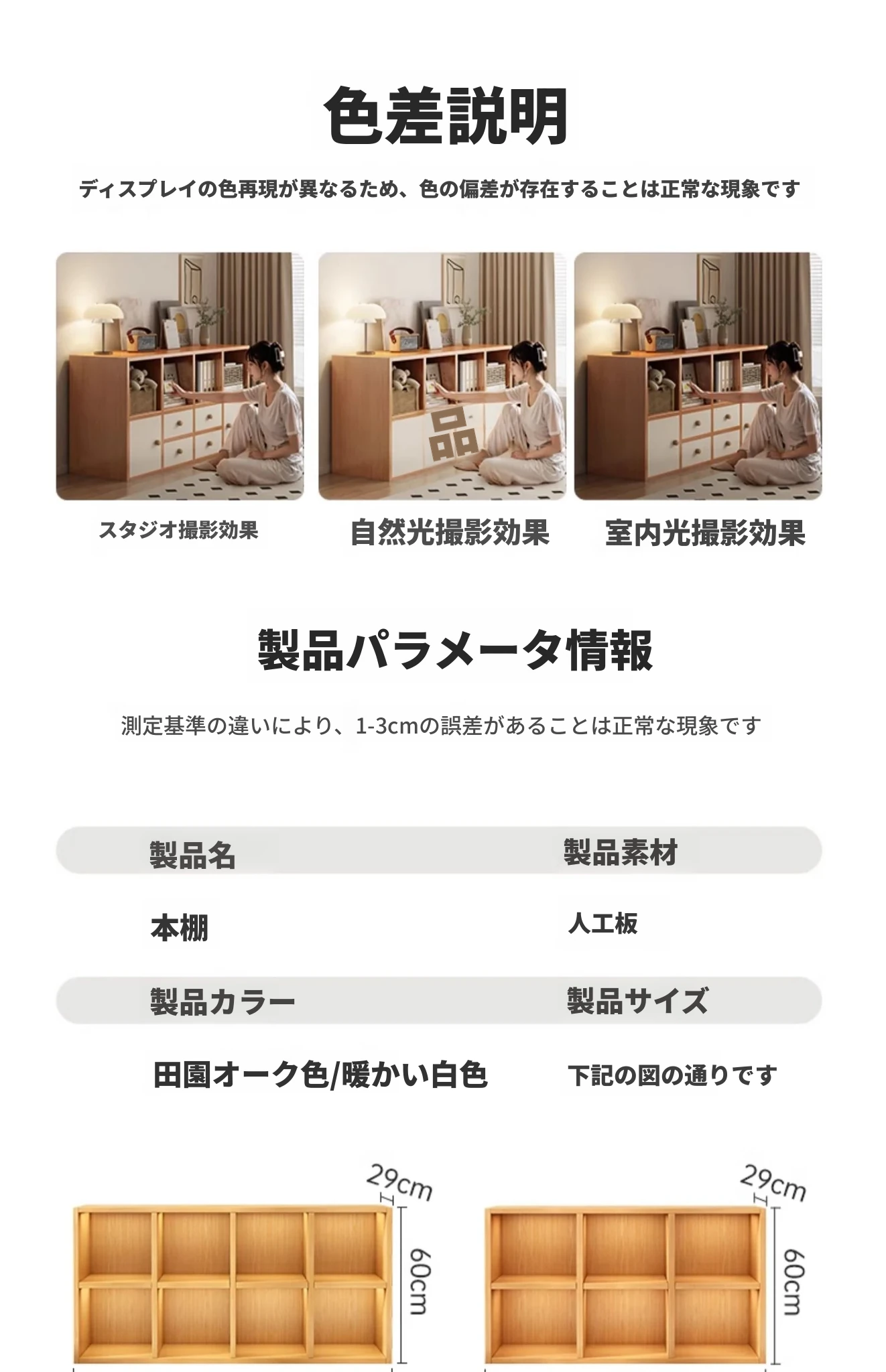 【4格タイプ 品質密度板】ナチュラルウッド色60*29*60cm