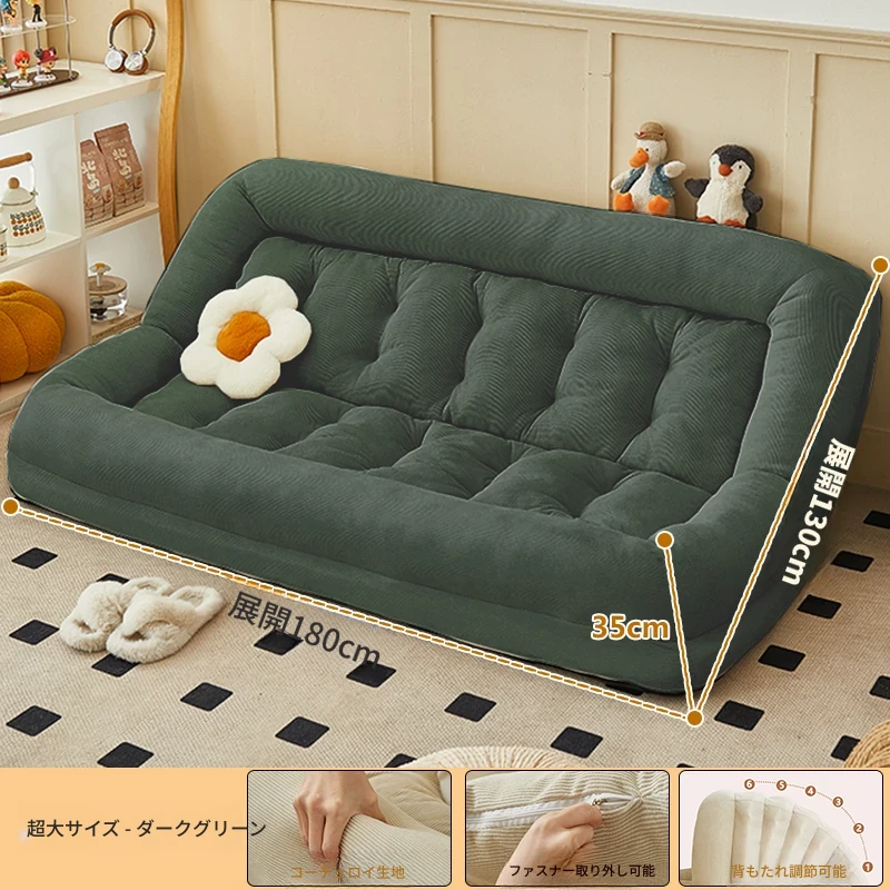 独立内胆ダブルジャイアントベッド【展開180*130cm】肌触りの良いコーデュロイダークグリーン