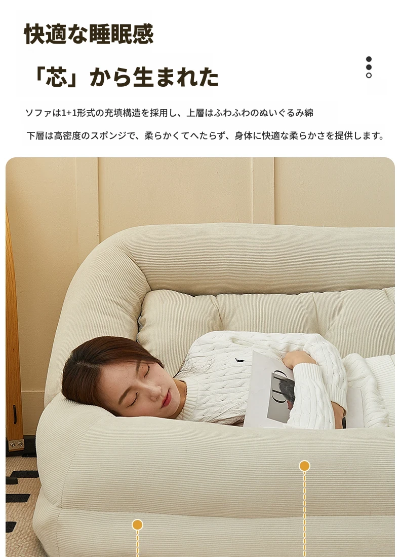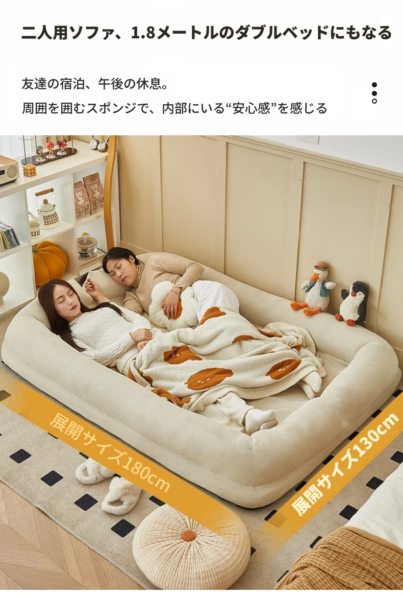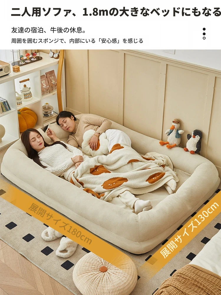 独立内胆ダブルジャイアントベッド【展開180*130cm】肌触りの良いコーデュロイ米色