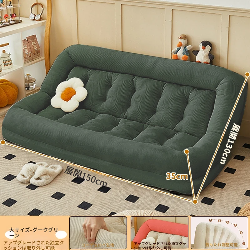 独立内胆ダブルラージベッド【展開150*130cm】肌触りの良いコーデュロイダークグリーン