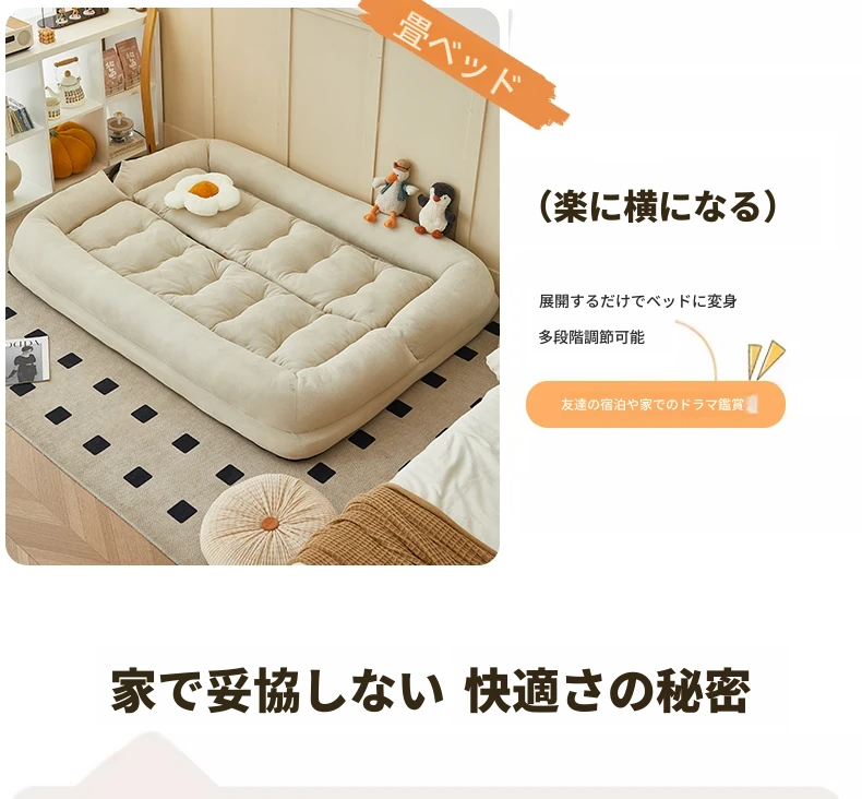 リラックスソファ:寝転がれる快適な一人用チェア!寝室にも最適な二人用タタミソファ、大型人間用犬の巣としても使える!あなたのくつろぎ空間を演出します。