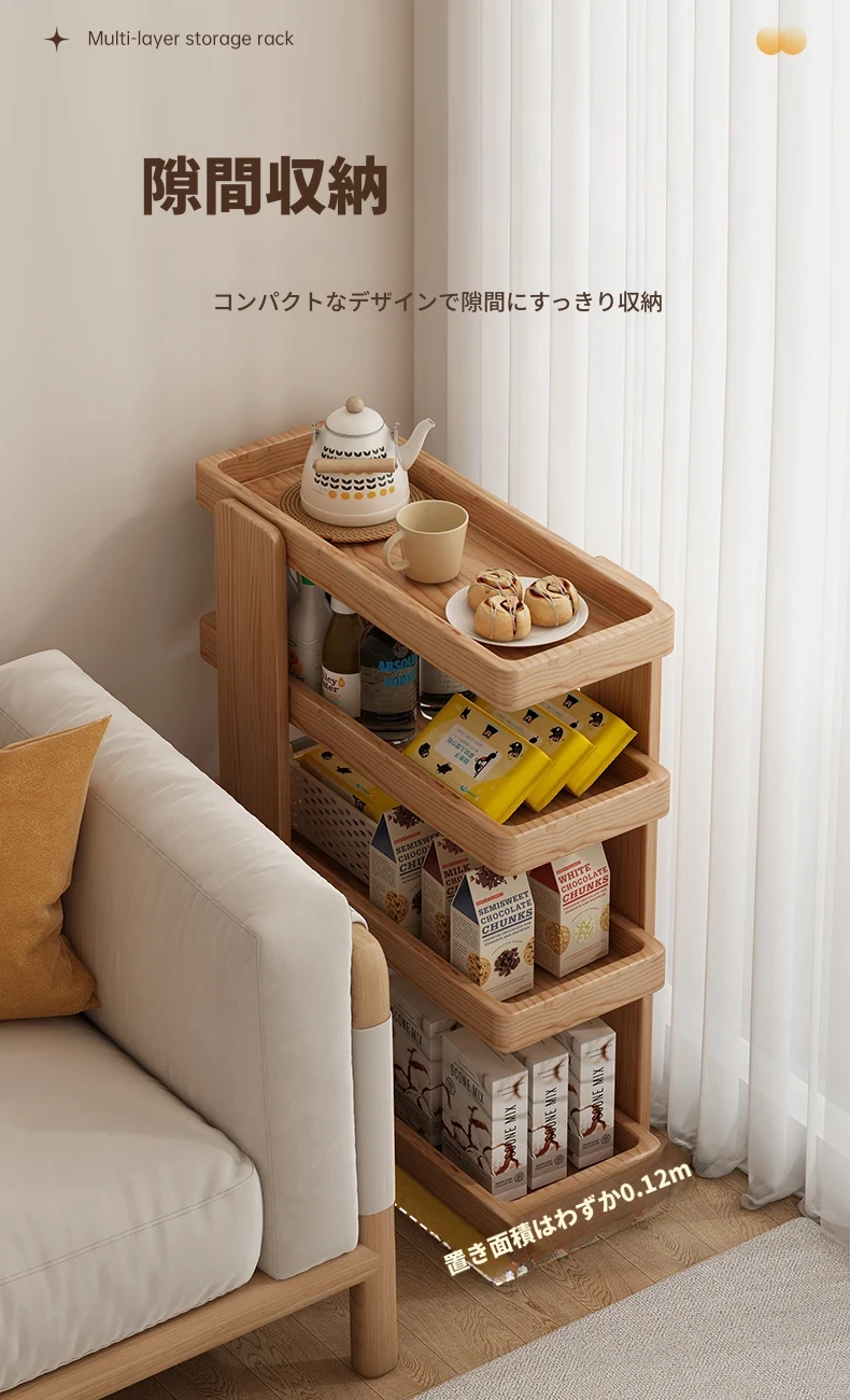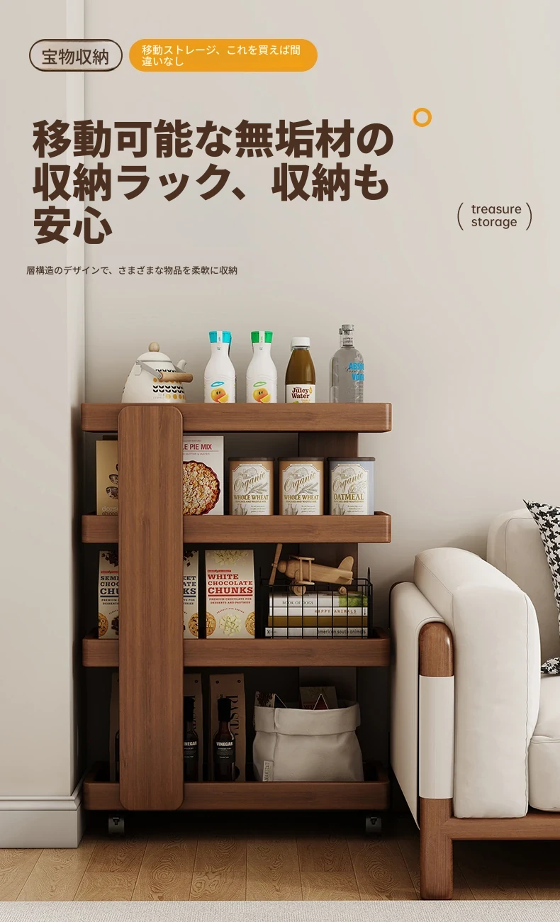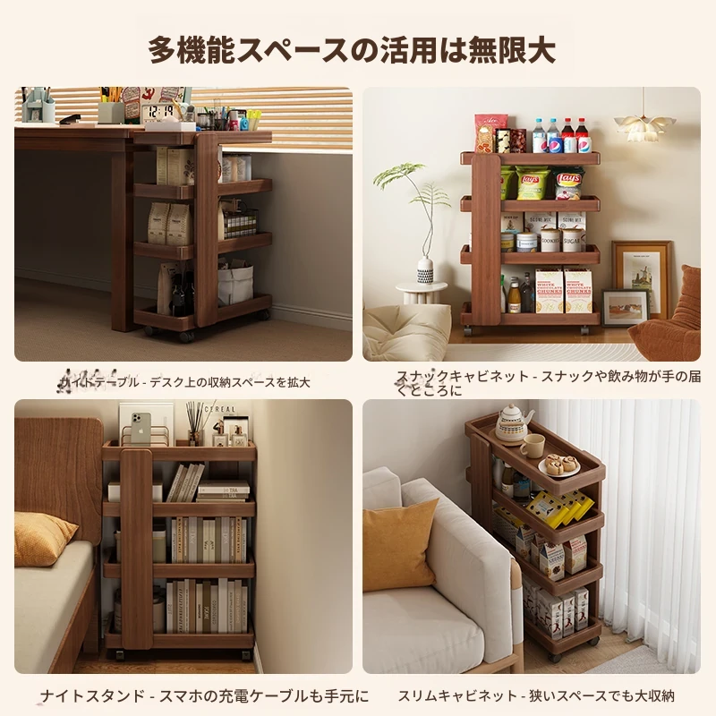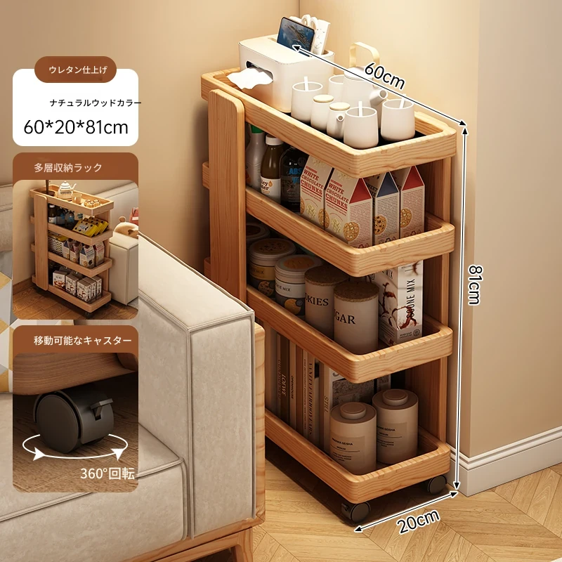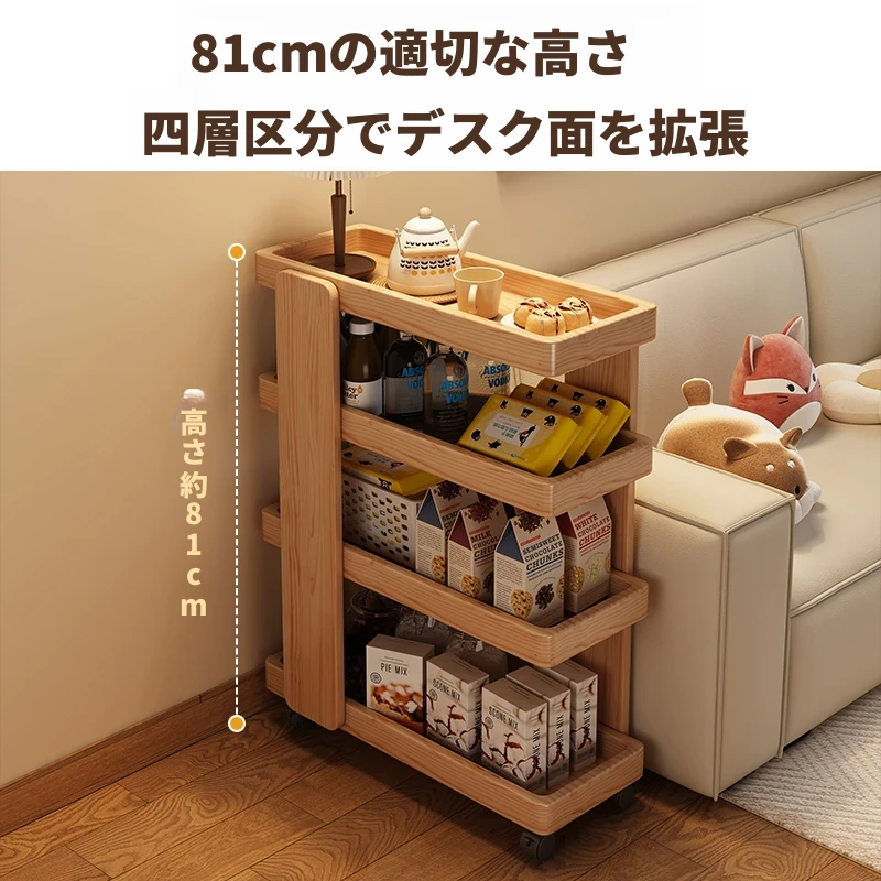 リビングにぴったり!移動式ソファサイド収納カート - スナックや小物をスッキリ整理できるシンプルな壁付けテーブル。使い勝手抜群の便利アイテムで、おしゃれな空間を演出します!