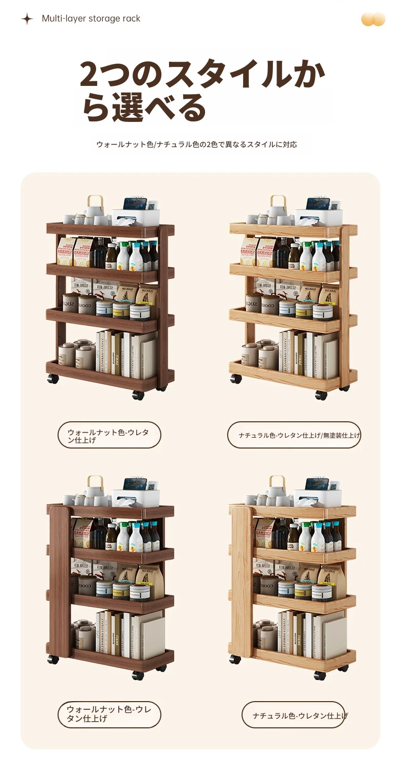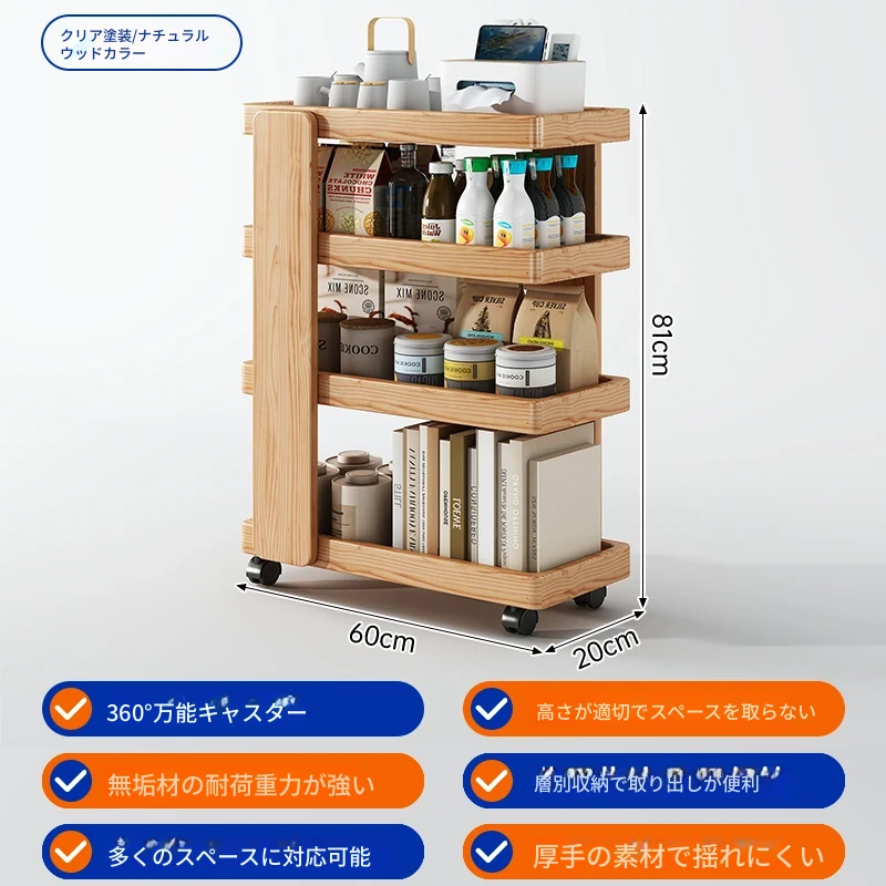 【移動式小型カート☆メイン画像商品】60*20*81cm-ナチュラルカラー-クリア塗装