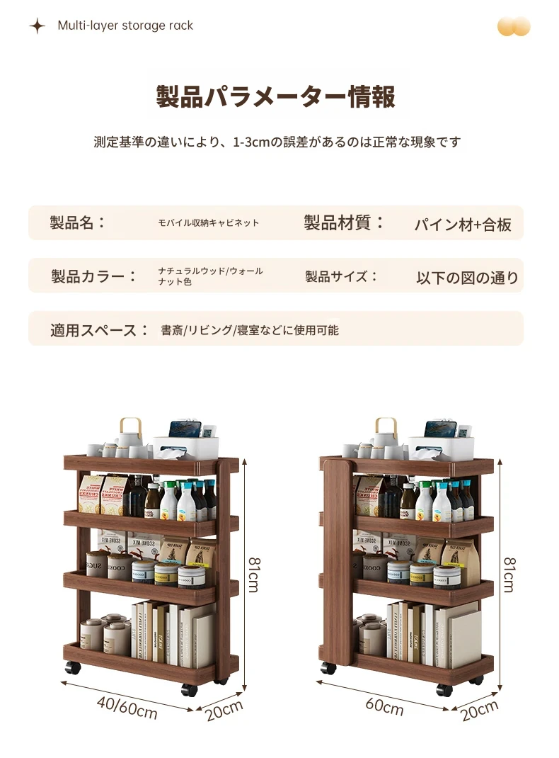 お得商品✨☆【移動式小型カート☆小サイズ】40*20*81cm-ナチュラルカラー-無塗装