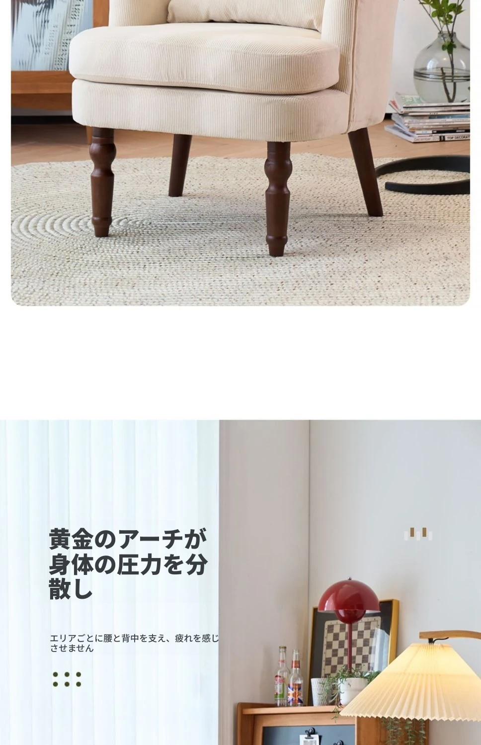 レモンイエローのコーデュロイ一人用+スツール【腰枕付き】
