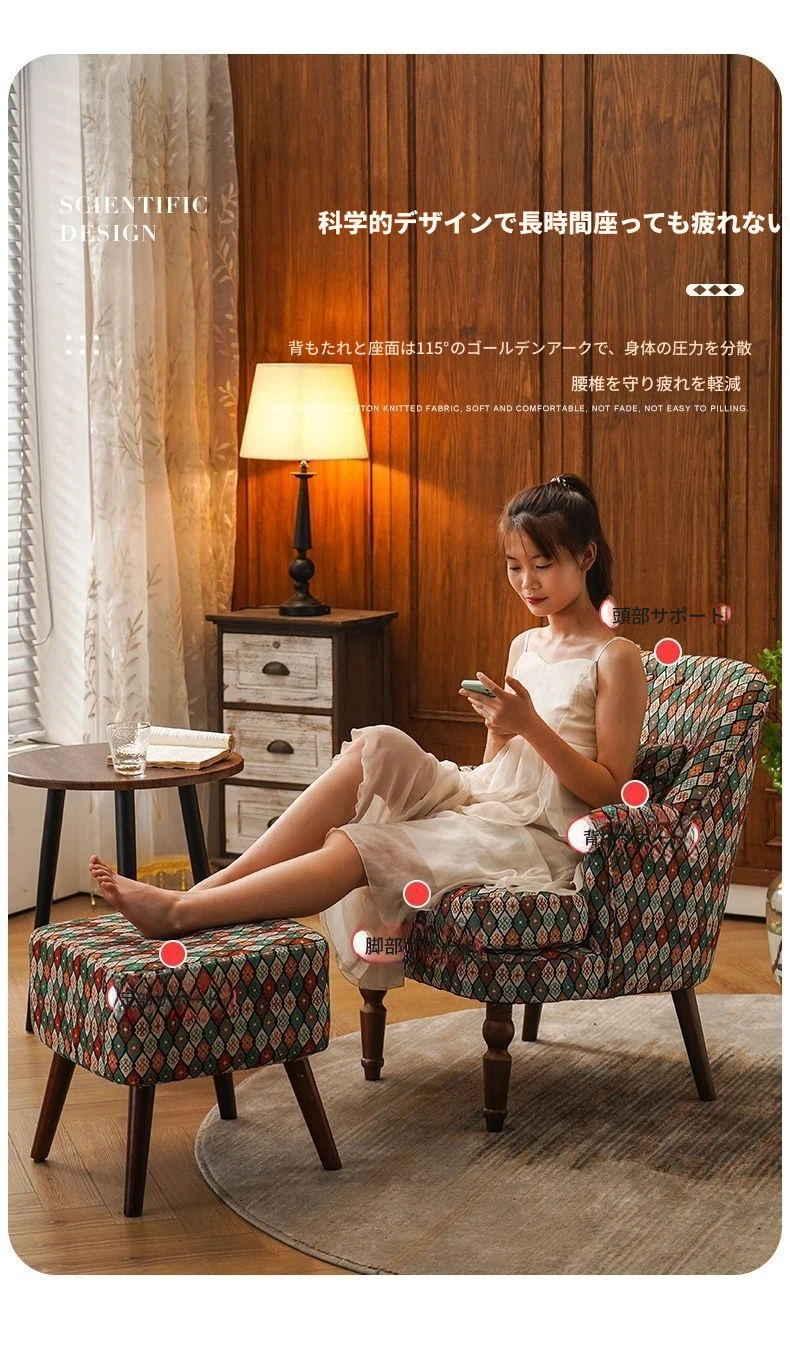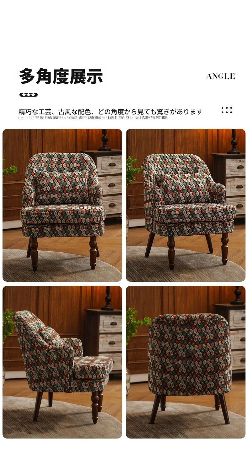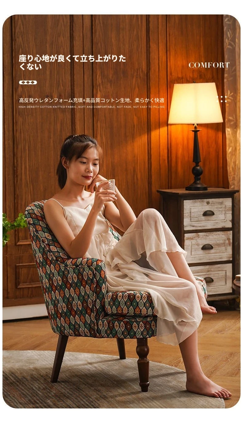 アメリカンスタイルの一人掛けソファ|レトロな欧風デザイン|布製・無垢材使用|小さなサイズで寝室や客間にぴったり|チェック柄でおしゃれなバルコニー用リラックスチェア!