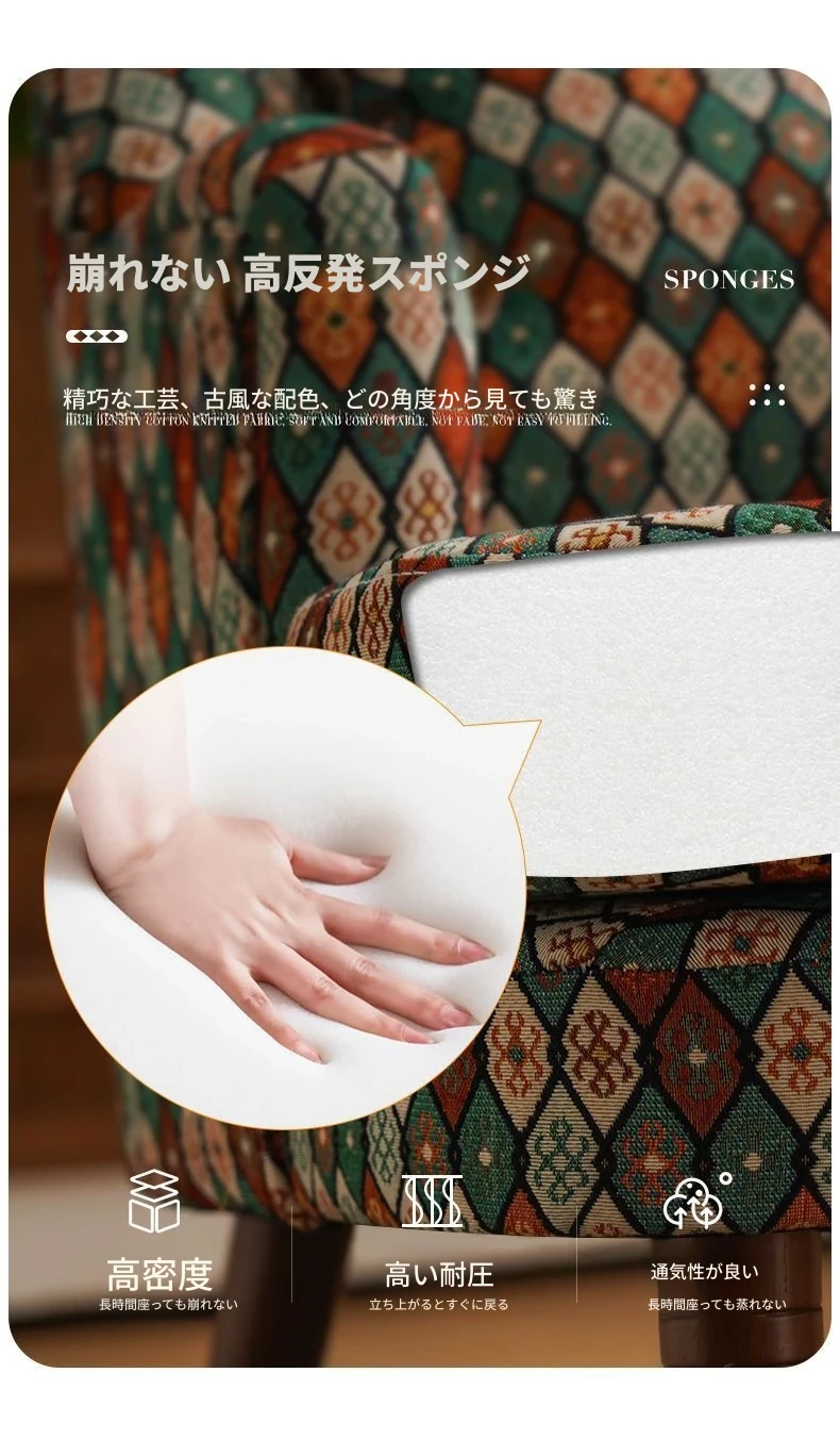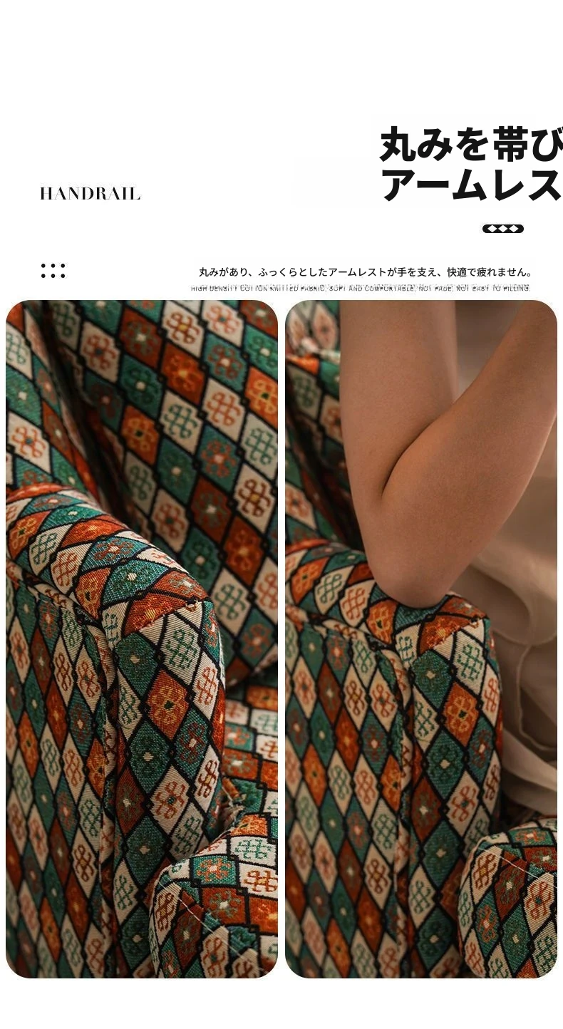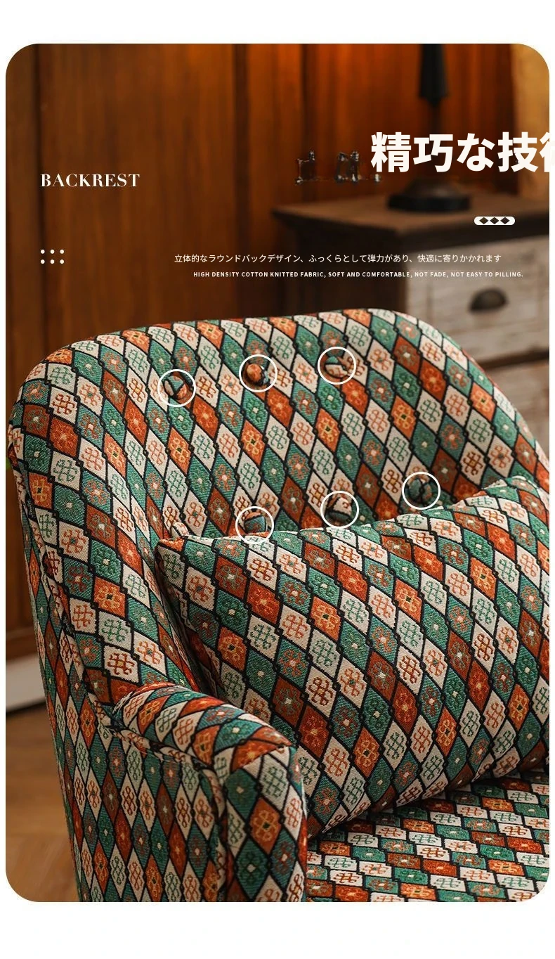 アメリカンスタイルの一人掛けソファ|レトロな欧風デザイン|布製・無垢材使用|小さなサイズで寝室や客間にぴったり|チェック柄でおしゃれなバルコニー用リラックスチェア!